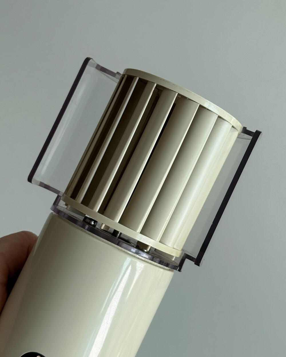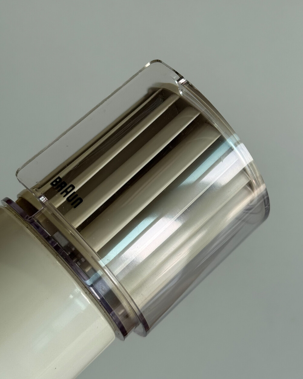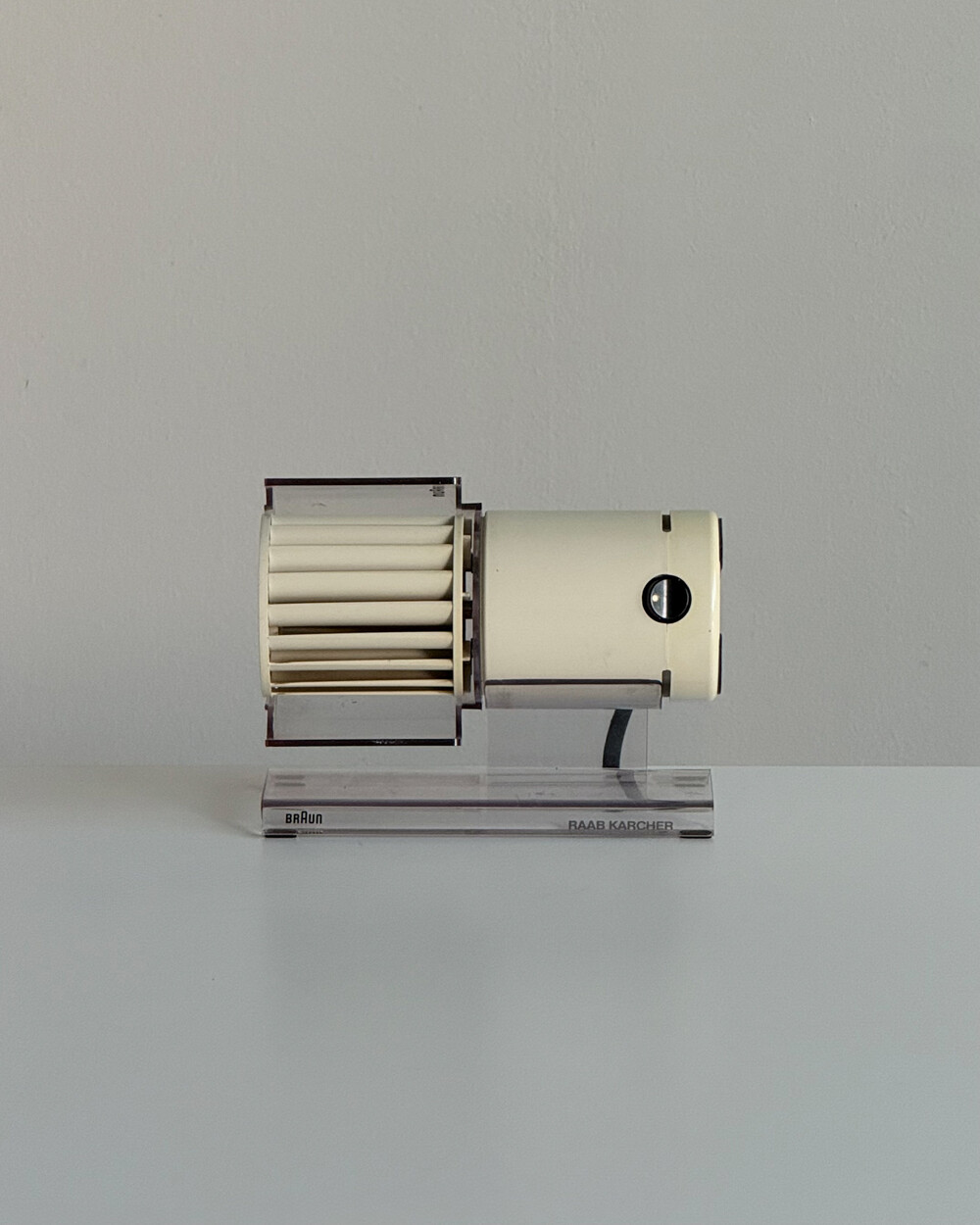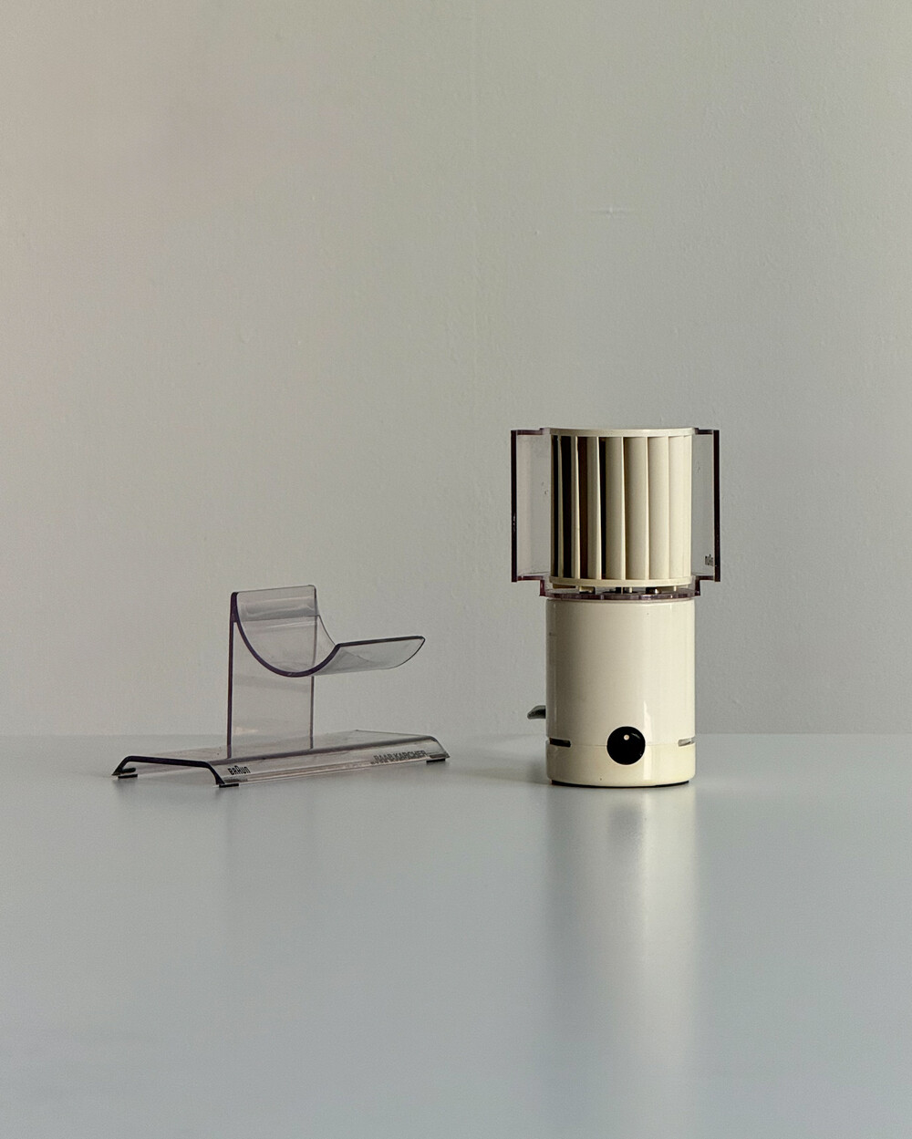 1970년대 생산되었던 BRAUN 사의 빈티지 데스크 팬 HL70입니다. 1971년 Reinhold Weiss와 Jürgen Greubel이 공동으로 디자인되었습니다. 본체 크기는 이전 초기작이었던 HL 1보다 컴팩트해졌으며, 모터가 있는 팬 롤러와 지지대가 분리되는 구조로 제작되어 배치와 이동이 훨씬 자유롭습니다. 모든 기능은 하나의 스위치로 제어하도록 설계되어, BRAUN 특유의 직관적인 사용성을 보여주는 제품입니다. HL 70은 현재 뉴욕 현대미술관(MoMA)에 영구 소장된 디자인 오브제로, 시대를 대표하는 브라운의 디자인 철학이 잘 드러나는 작품입니다.