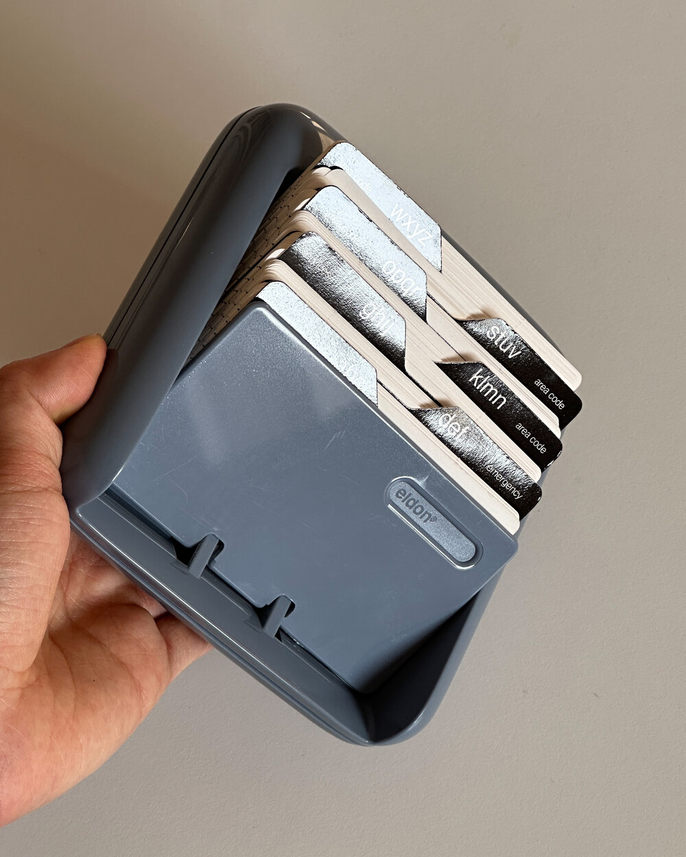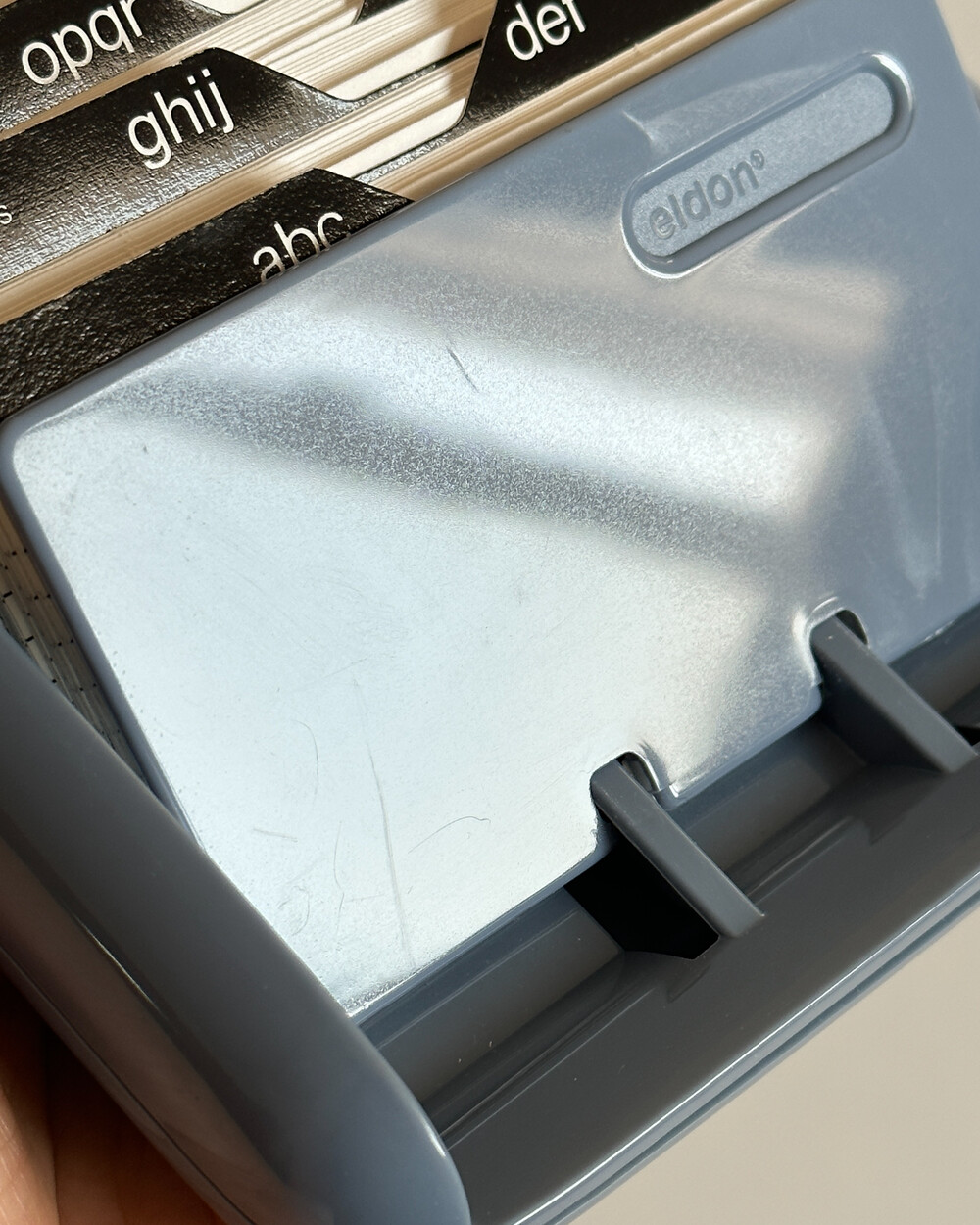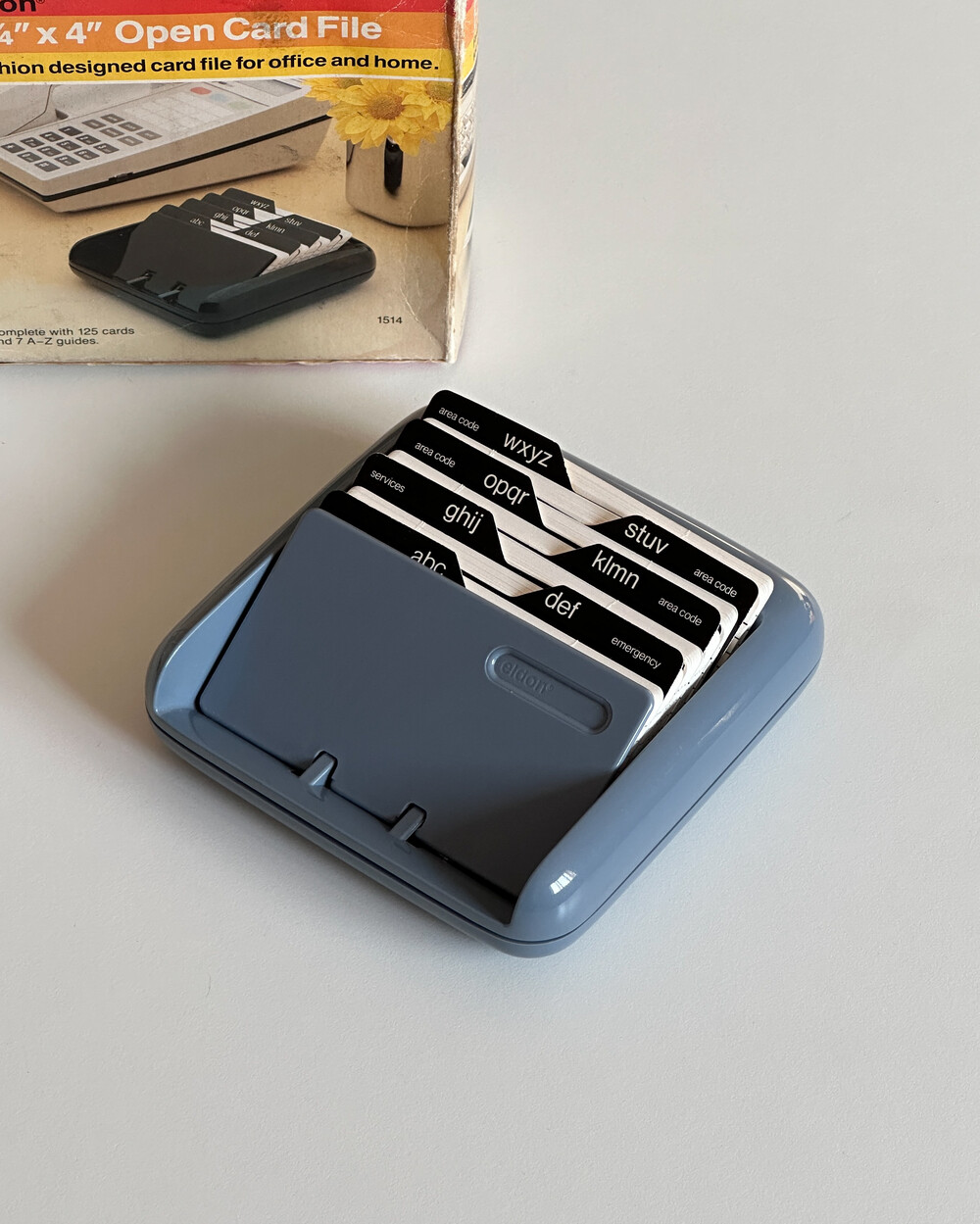 80년도 미국 ELDON 사에서 생산되었던 데스크 인덱스입니다. 알파벳 별로 정리가 가능한 카드형으로 이루어져 있습니다. 데스크 위에서 귀여운 포인트가 되어줍니다.