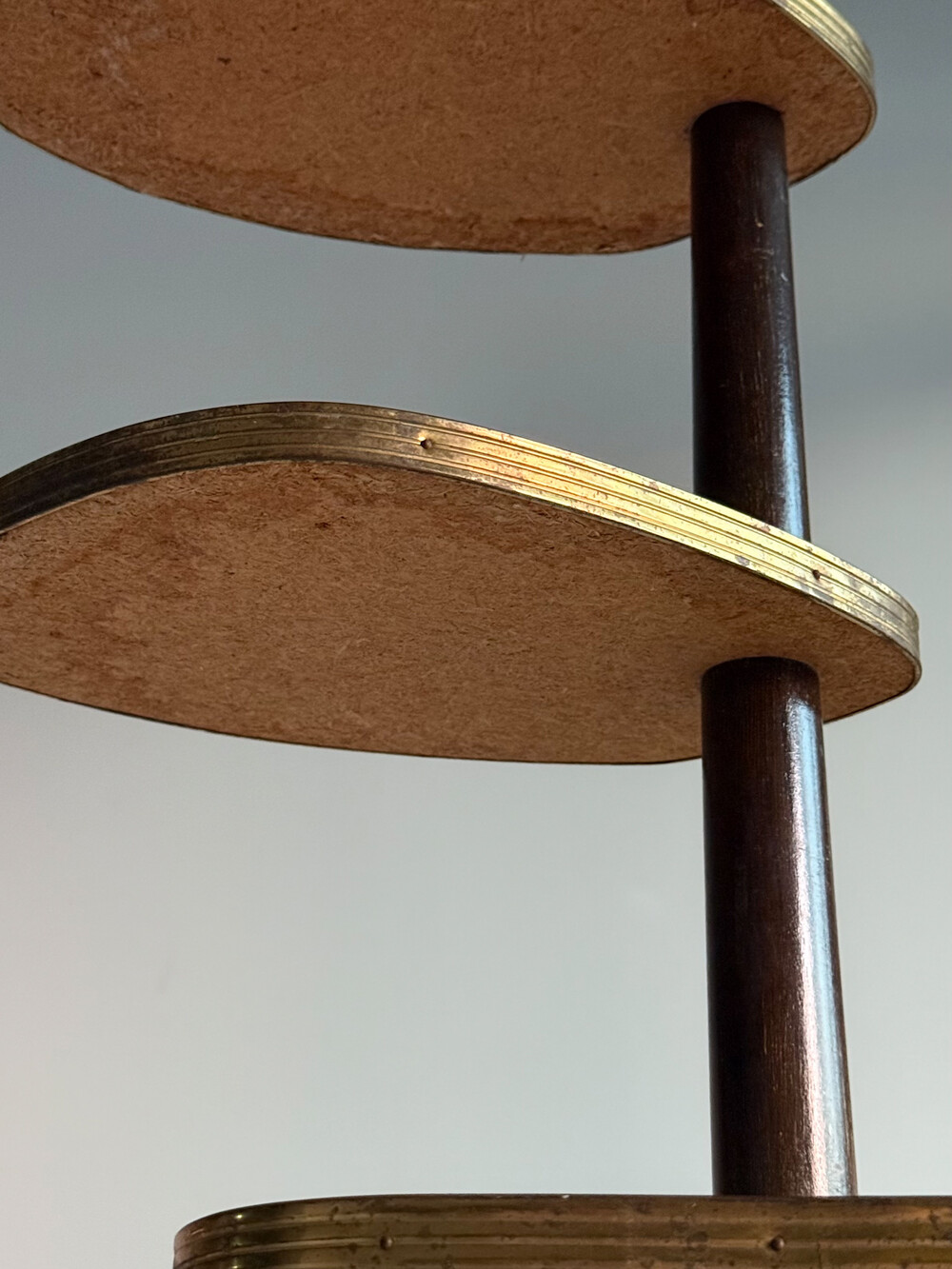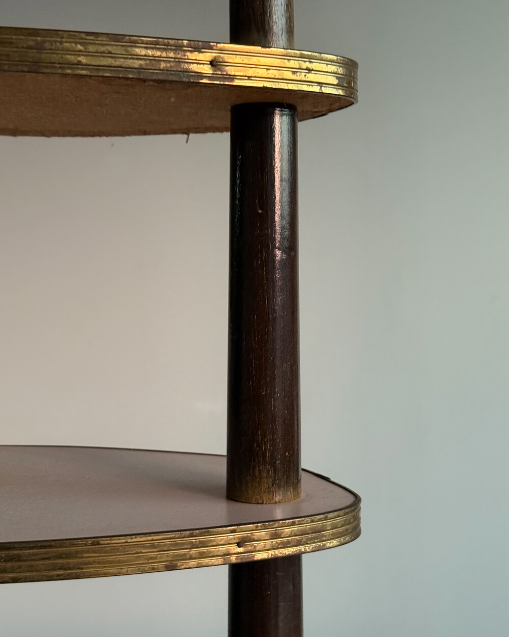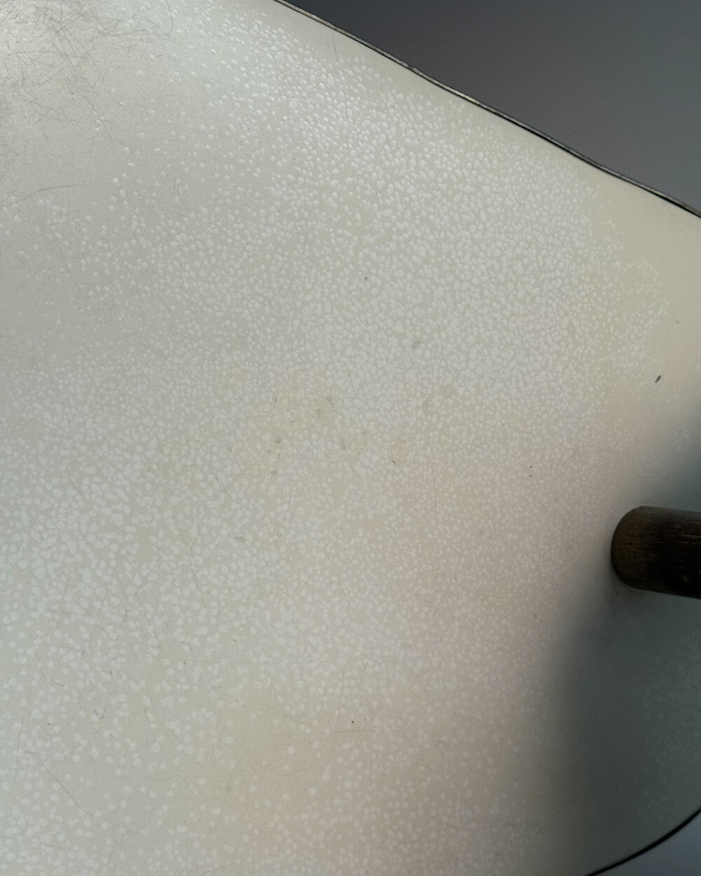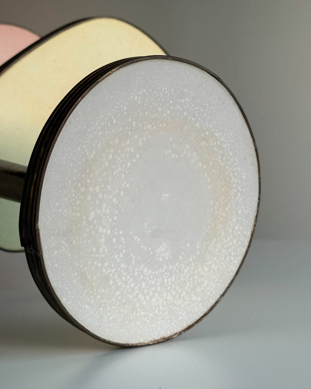 1960년대 서독에서 제작된 빈티지 식물 스탠드입니다. 곡선형 상판 위로 라이트 그레이, 레몬, 핑크의 파스텔 톤 조합의 서브 쉘프가 3단 계단형으로 배열되어 있습니다. 각 단은 360도 회전이 가능한 구조로 자유로운 배치와 연출이 가능합니다. 식물 스탠드 외에도 오브제, 조명, 서적 등을 함께 연출하실 수 있습니다.