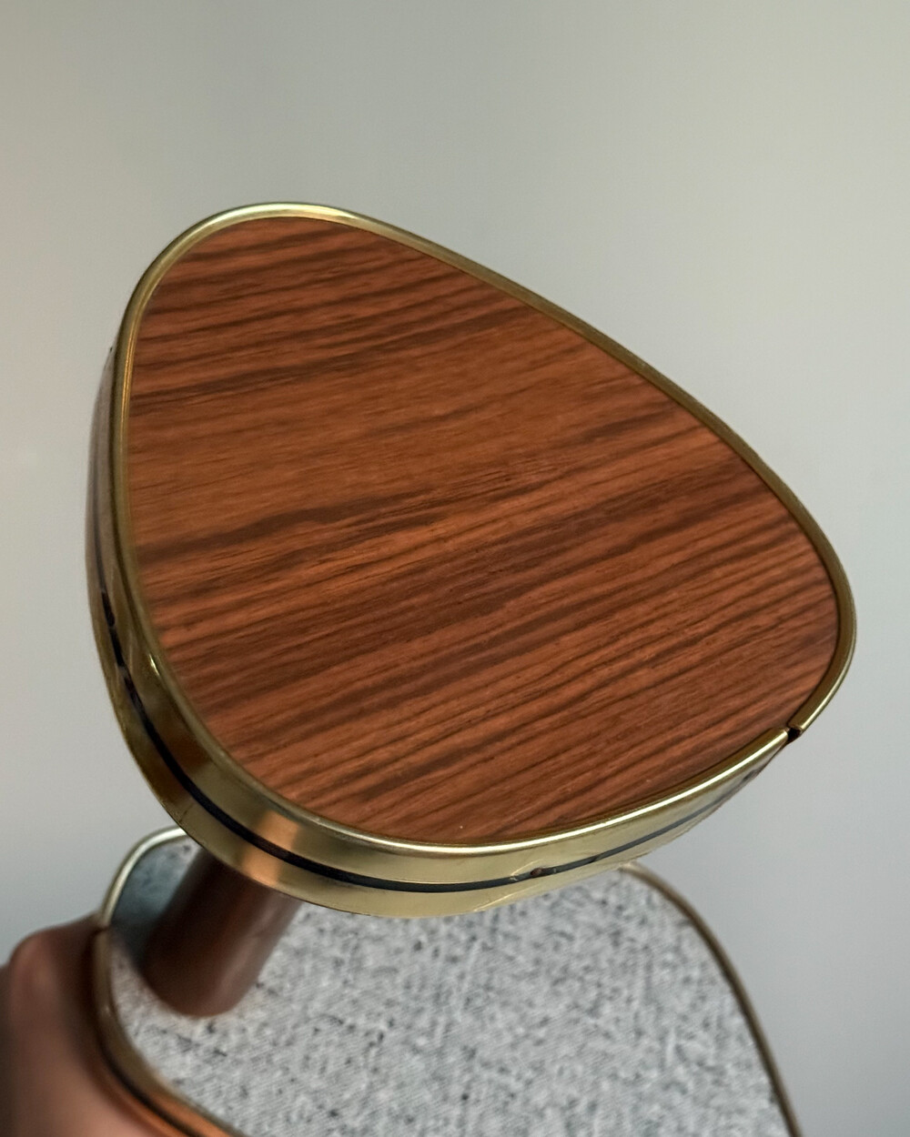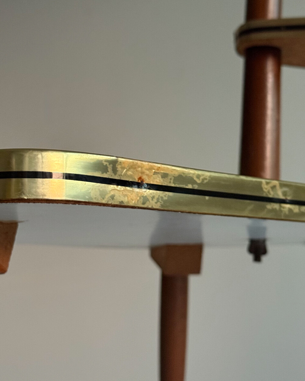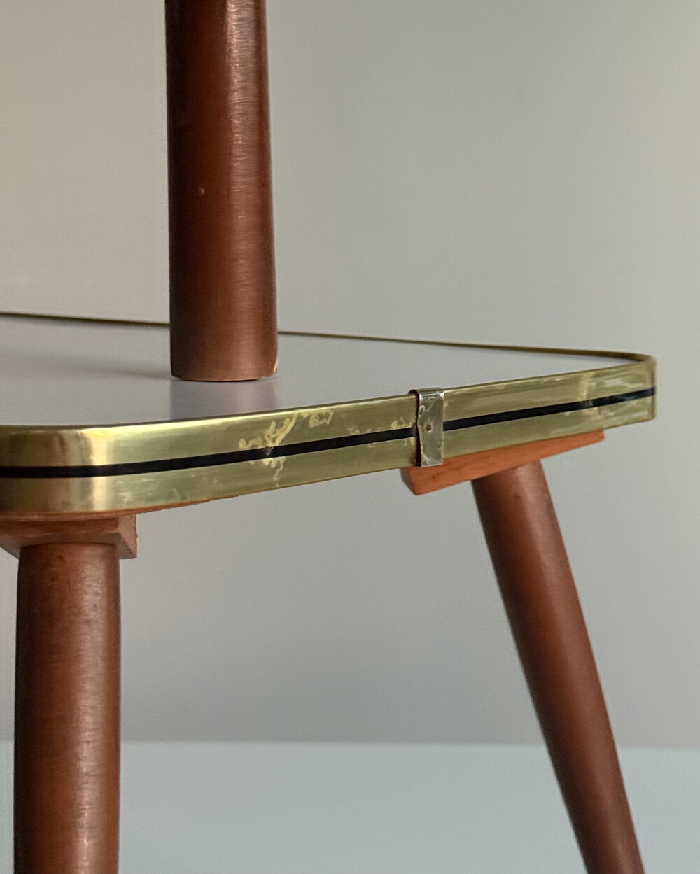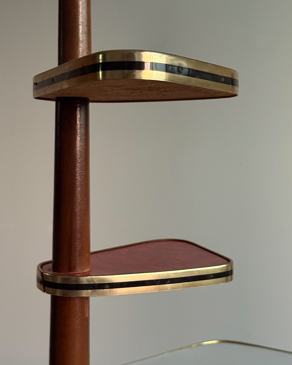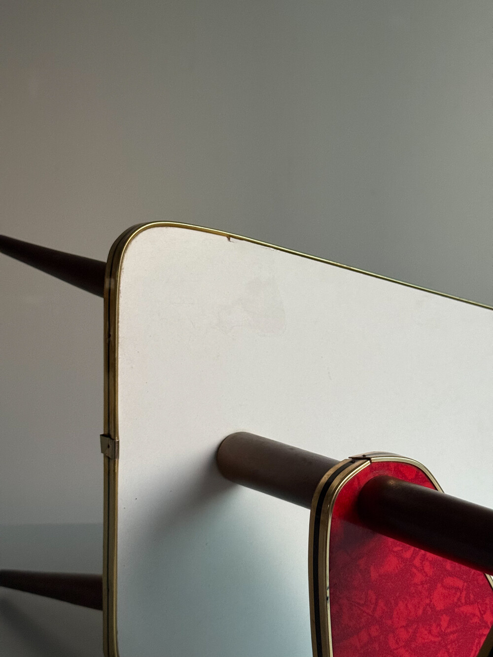 1960년대 서독에서 제작된 빈티지 식물 스탠드입니다. 화이트 톤의 메인 상판 위로 레드, 그레이, 월넛 컬러의 서브 쉘프가 3단 계단형으로 배열되어 있습니다. 각 단은 360도 회전이 가능한 구조로 자유로운 배치와 연출이 가능합니다. 식물 스탠드 외에도 오브제, 조명, 서적 등을 함께 연출하실 수 있습니다.