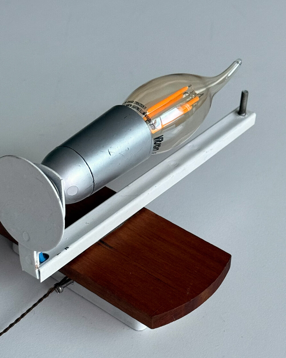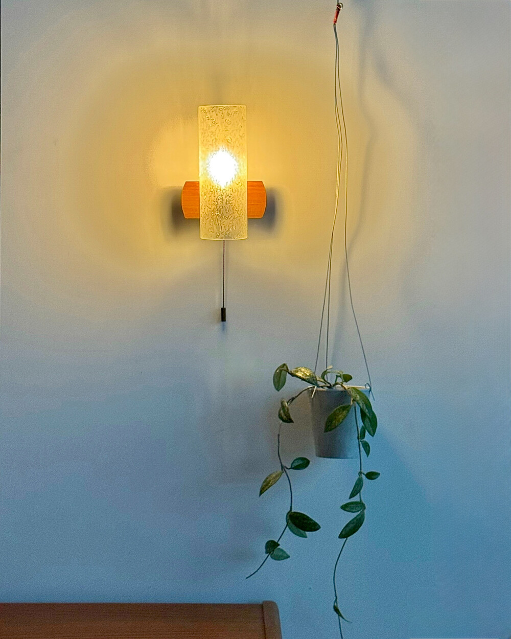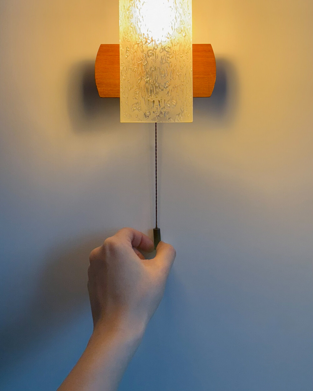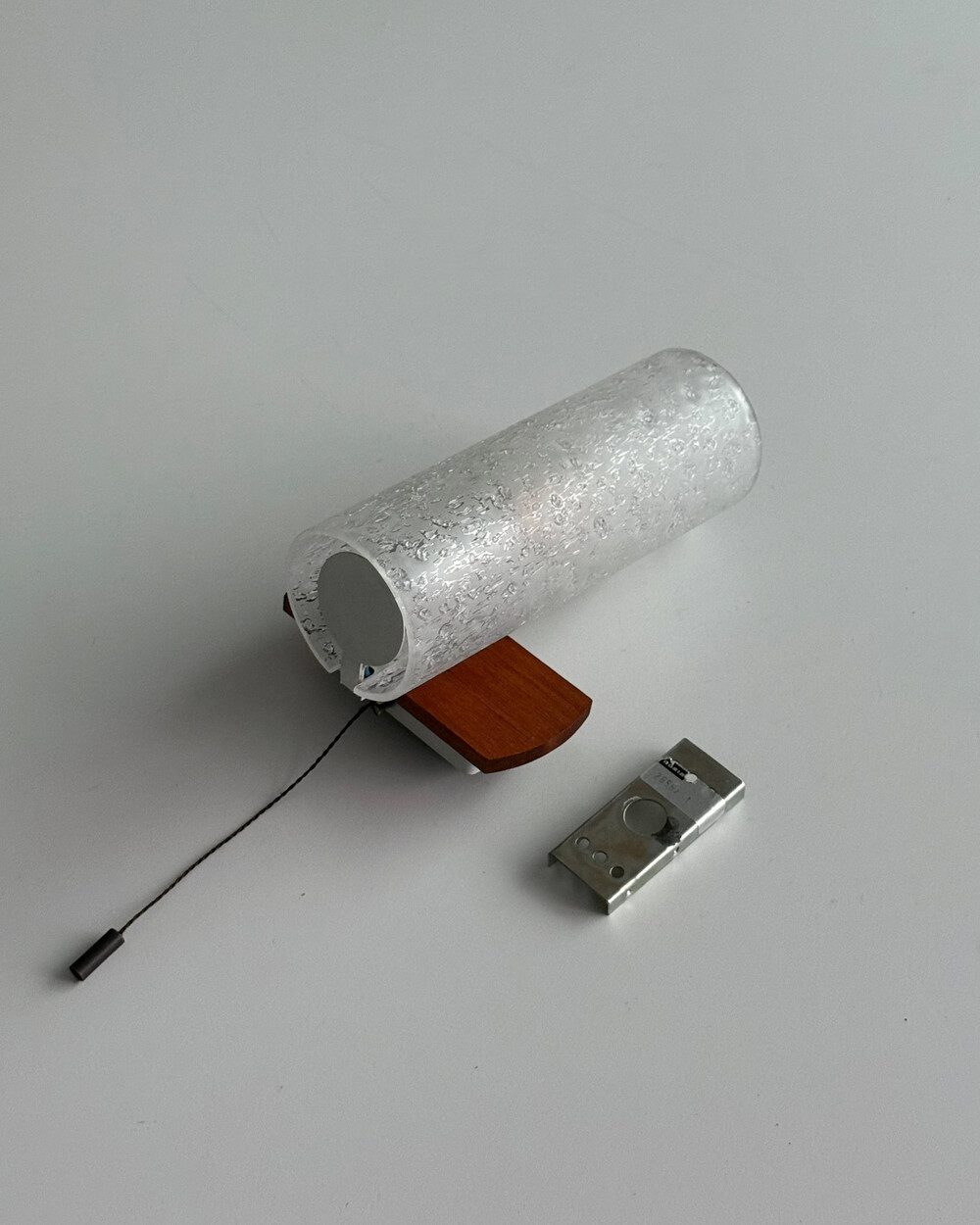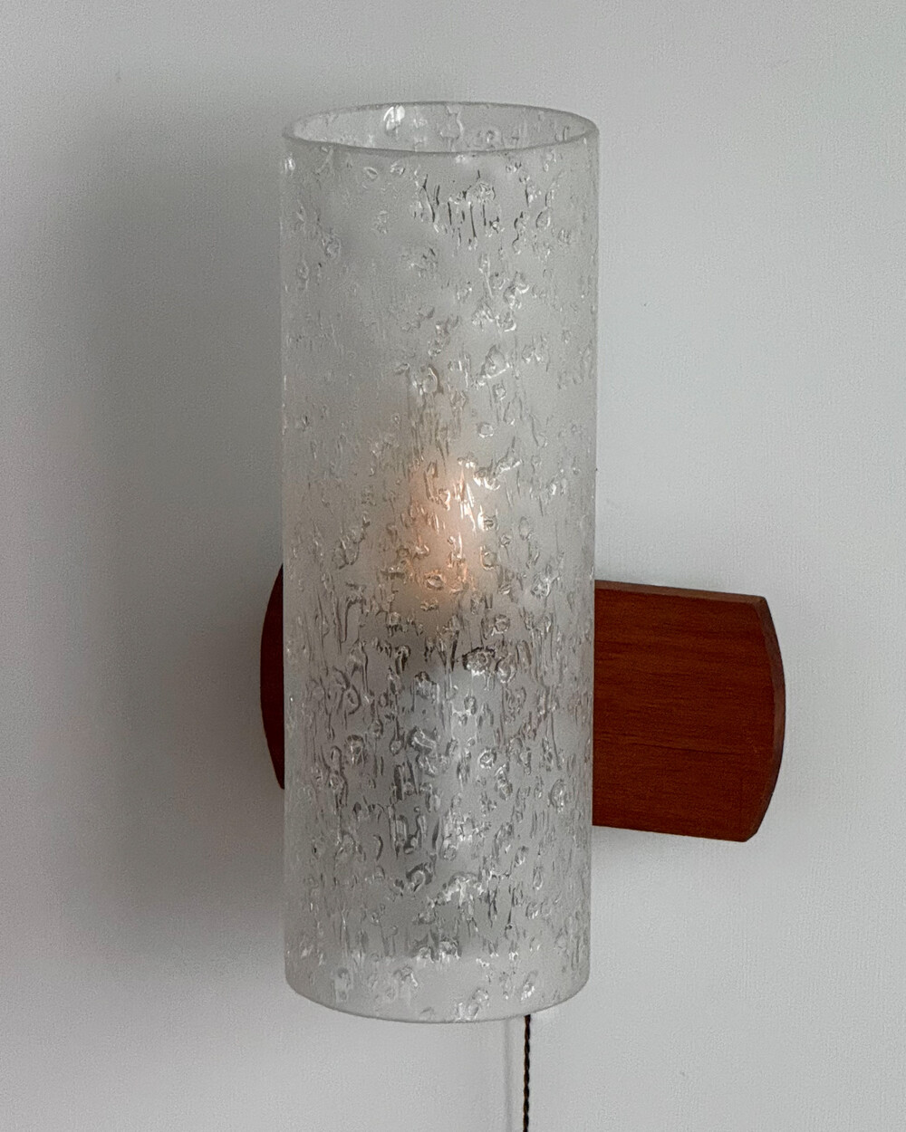 1970년대에 독일의 조명 브랜드 DORIA 사에서 제작된 빈티지 벽등입니다. 입체적인 질감이 살아있는 원통형 글라스 쉐이드와 티크 원목 베이스의 조화로 이루어져 있습니다. 조명을 켰을 때 빛이 굴절되며 벽면에 맺히는 은은한 실루엣이 공간의 분위기를 차분하게 완성합니다.