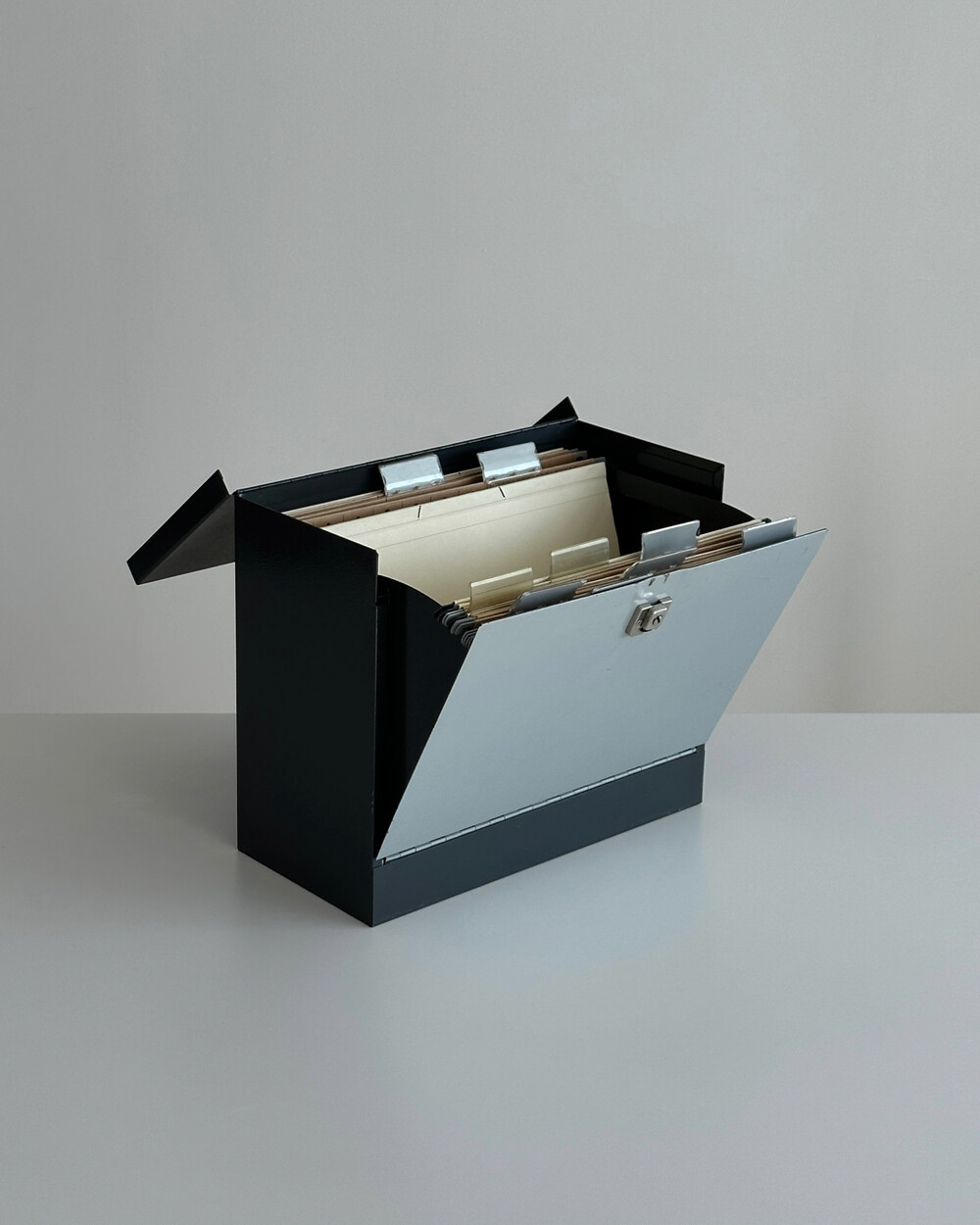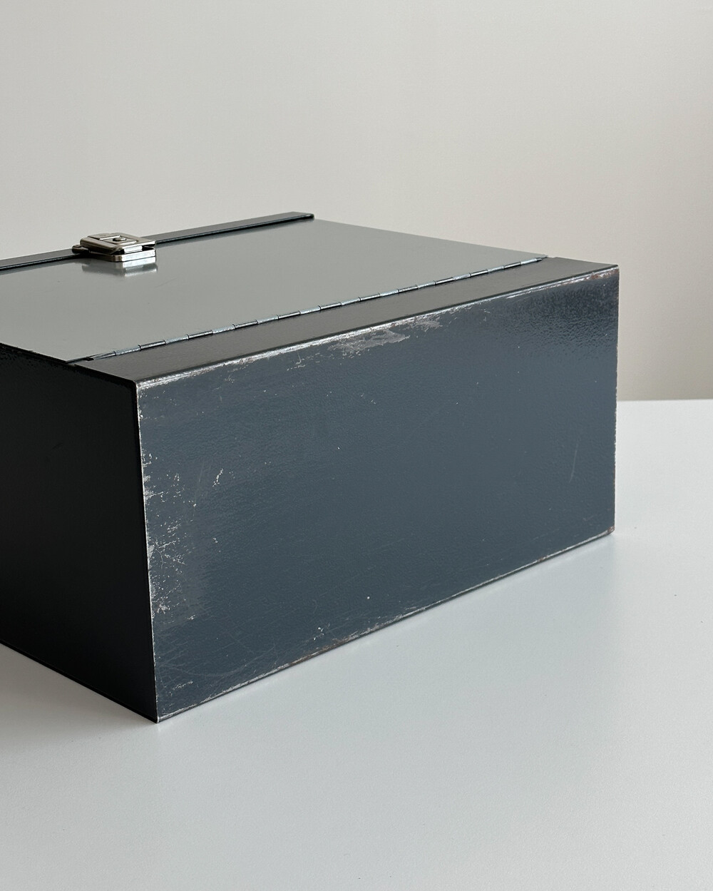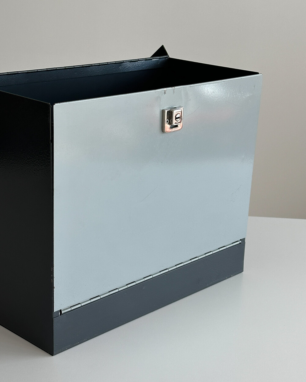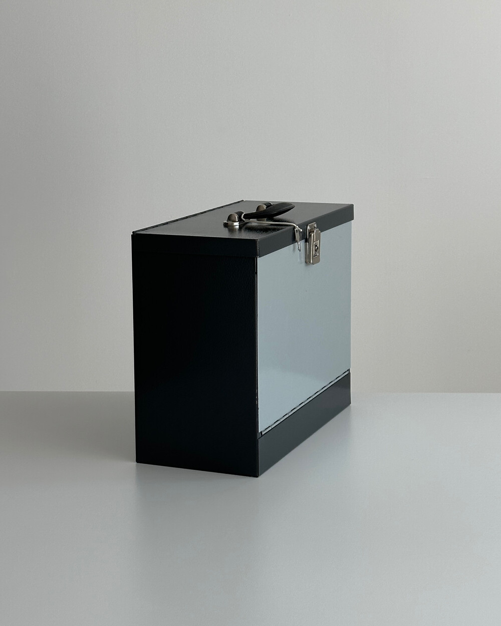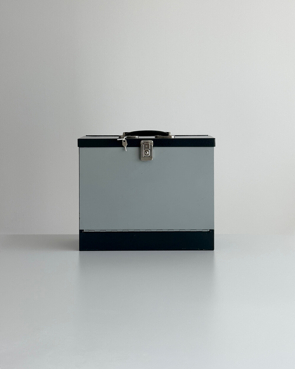 70년도 독일에서 생산되었던 오피스 파일 박스입니다. 그레이 컬러의 묵직한 메탈 소재로 이루어져 있습니다. A4 사이즈의 서류들을 넉넉히 수납할 수 있습니다. 별도의 잠금 장치가 있어 내용물을 안전하게 보관할 수 있습니다.