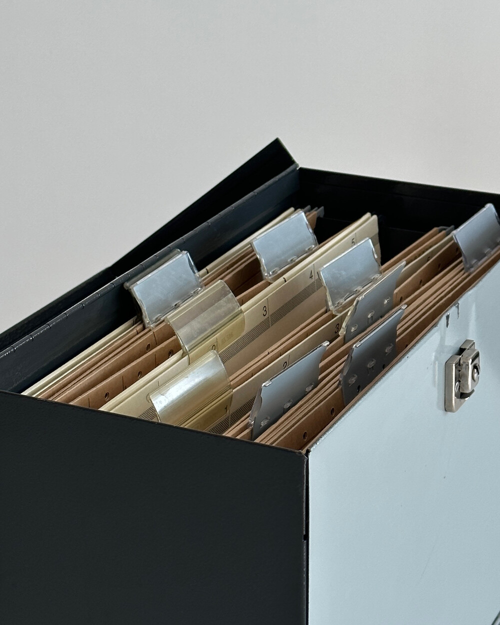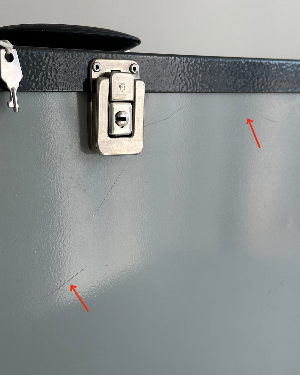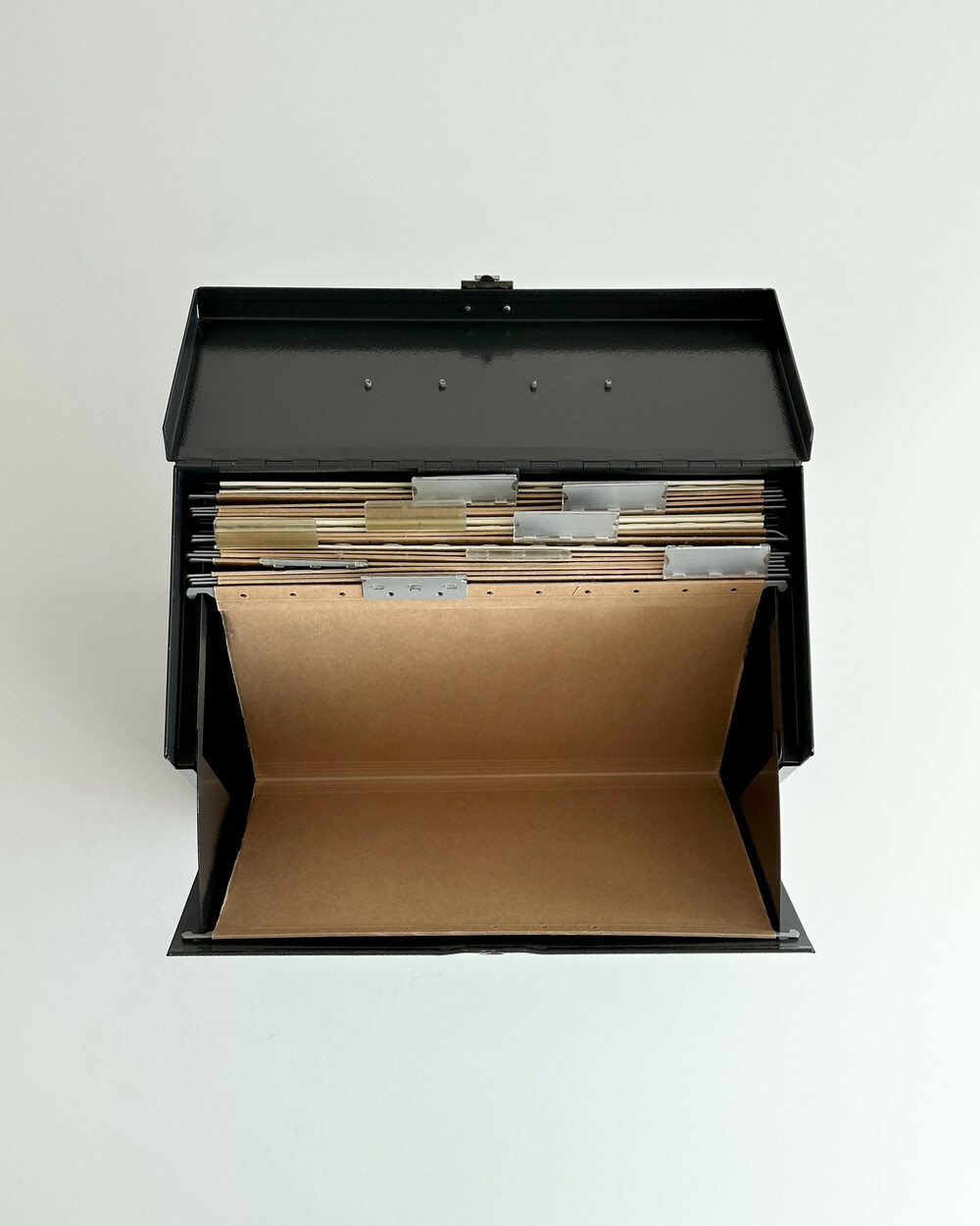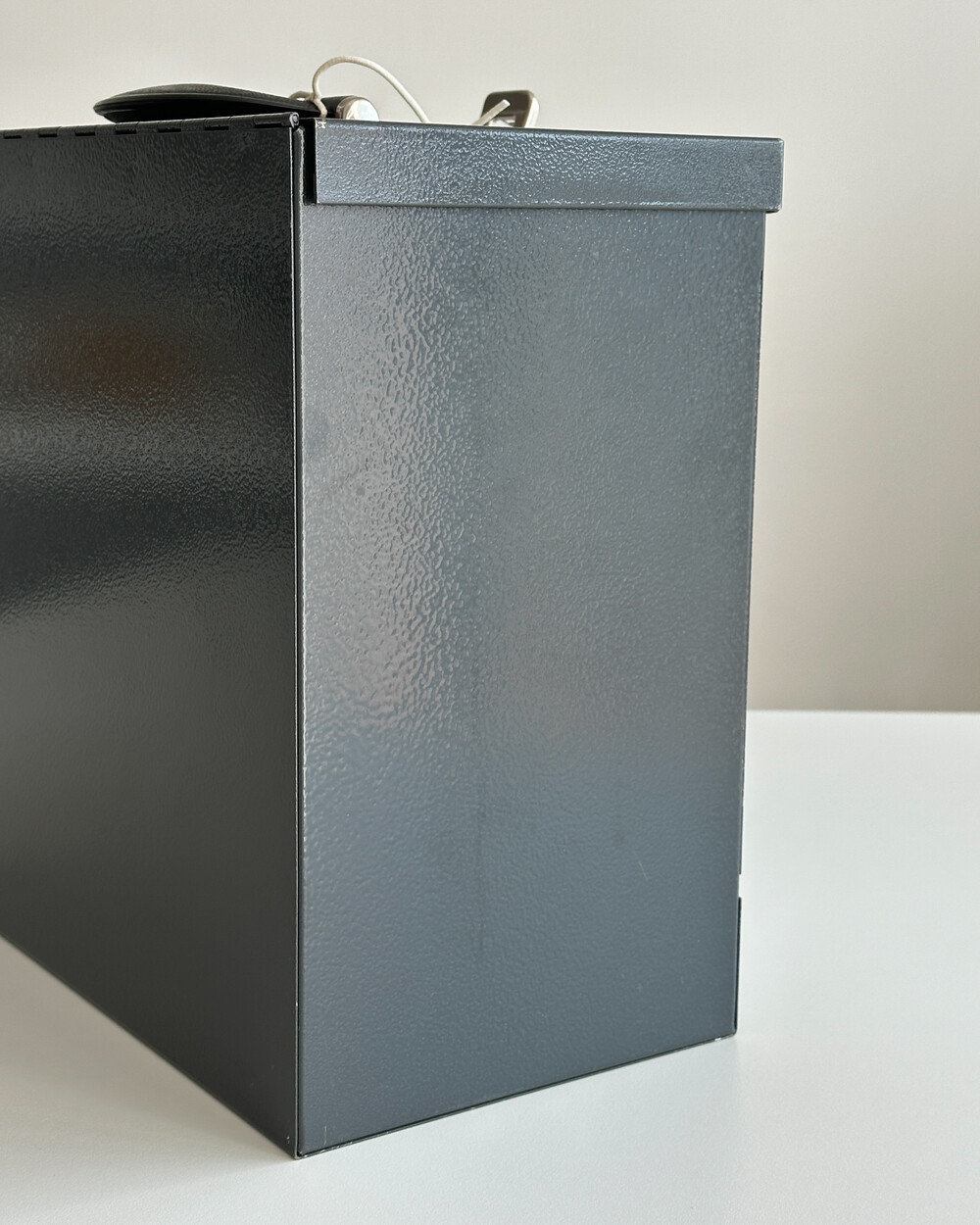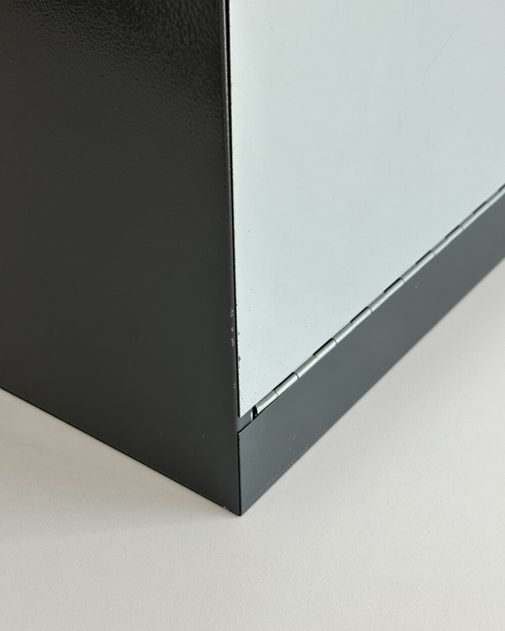 70년도 독일에서 생산되었던 오피스 파일 박스입니다. 그레이 컬러의 묵직한 메탈 소재로 이루어져 있습니다. A4 사이즈의 서류들을 넉넉히 수납할 수 있습니다. 별도의 잠금 장치가 있어 내용물을 안전하게 보관할 수 있습니다.