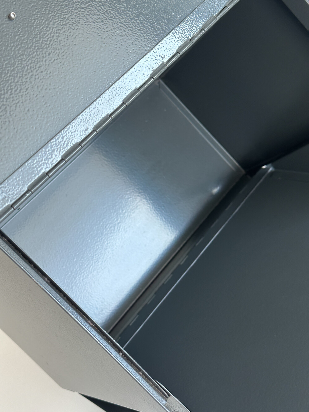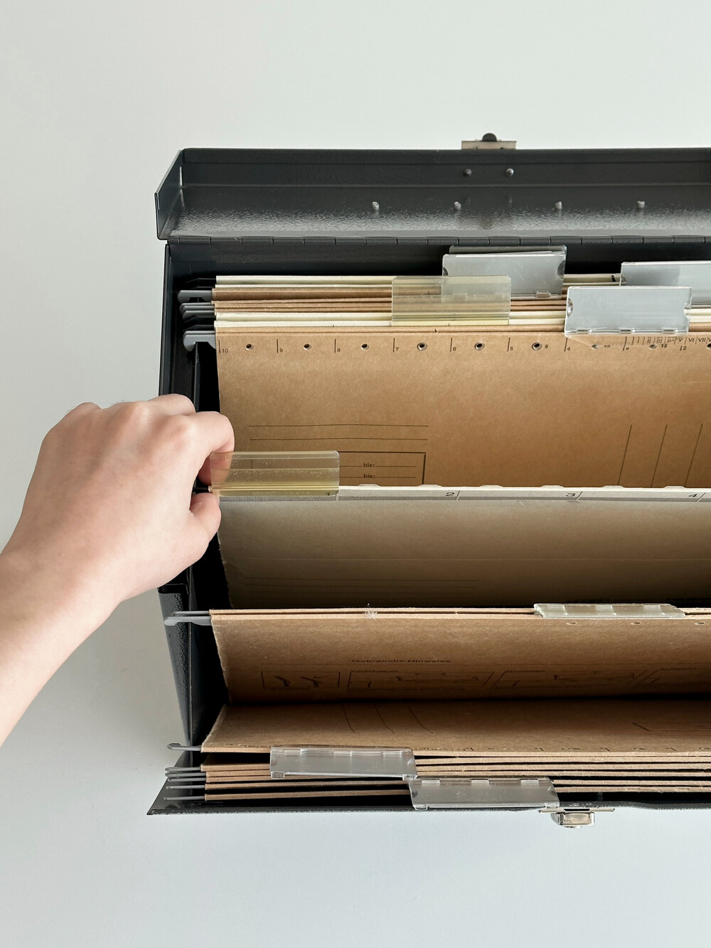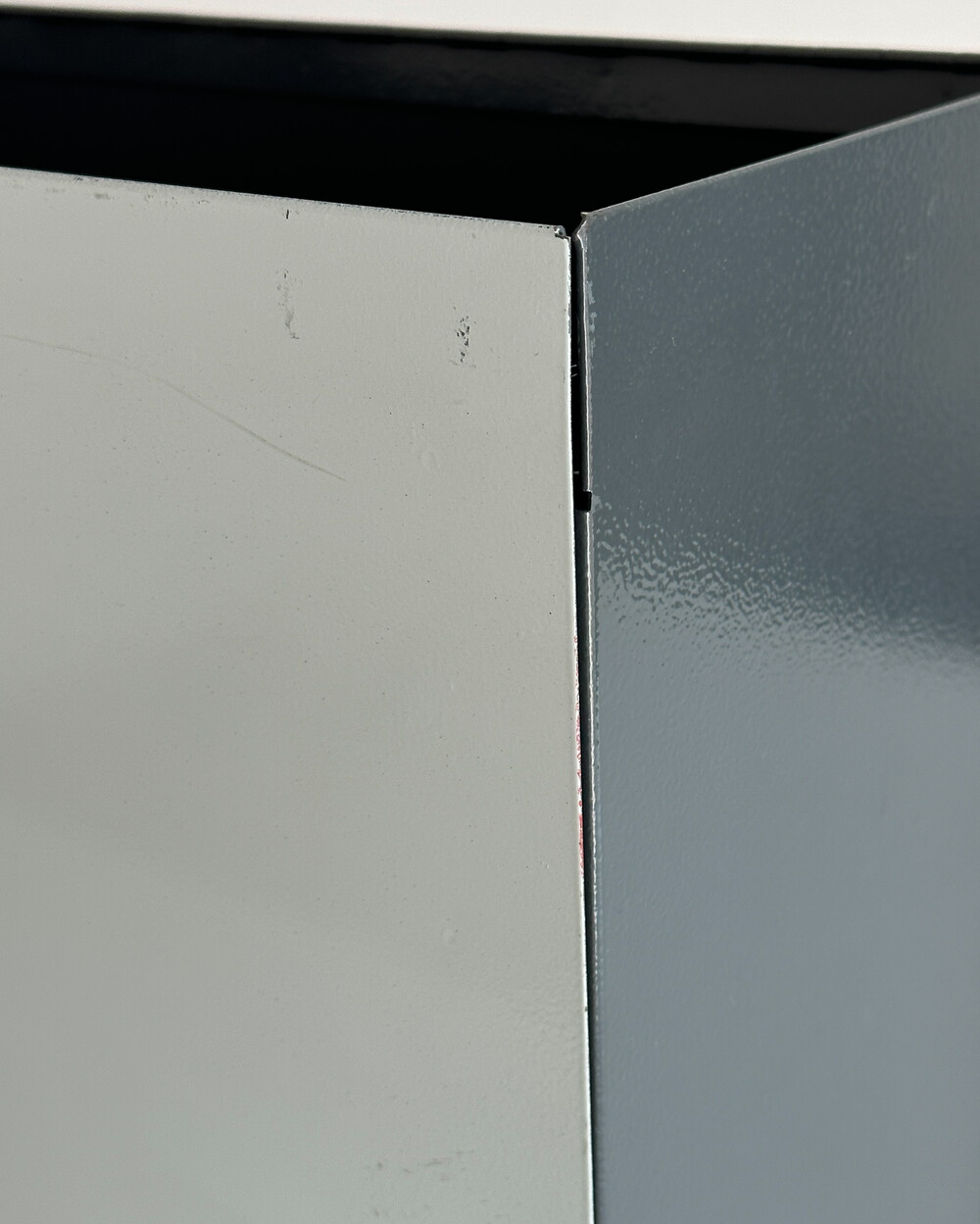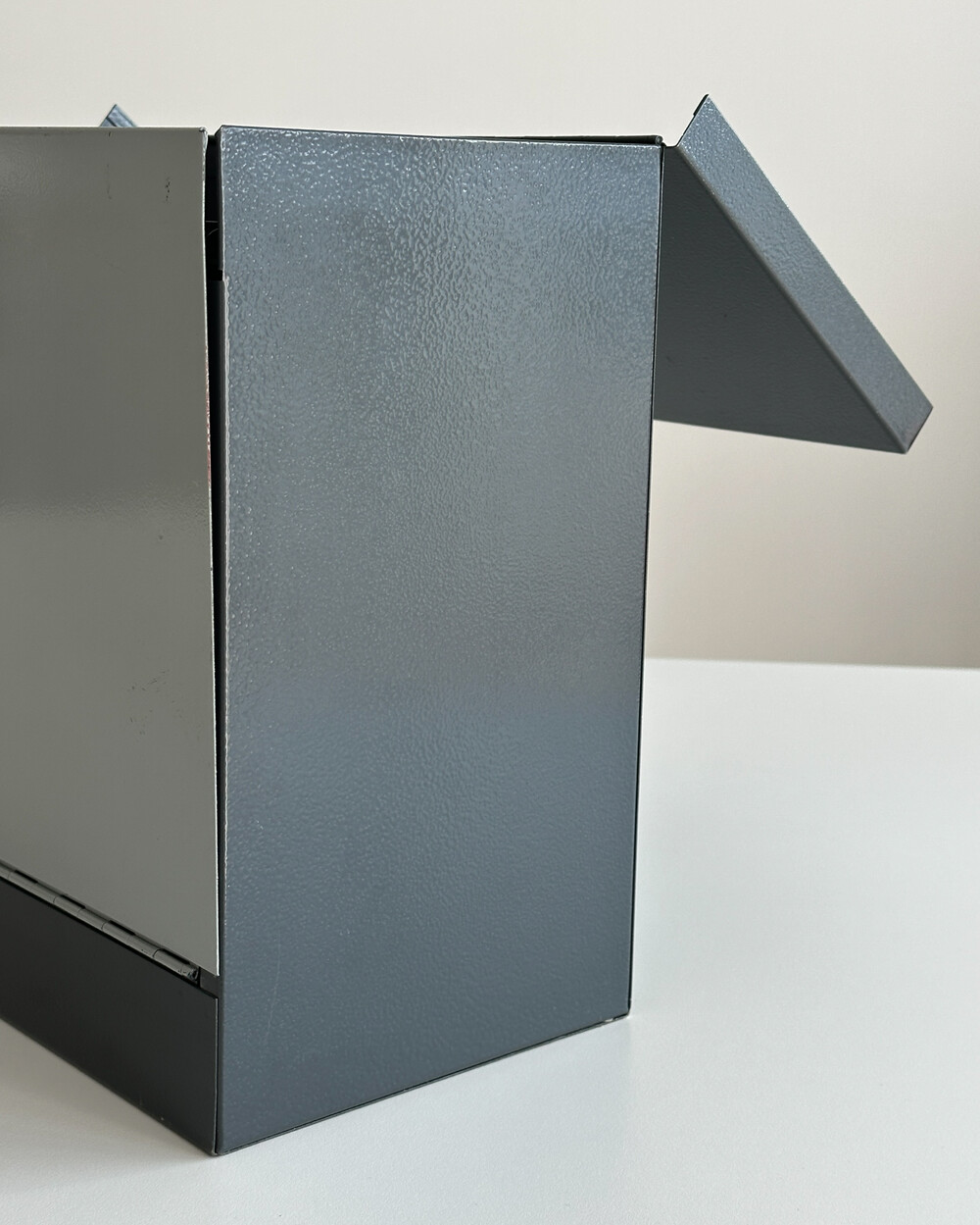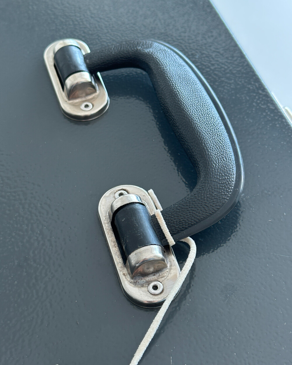 70년도 독일에서 생산되었던 오피스 파일 박스입니다. 그레이 컬러의 묵직한 메탈 소재로 이루어져 있습니다. A4 사이즈의 서류들을 넉넉히 수납할 수 있습니다. 별도의 잠금 장치가 있어 내용물을 안전하게 보관할 수 있습니다.