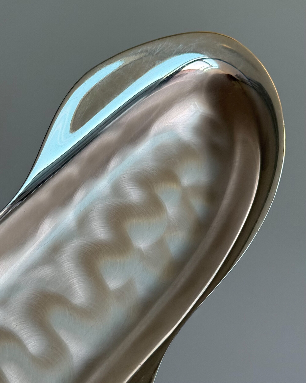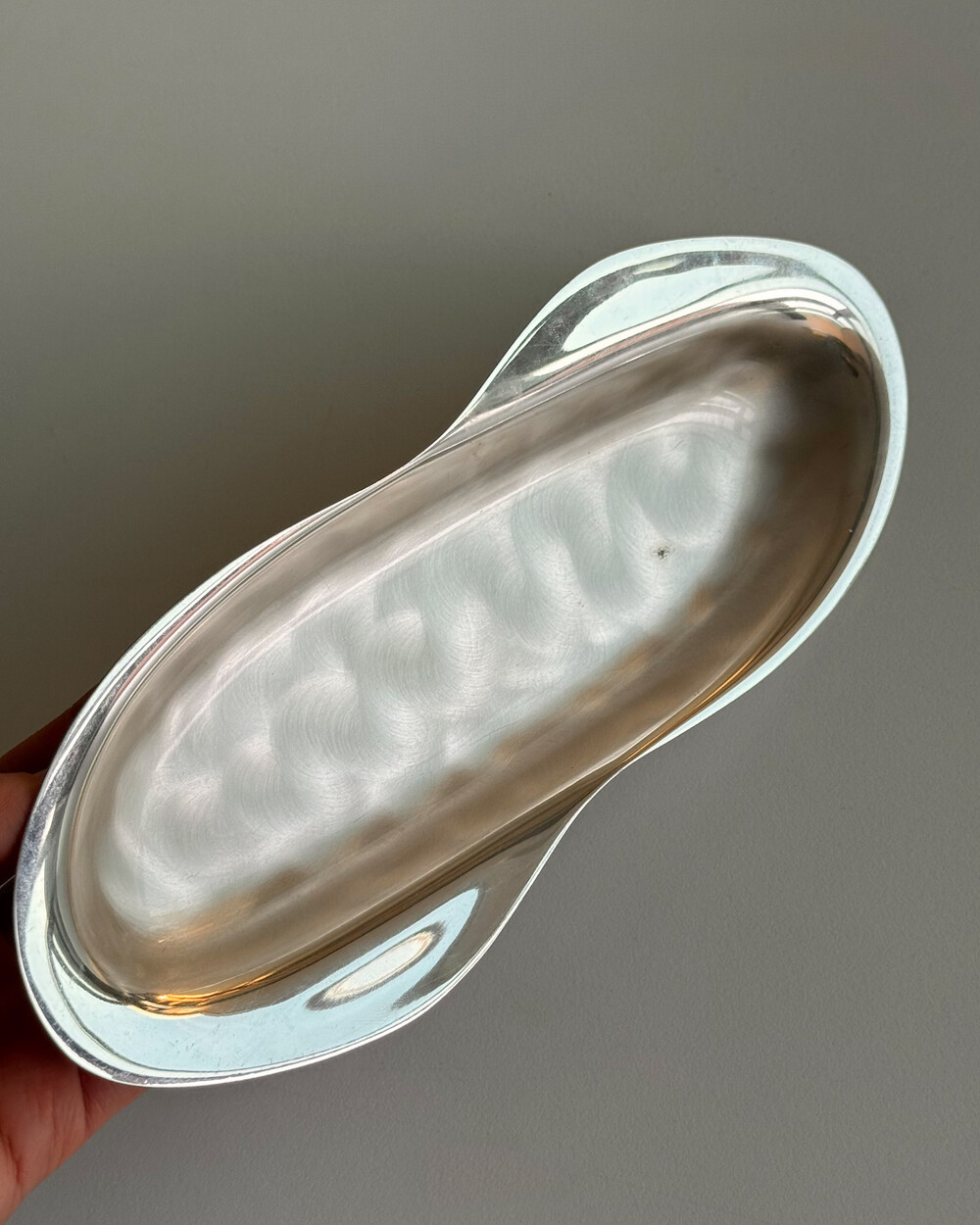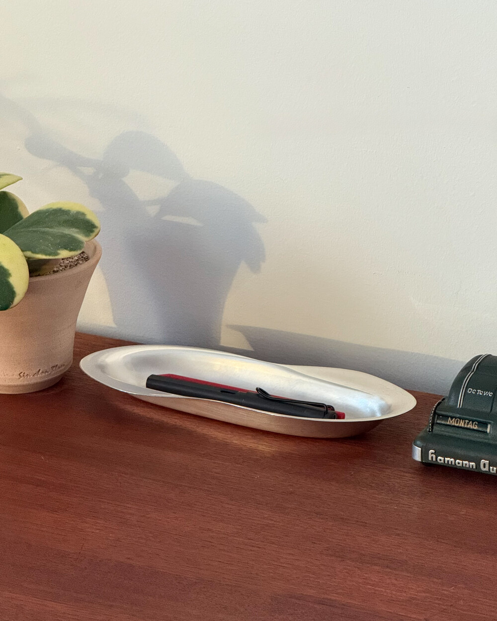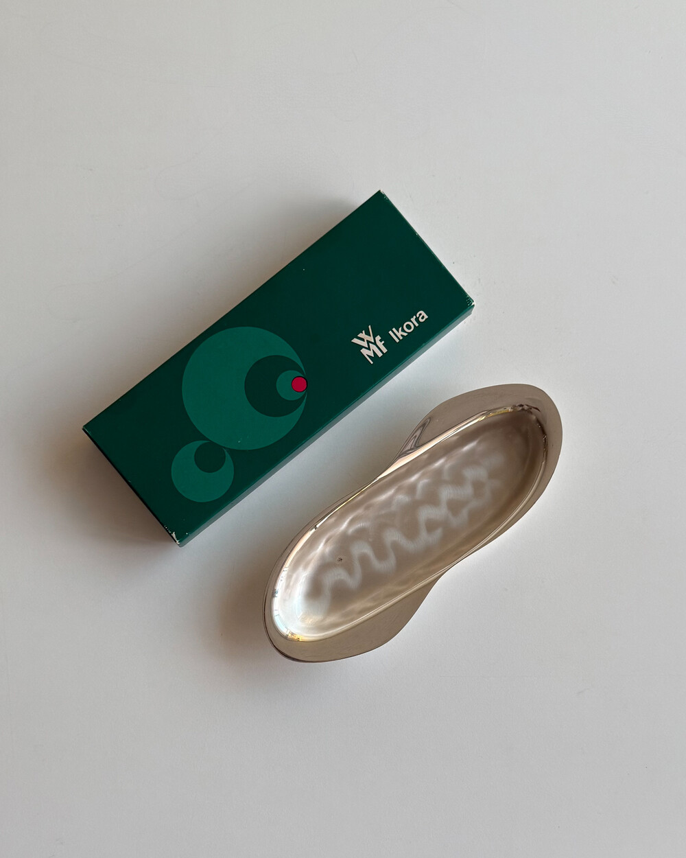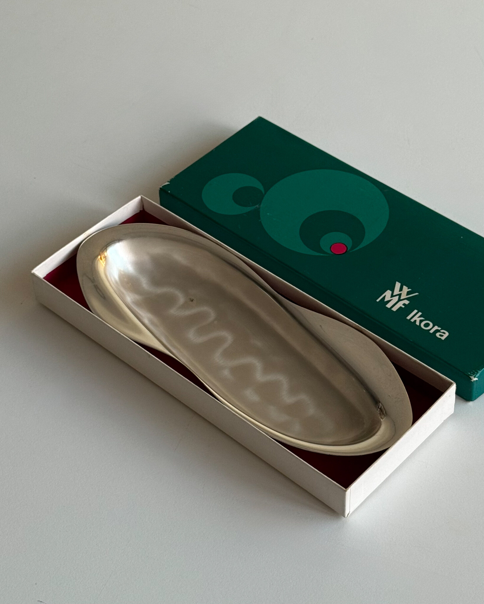 1970년도 WMF IKORA 라인의 플레이트 입니다. 빈티지한 굴곡의 패턴이 매력적인 디자인으로, 펜 트레이로 사용하시거나, 간단한 소품이나 악세사리 등을 보관하는 트레이로 활용하셔도 좋습니다.