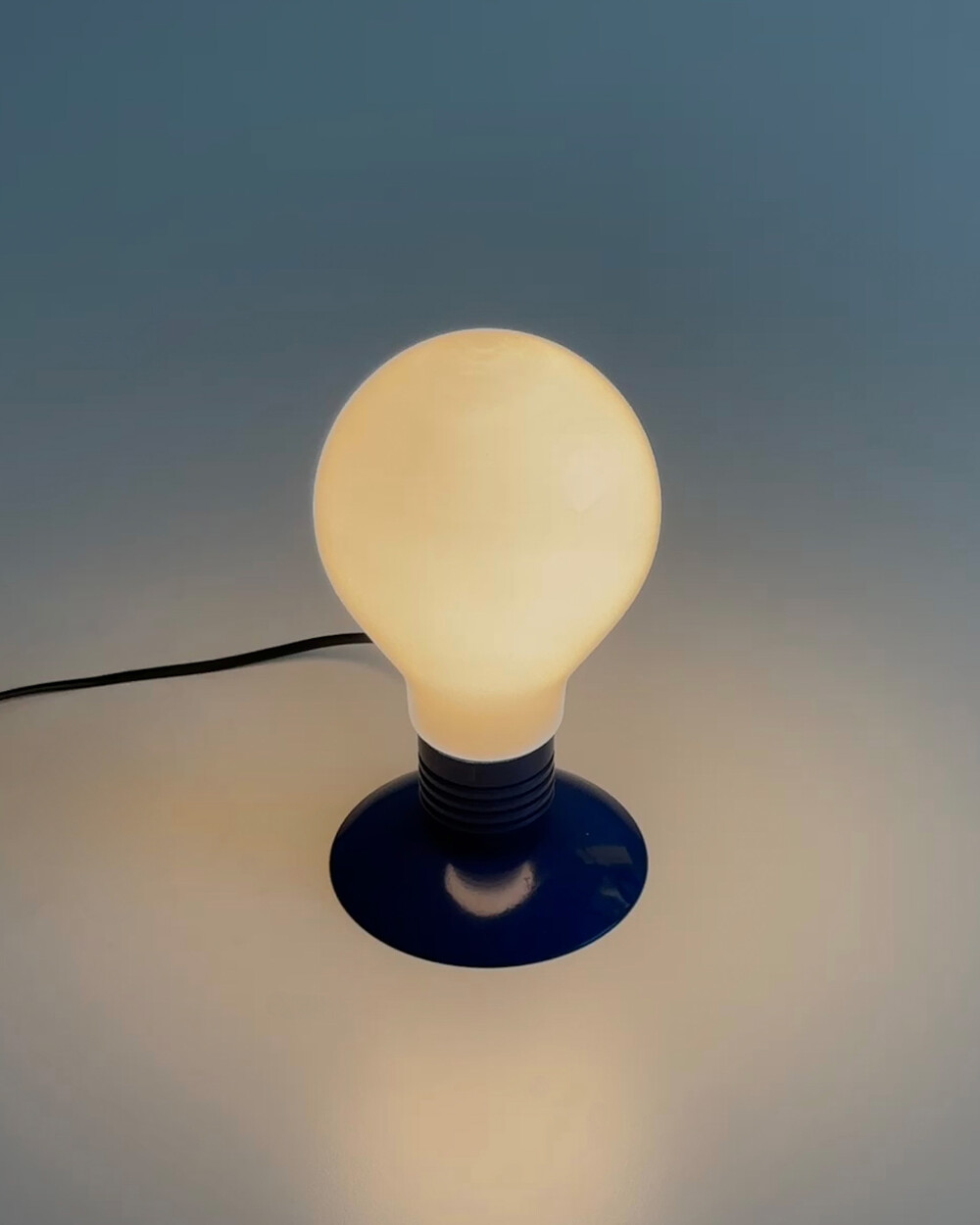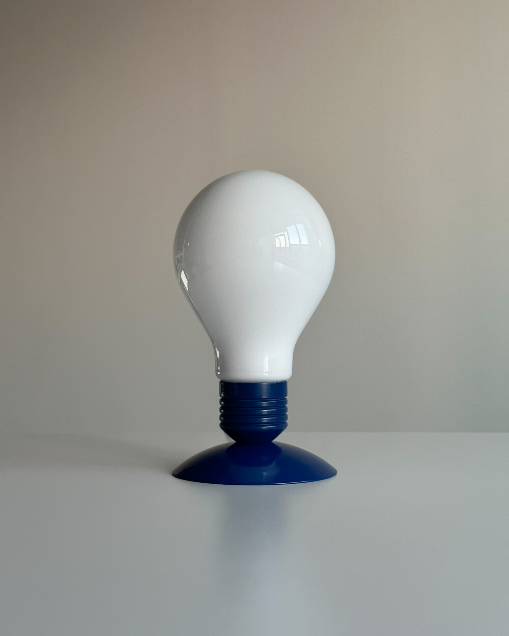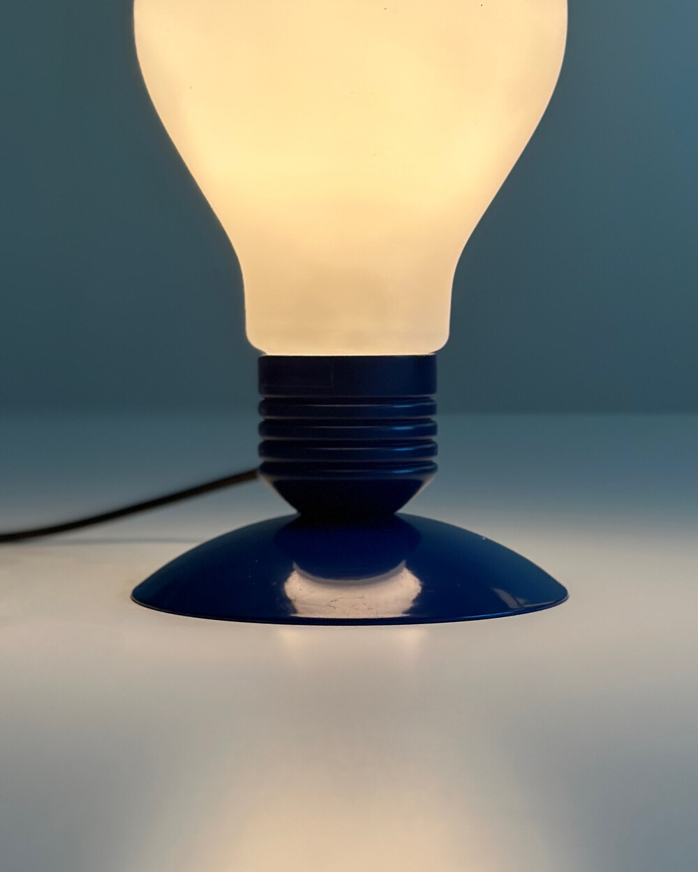 1980년대 MASSIVE 사에서 생산되었던 테이블 램프입니다. 블루 메탈 베이스와 유니크한 전구 쉐입으로 이루어져 있습니다. 공간에서 포인트가 되어줄 수 있는 귀여운 디자인입니다.
