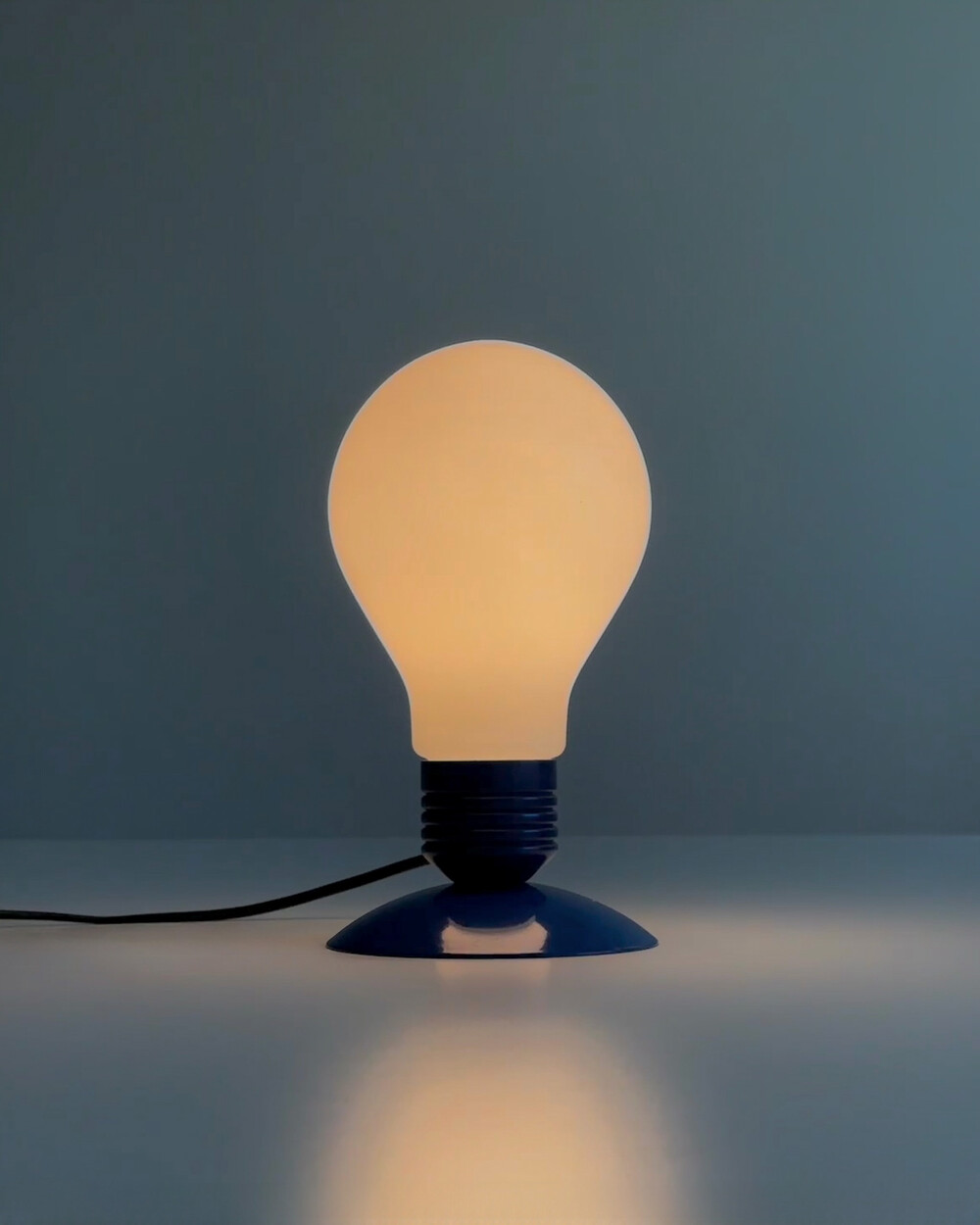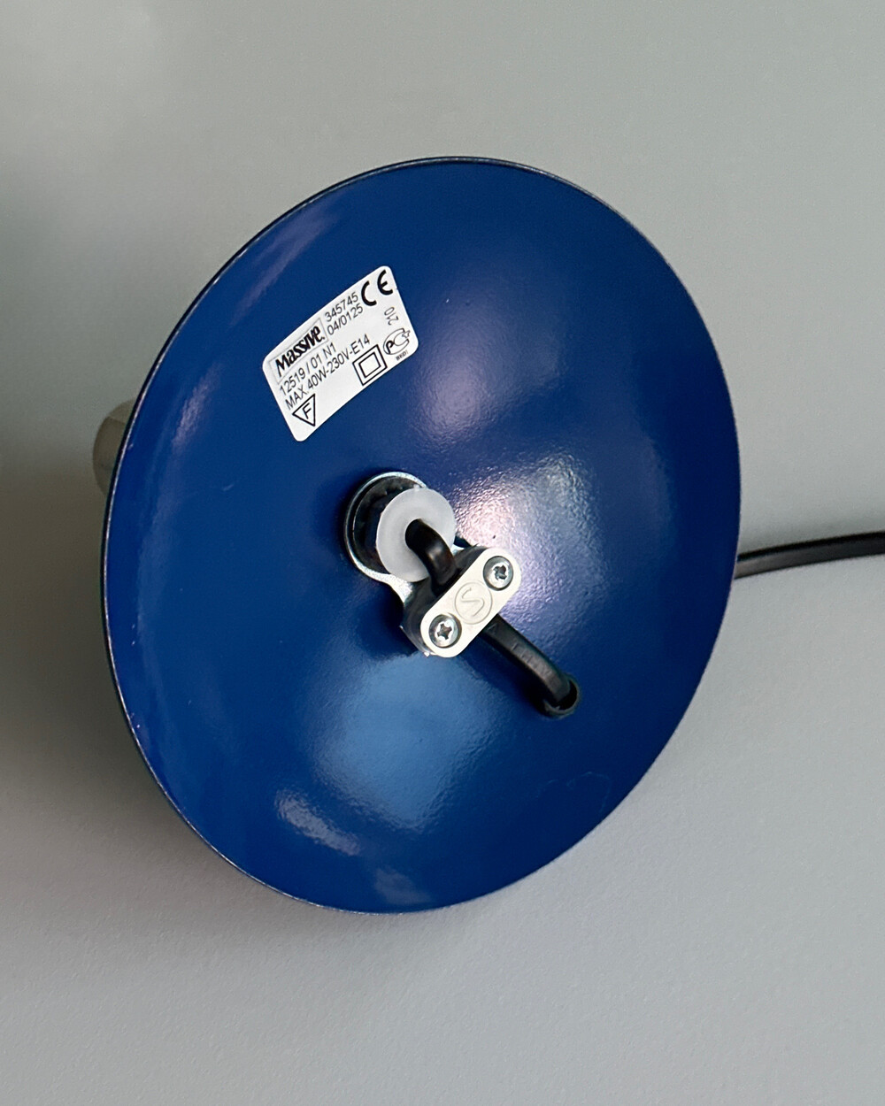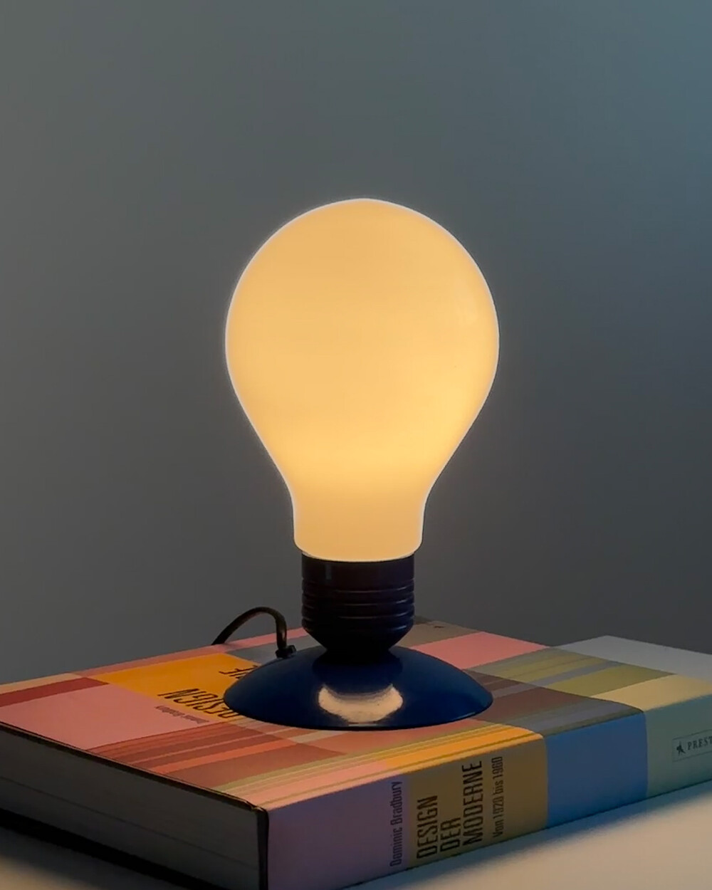 1980년대 MASSIVE 사에서 생산되었던 테이블 램프입니다. 블루 메탈 베이스와 유니크한 전구 쉐입으로 이루어져 있습니다. 공간에서 포인트가 되어줄 수 있는 귀여운 디자인입니다.