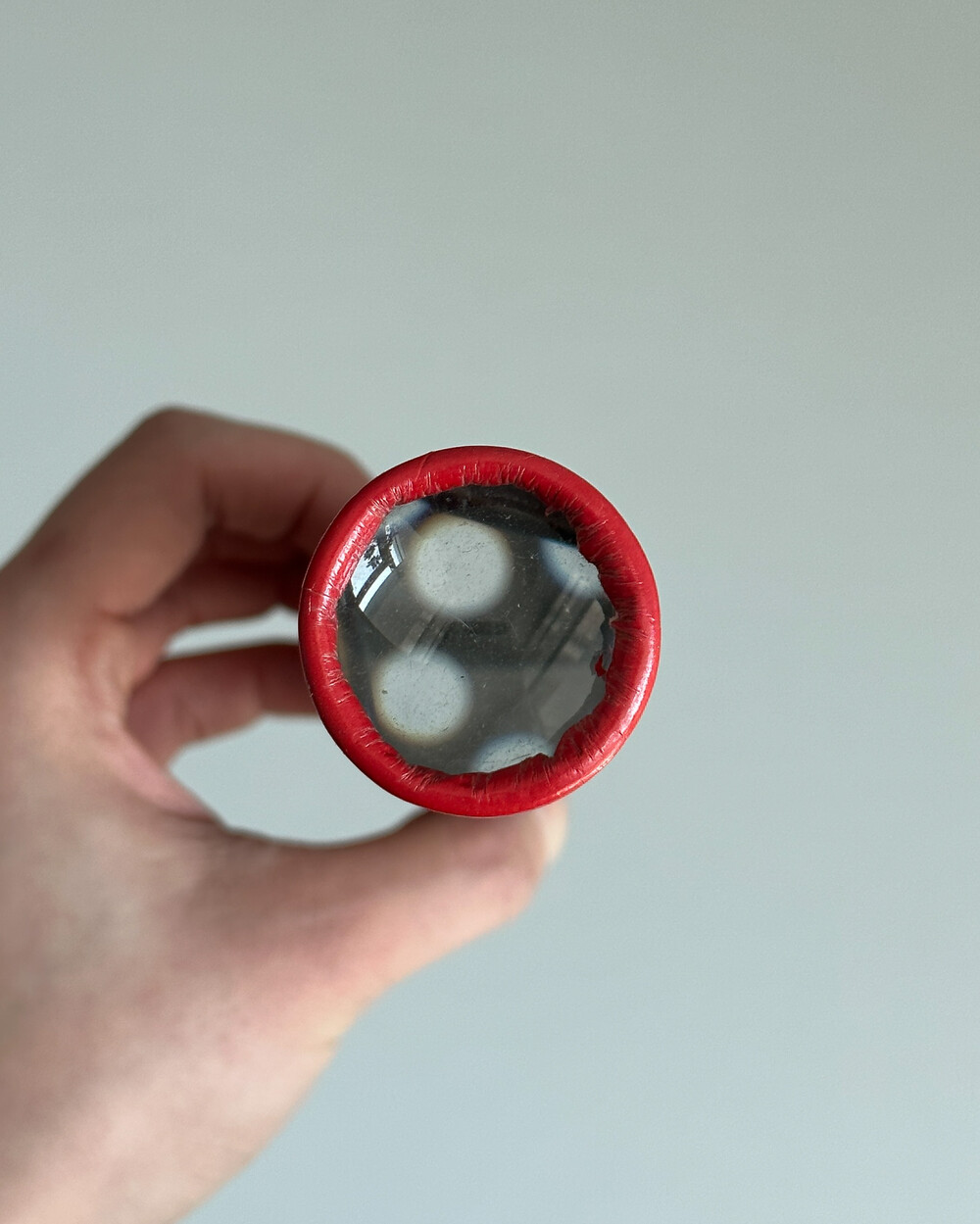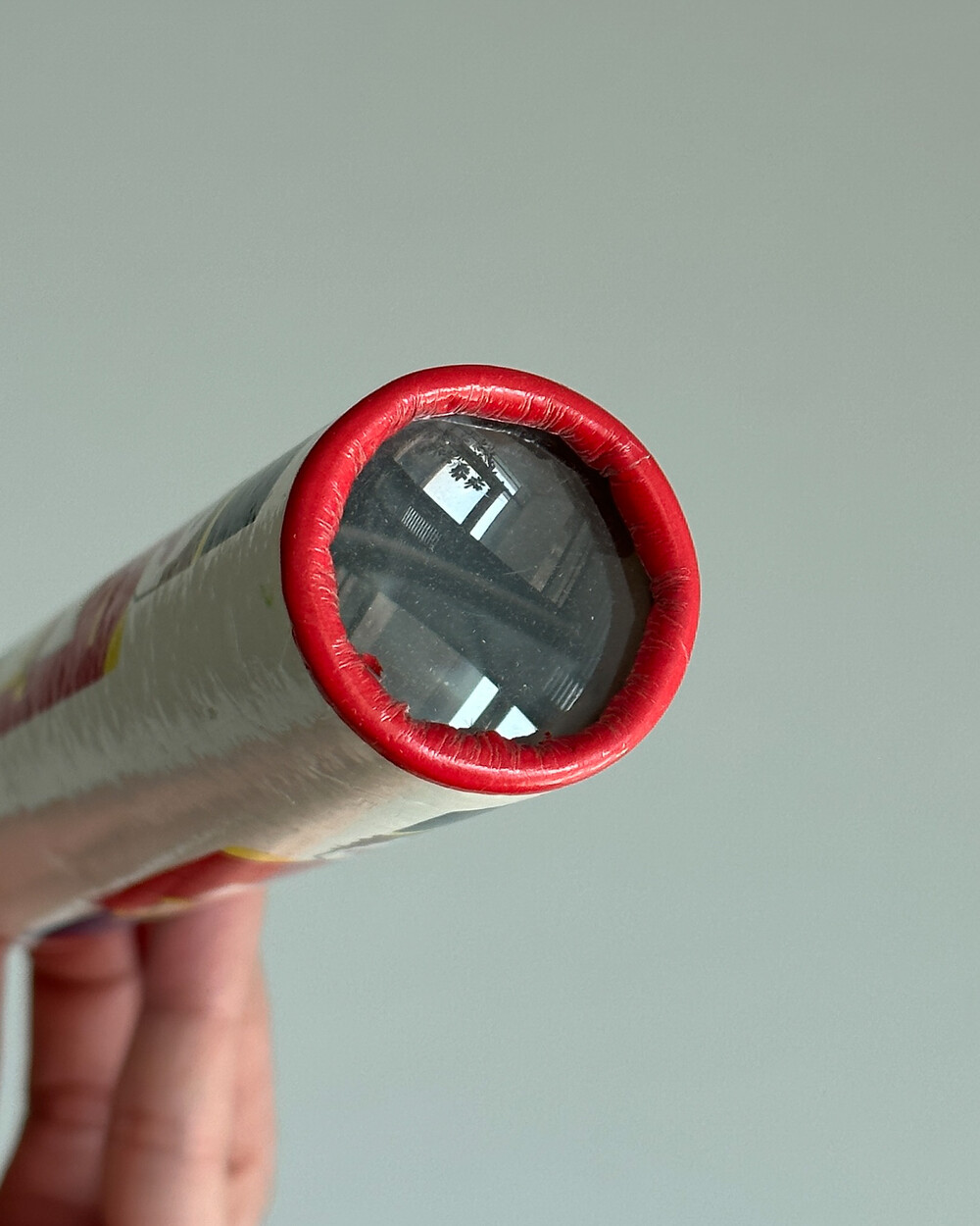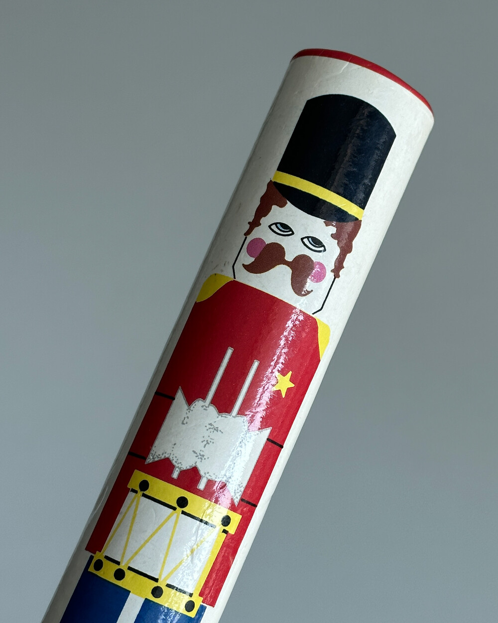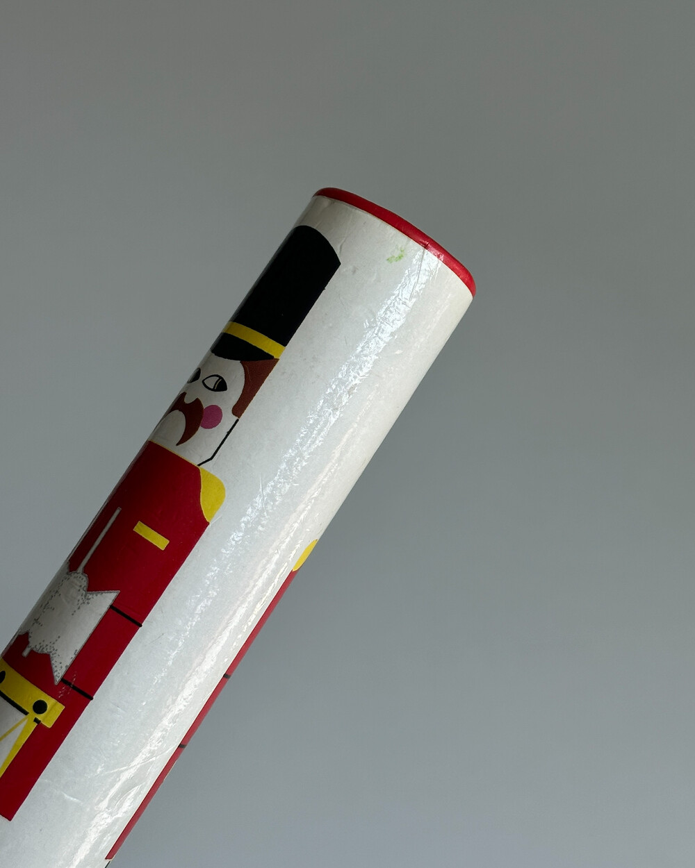 70년도 네덜란드에서 생산되었던 빈티지 만화경 토이입니다. 단단한 종이 소재의 원통형 바디에 병정 드러머 일러스트가 그려져 있습니다. 양 끝의 홀을 통해 원통을 돌리며 내부의 조각 패턴을 관찰하는 제품입니다.