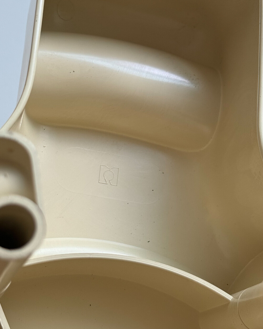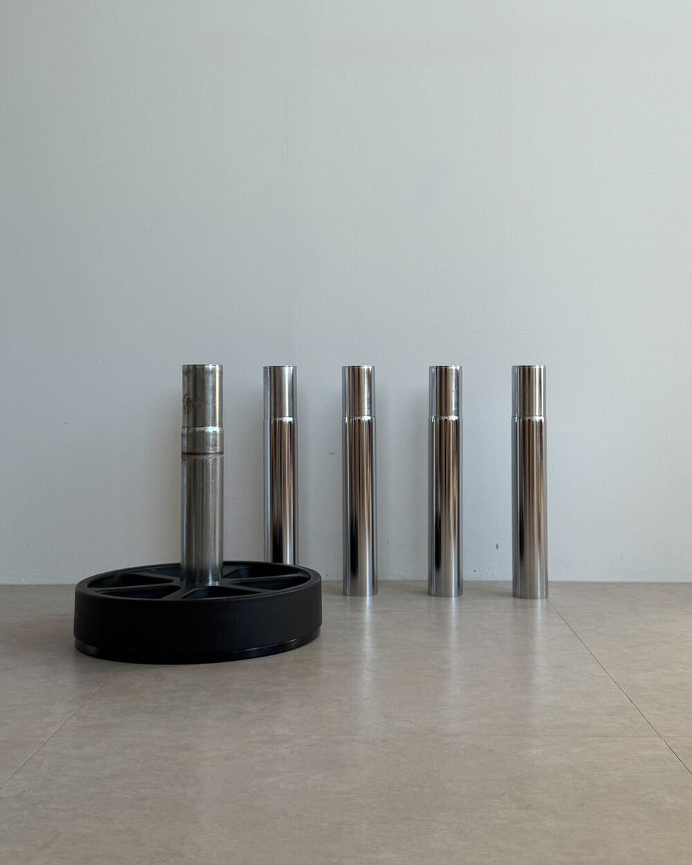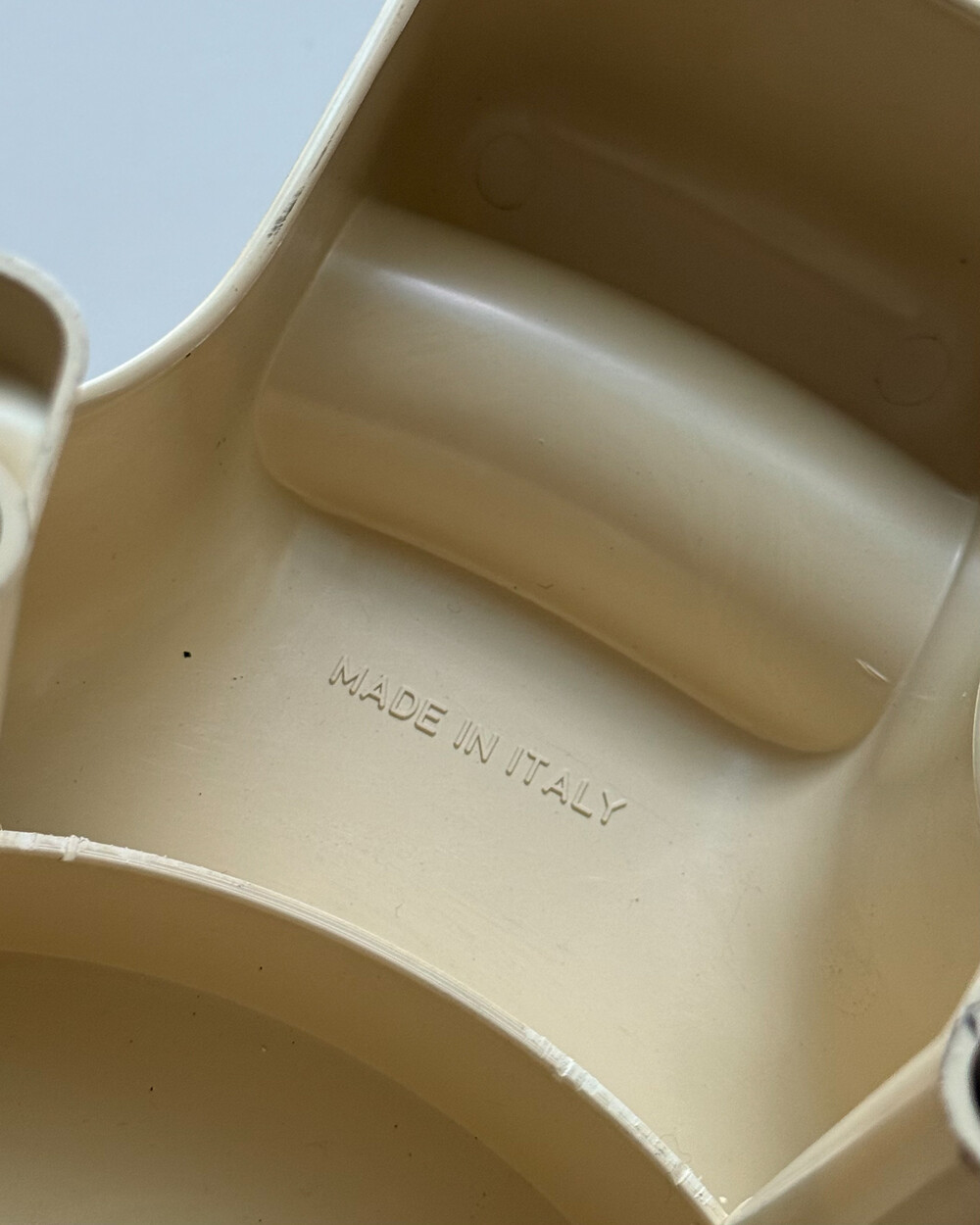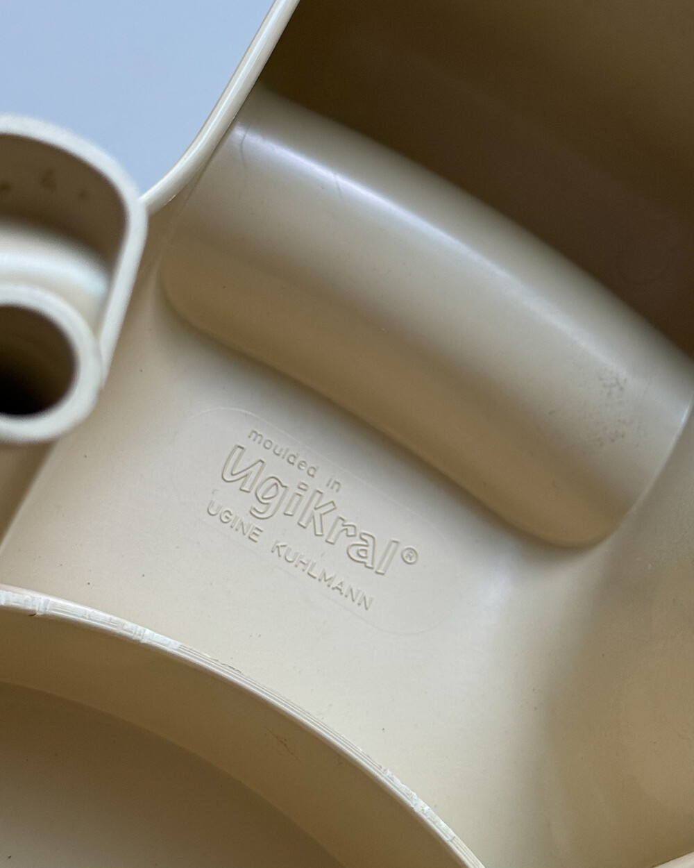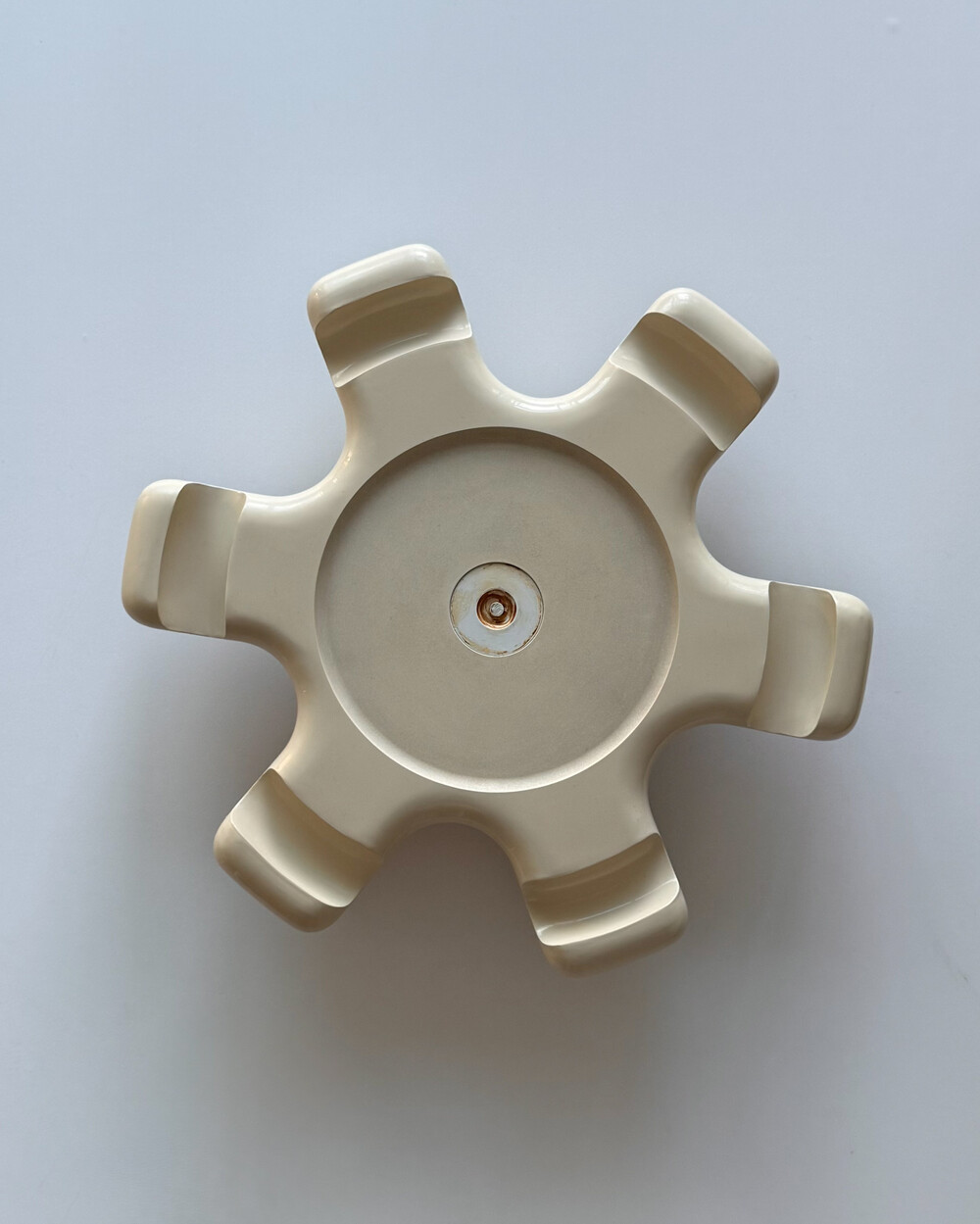 1970년대 이탈리아 Velca 사에서 제작된 코트/우산 스탠드입니다. 이탈리아의 산업디자이너 Roberto Lucci & Paolo Orlandini에 의해 디자인되었습니다. 상단은 옷걸이로 활용할 수 있으며, 하단 원통형 베이스는 원형 홀이 있어 우산이나 소품을 수납할 수 있습니다. 기둥이 분리식 모듈로 설계되어 있어 원하는 높이로 조절이 가능합니다. 당시 이탈리아 스페이스에이지의 유니크한 디자인이 잘 나타나는 제품으로 공간에서 독특한 존재감을 부여합니다.