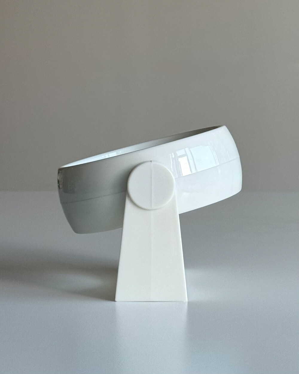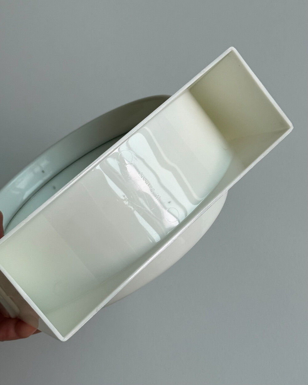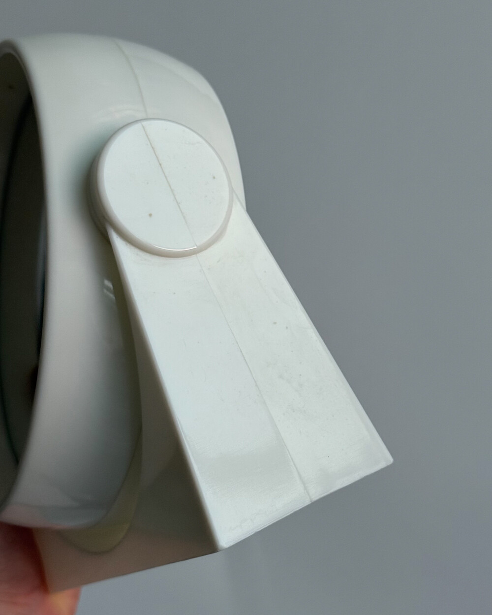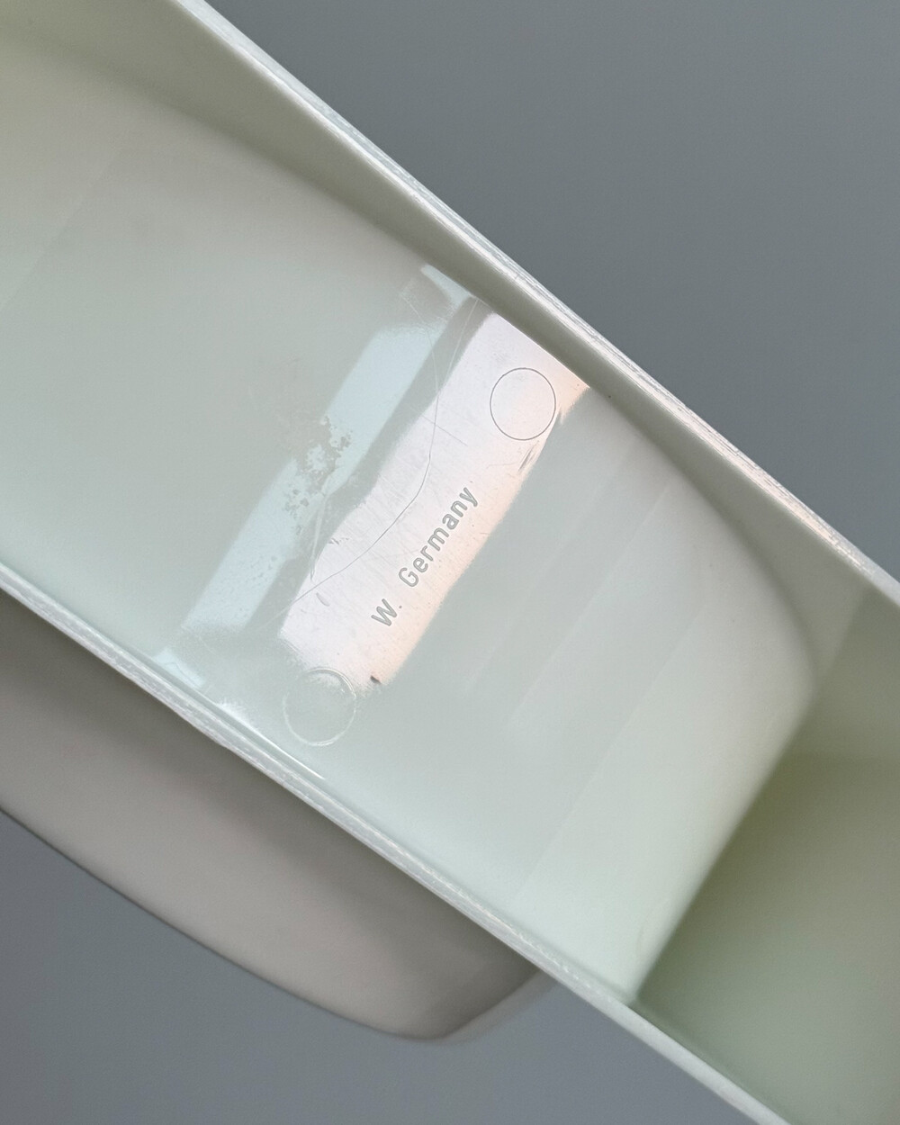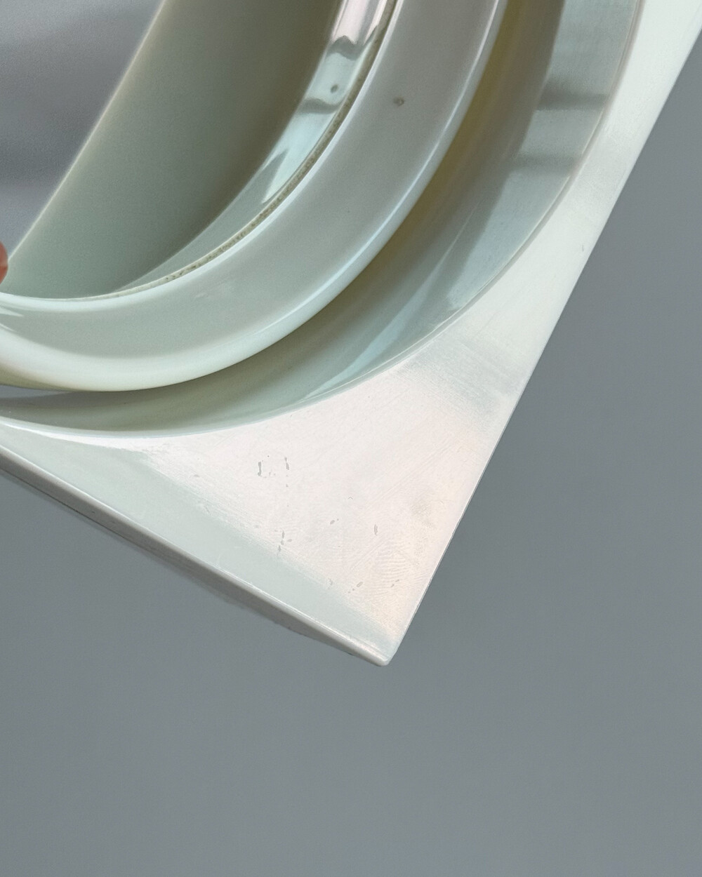 1970년대 독일 빈티지 탁상용 거울입니다. 프레임은 화이트 컬러의 단단한 플라스틱 소재로 이루어져 있습니다. 확대경과 일반경, 2개의 양면 거울로 구성되었습니다.