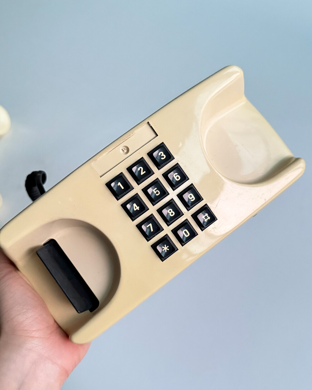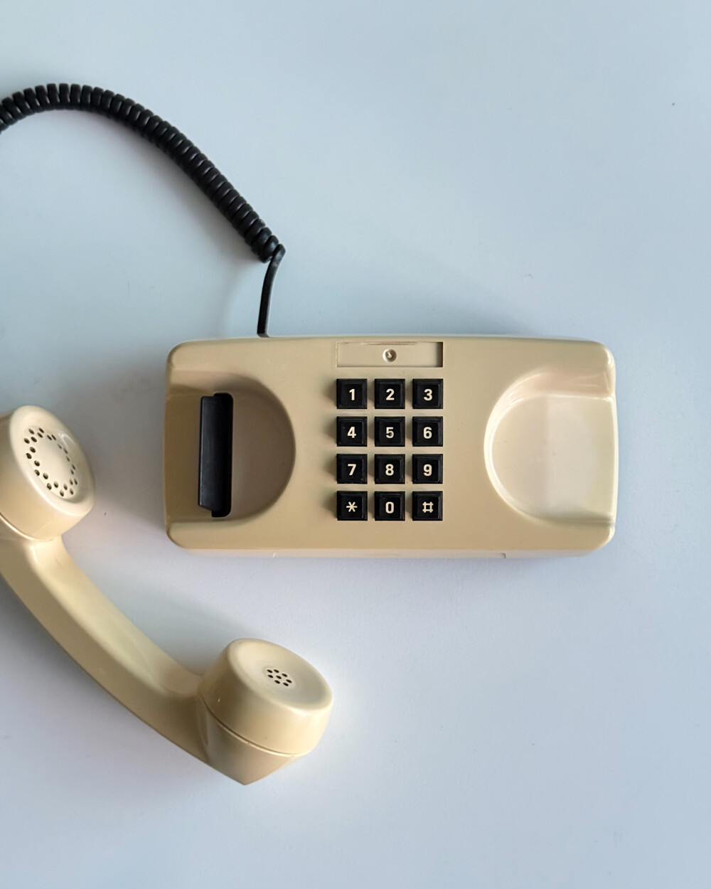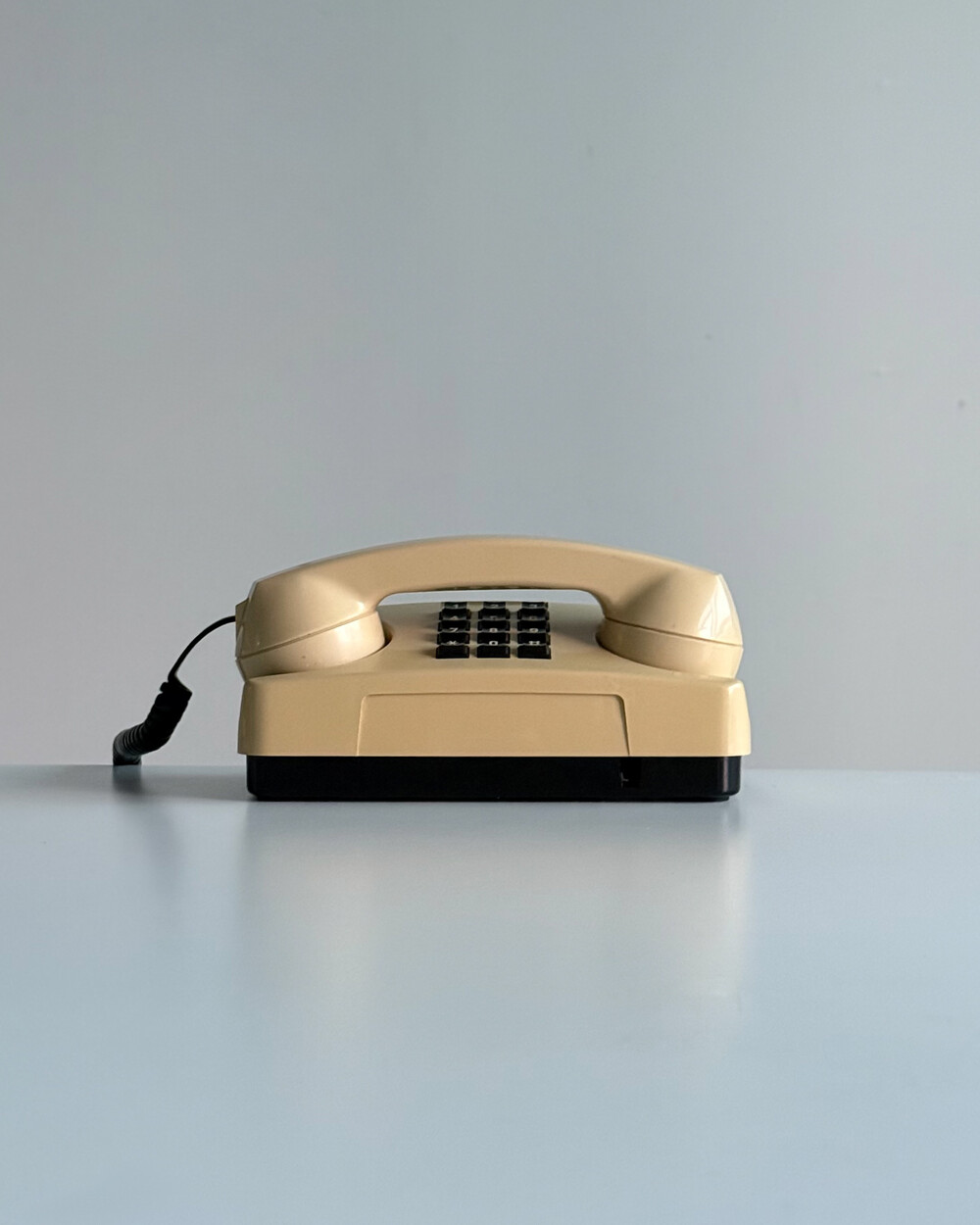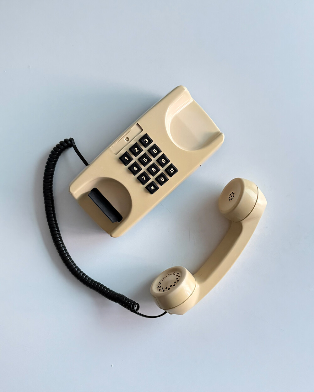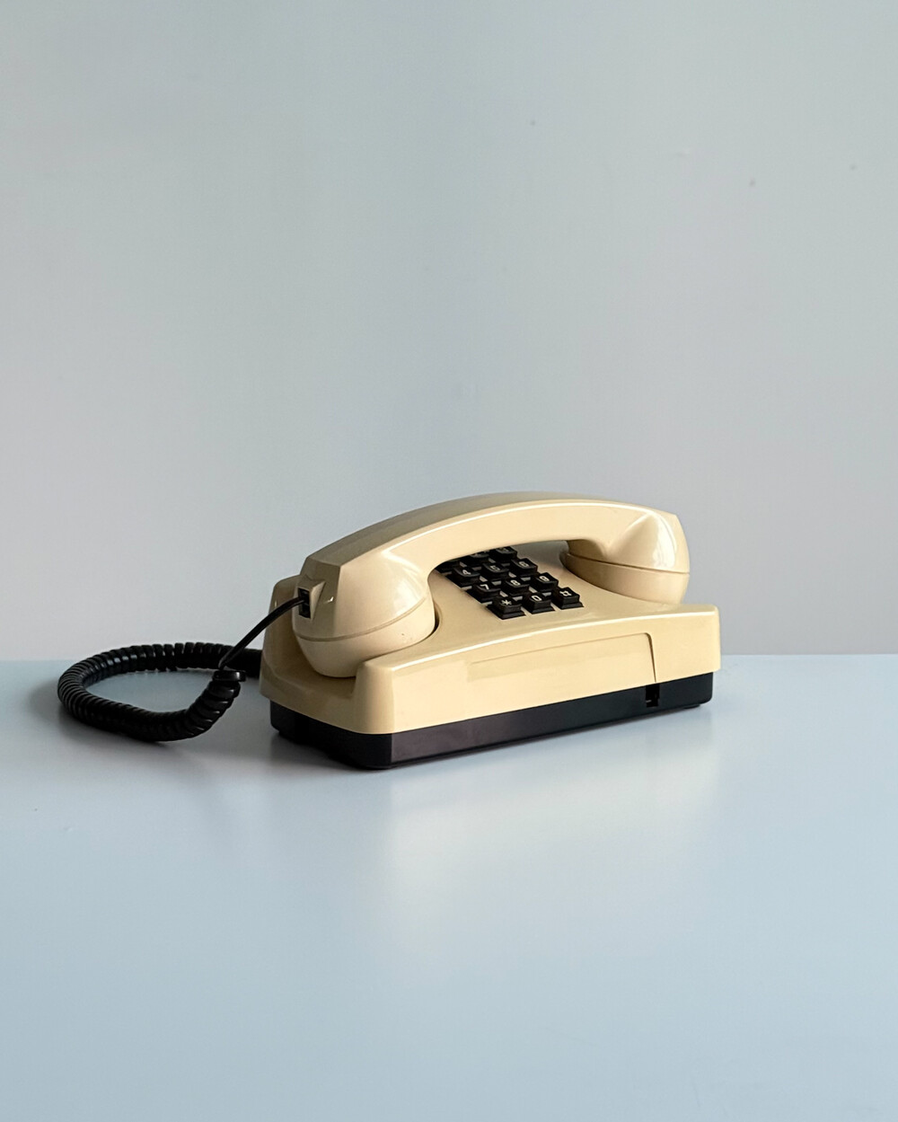 1980년대 이탈리아 GTE Telecommunicazioni에서 제작된 데스크 전화기입니다. 자연스럽게 태닝된 크림 컬러와 안정감 있는 실루엣으로 이루어져 있습니다. 당시 유럽 공공 통신기기의 실용적인 디자인 감각을 잘 보여줍니다. 오브제로 두어도 빈티지한 분위기를 더해주는 제품입니다.