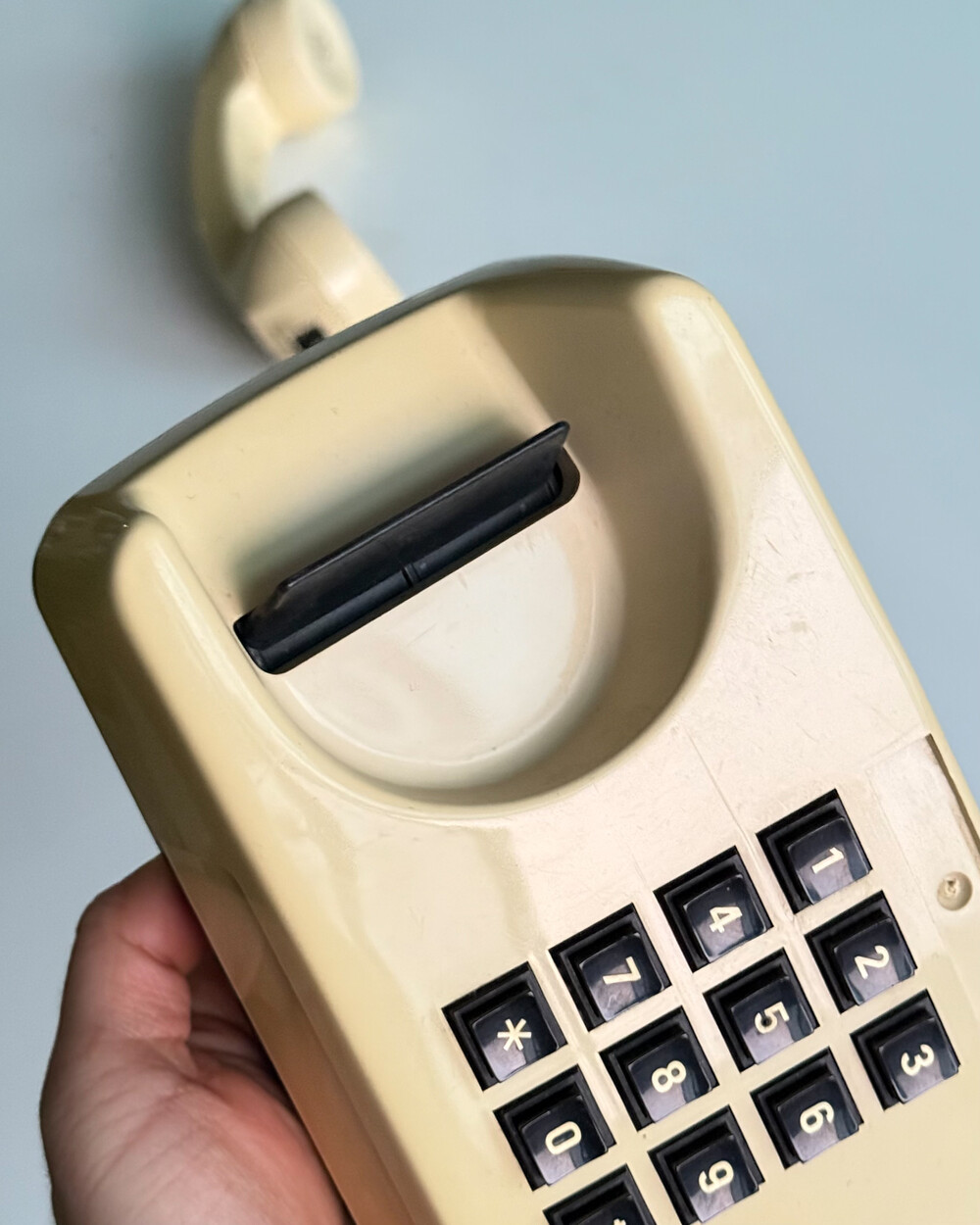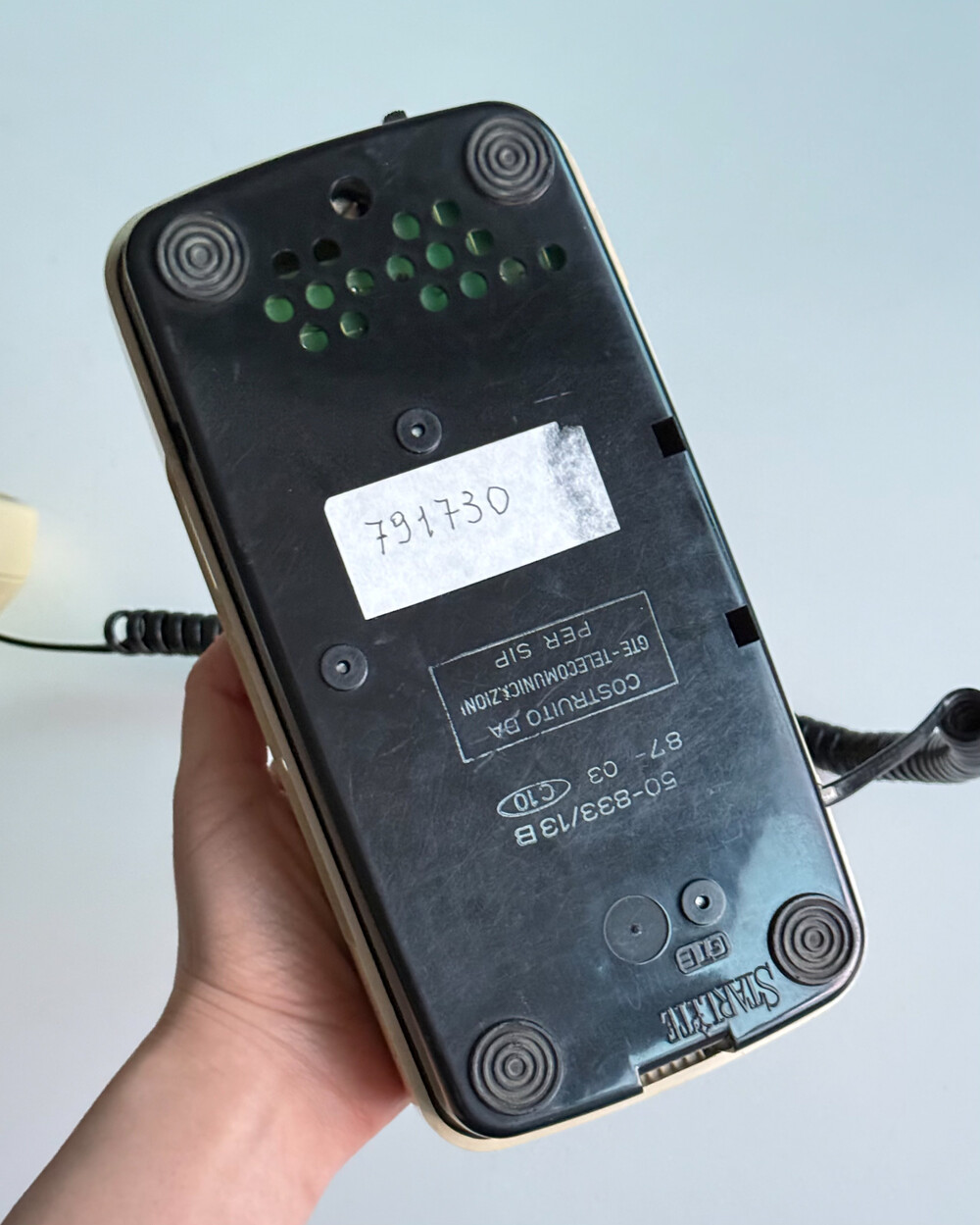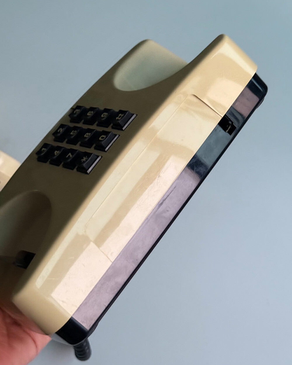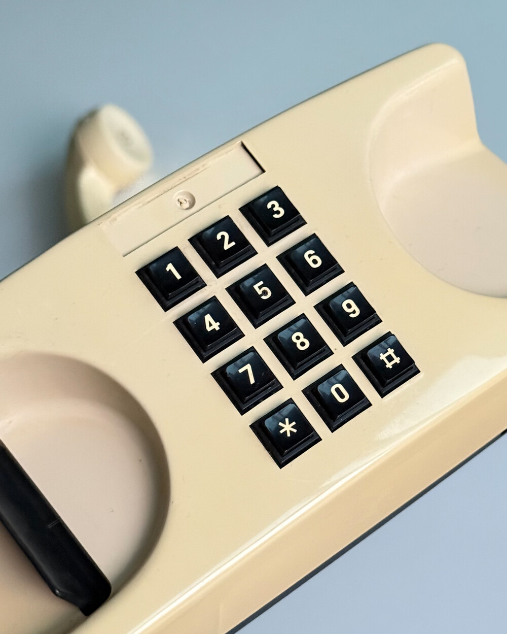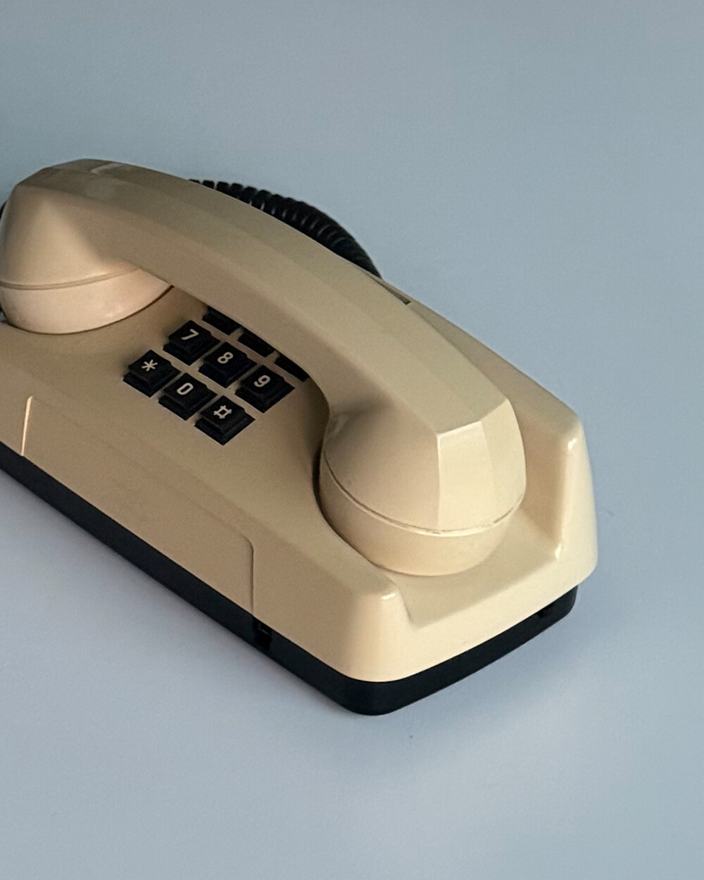 1980년대 이탈리아 GTE Telecommunicazioni에서 제작된 데스크 전화기입니다. 자연스럽게 태닝된 크림 컬러와 안정감 있는 실루엣으로 이루어져 있습니다. 당시 유럽 공공 통신기기의 실용적인 디자인 감각을 잘 보여줍니다. 오브제로 두어도 빈티지한 분위기를 더해주는 제품입니다.