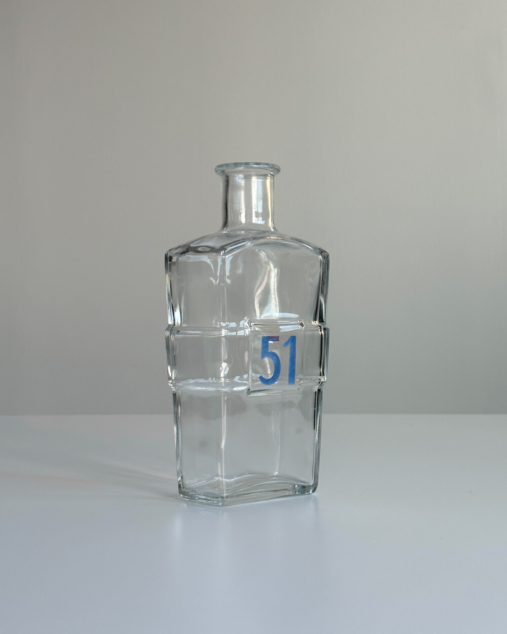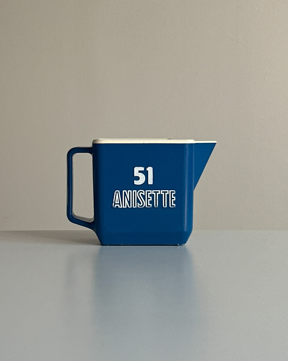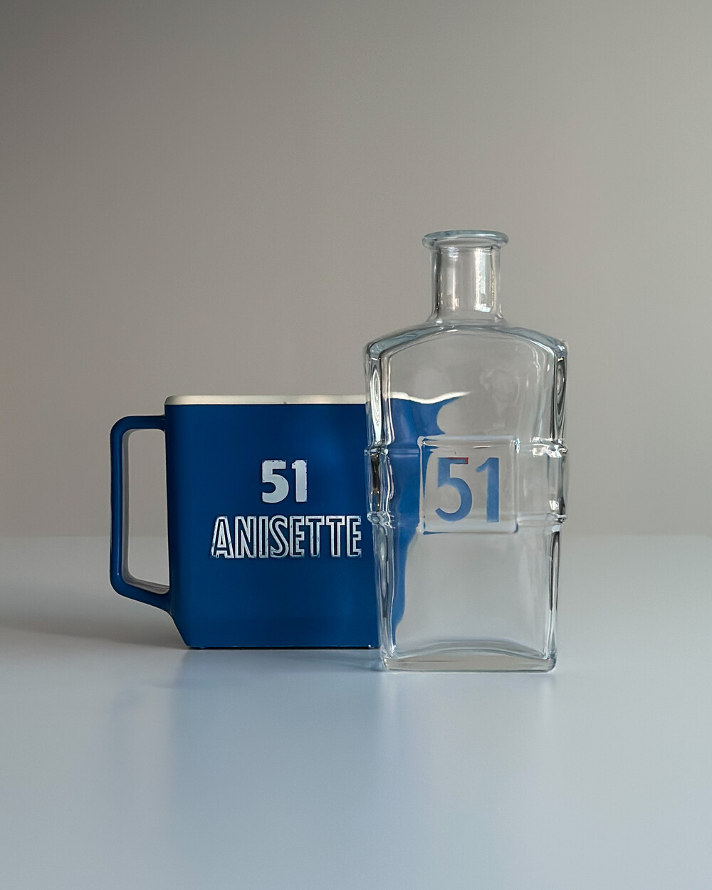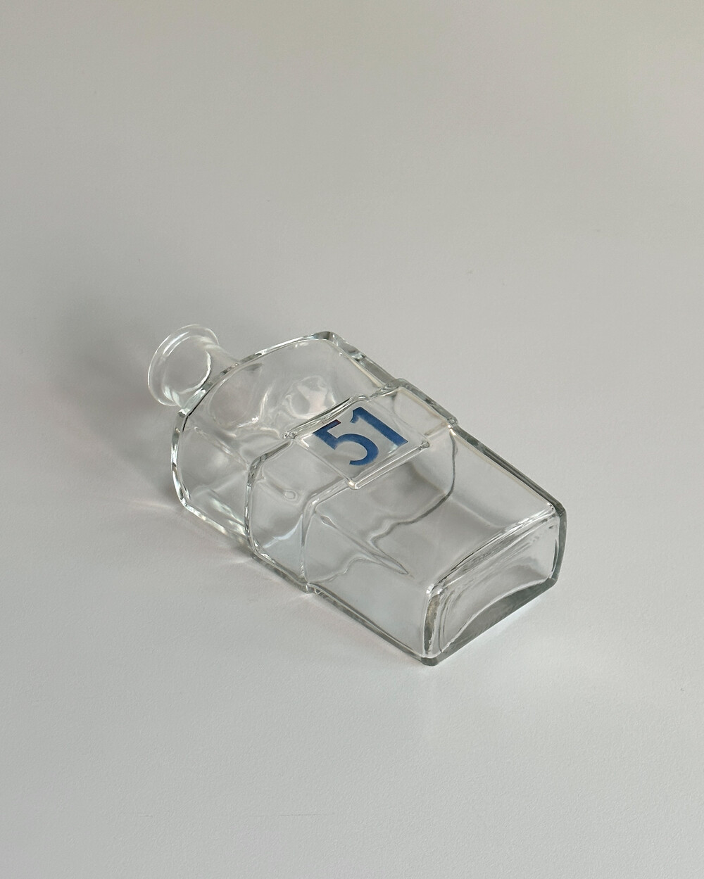 80년도 프랑스 Anisette 리큐어 브랜드 RICARD 51의 빈티지 피처와 유리병입니다. 숫자 51은 1951년 ‘Pastis 51’이라는 제품 이름에서 유래되었습니다. 레트로한 무드를 주는 매력적인 디자인으로 포인트 소품으로 활용하기 좋습니다.