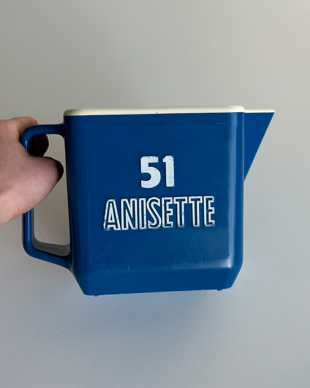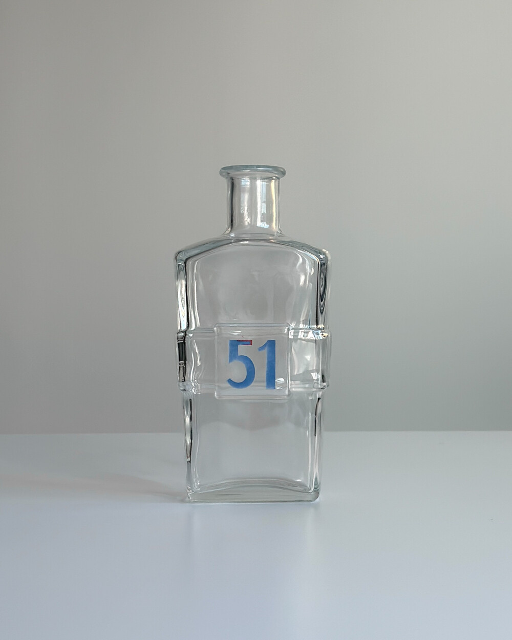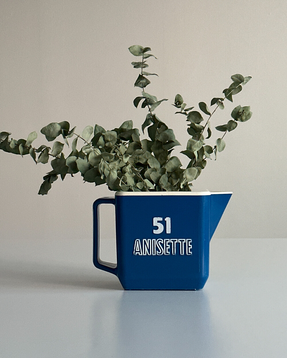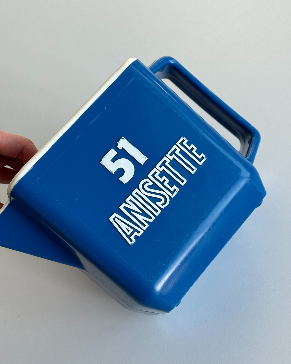 80년도 프랑스 Anisette 리큐어 브랜드 RICARD 51의 빈티지 피처와 유리병입니다. 숫자 51은 1951년 ‘Pastis 51’이라는 제품 이름에서 유래되었습니다. 레트로한 무드를 주는 매력적인 디자인으로 포인트 소품으로 활용하기 좋습니다.