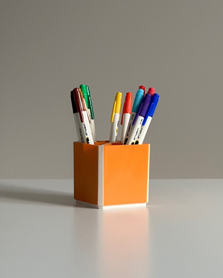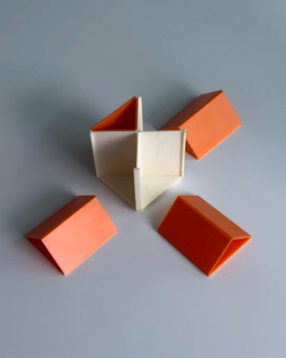 70년도 독일 JW(Jahn Werbung)사의 데스크 펜 홀더입니다. 4개의 분리된 칸으로 구성되어 있으며, 칸은 홀더로부터 자유롭게 분리가 가능합니다.