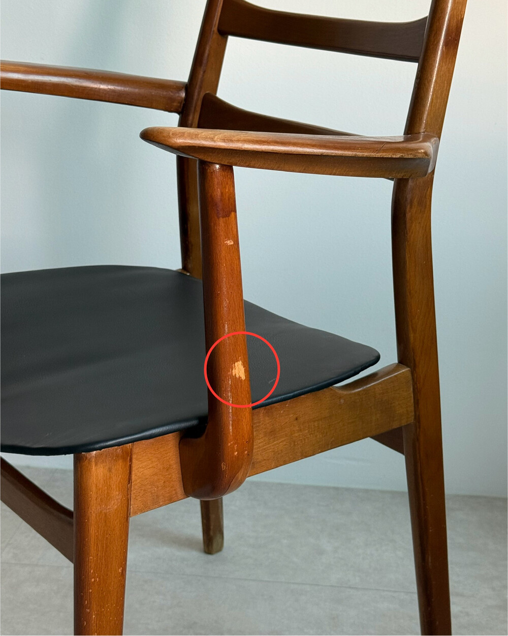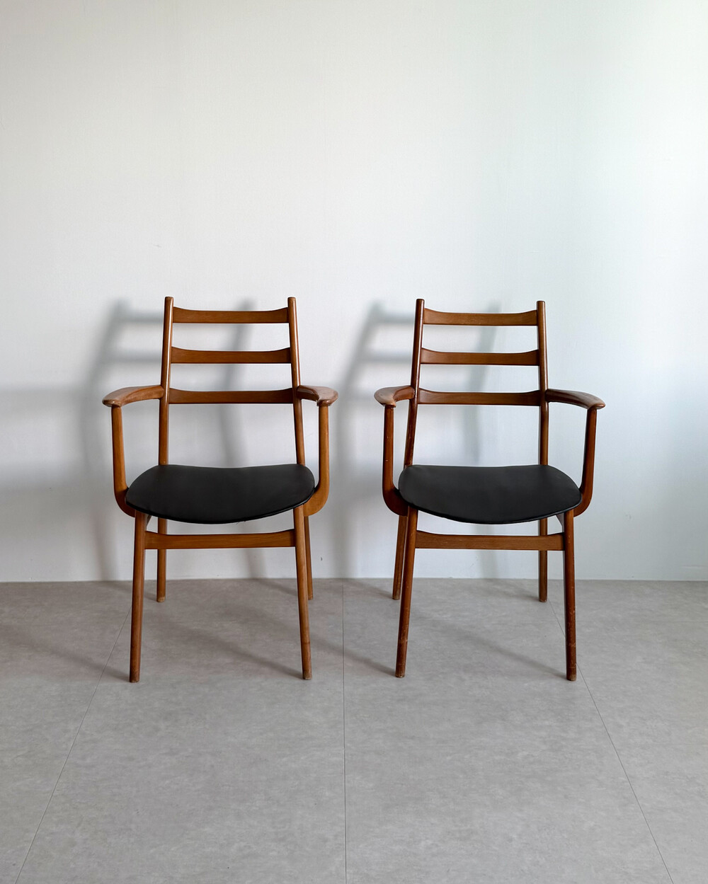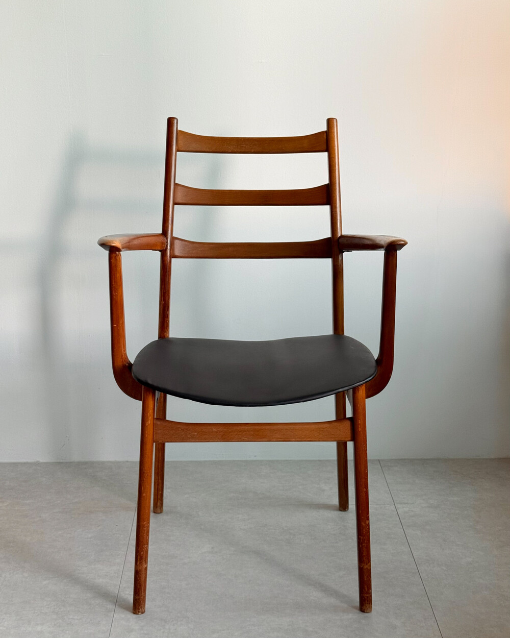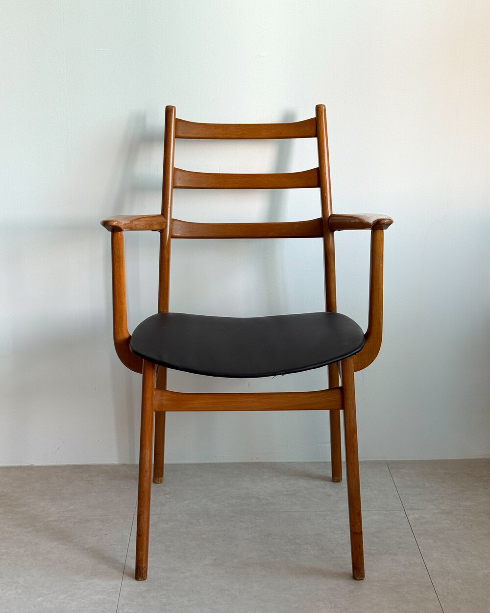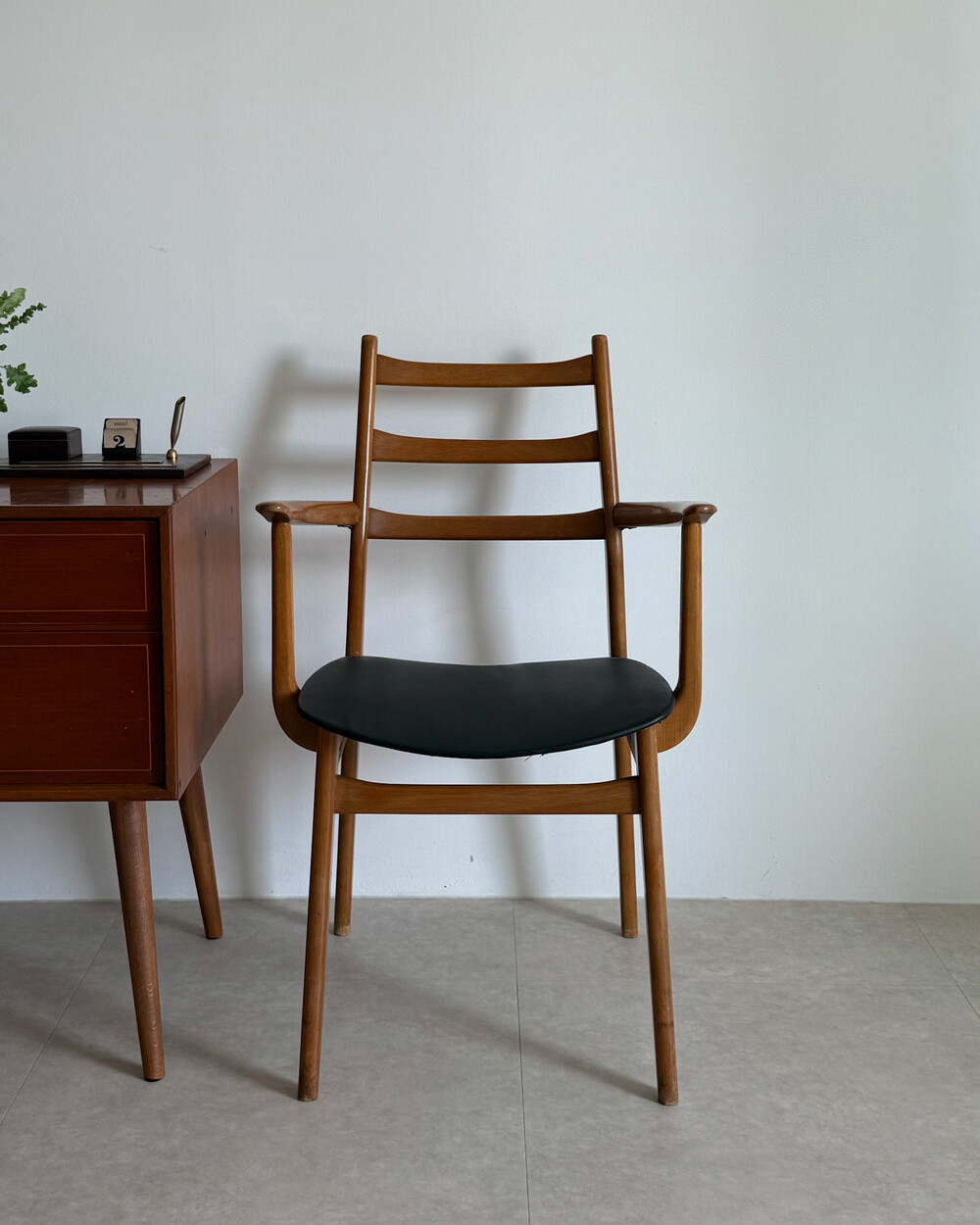 1960년대 독일 CASALA 사에서 제작된 빈티지 암체어입니다. CASALA는 1917년 설립된 전통있는 가구 브랜드로 당시 유럽 전역의 교회, 공공기관, 교육시설 등에 보급되었으며, 뛰어난 내구성과 간결한 구조미로 오늘날까지도 수집 가치가 높게 평가되고 있습니다. 세 줄의 라운드형 등받이와 곡선형 암레스트, 길게 뻗은 다리 라인 등 디테일이 매력적인 디자인입니다.