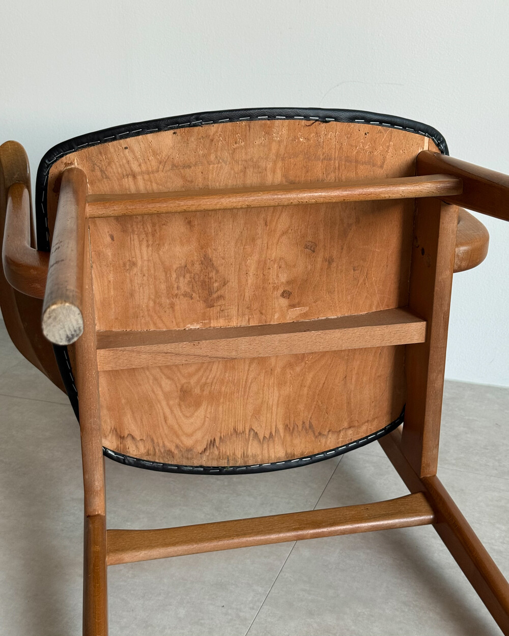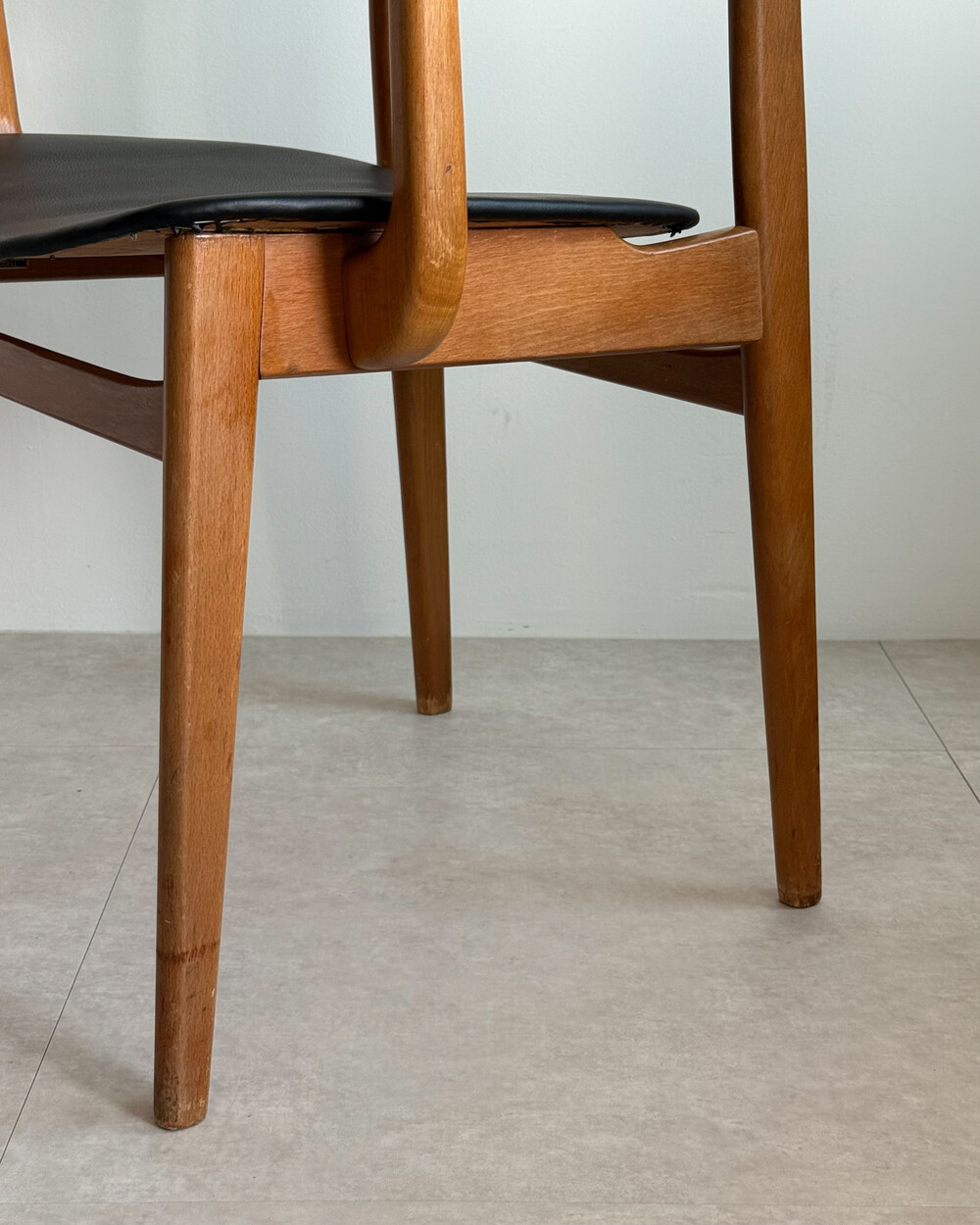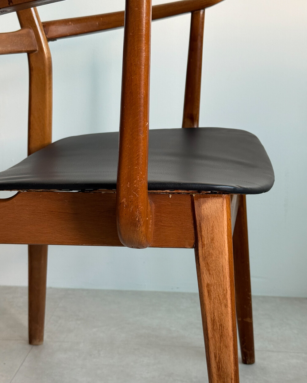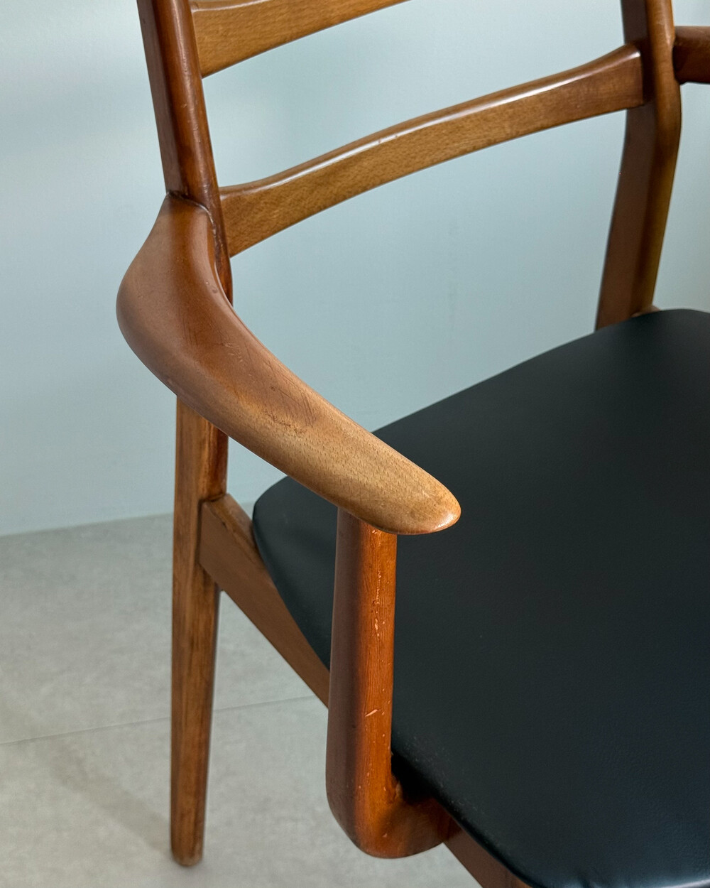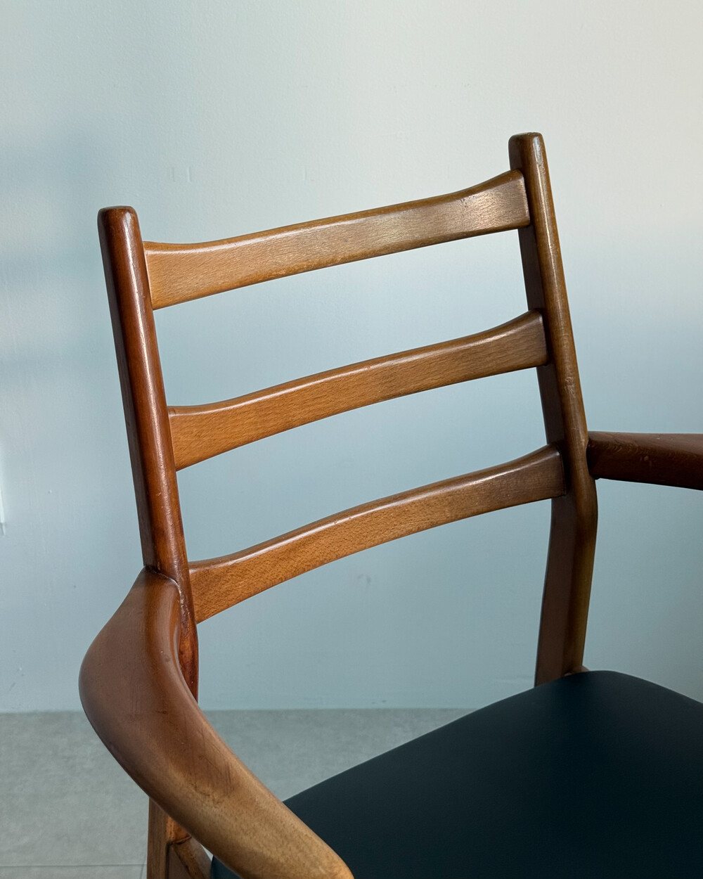 1960년대 독일 CASALA 사에서 제작된 빈티지 암체어입니다. CASALA는 1917년 설립된 전통있는 가구 브랜드로 당시 유럽 전역의 교회, 공공기관, 교육시설 등에 보급되었으며, 뛰어난 내구성과 간결한 구조미로 오늘날까지도 수집 가치가 높게 평가되고 있습니다. 세 줄의 라운드형 등받이와 곡선형 암레스트, 길게 뻗은 다리 라인 등 디테일이 매력적인 디자인입니다.