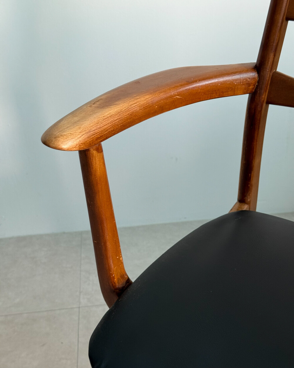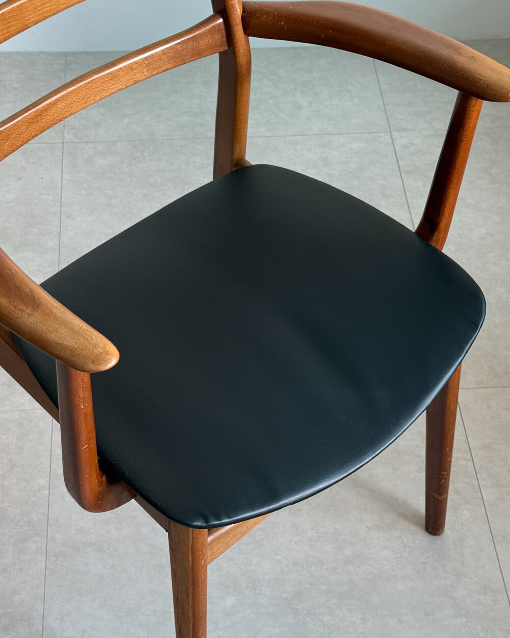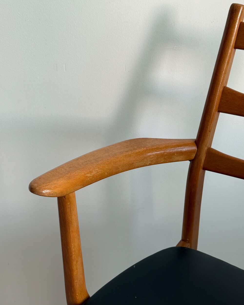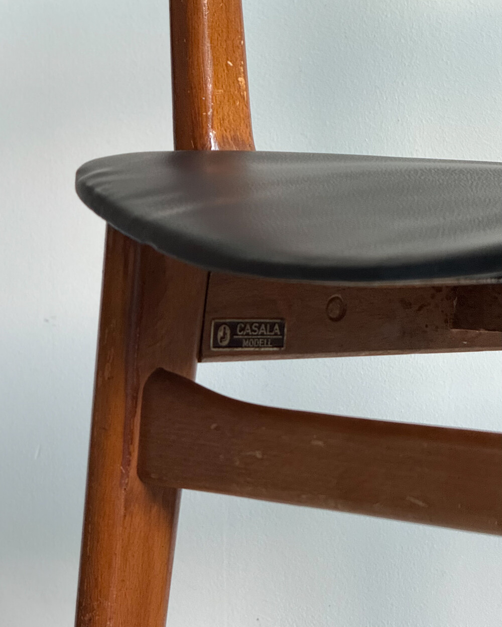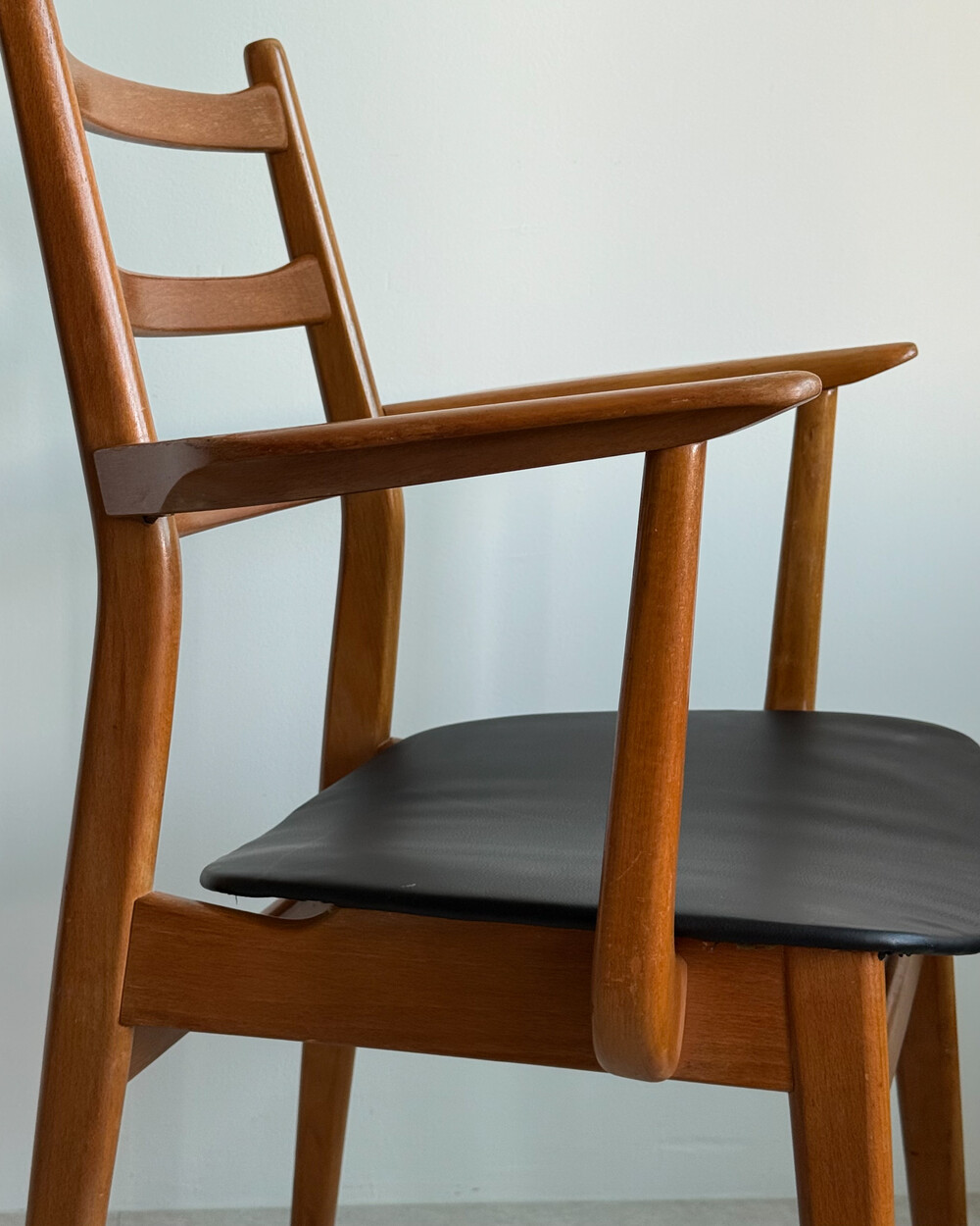 1960년대 독일 CASALA 사에서 제작된 빈티지 암체어입니다. CASALA는 1917년 설립된 전통있는 가구 브랜드로 당시 유럽 전역의 교회, 공공기관, 교육시설 등에 보급되었으며, 뛰어난 내구성과 간결한 구조미로 오늘날까지도 수집 가치가 높게 평가되고 있습니다. 세 줄의 라운드형 등받이와 곡선형 암레스트, 길게 뻗은 다리 라인 등 디테일이 매력적인 디자인입니다.