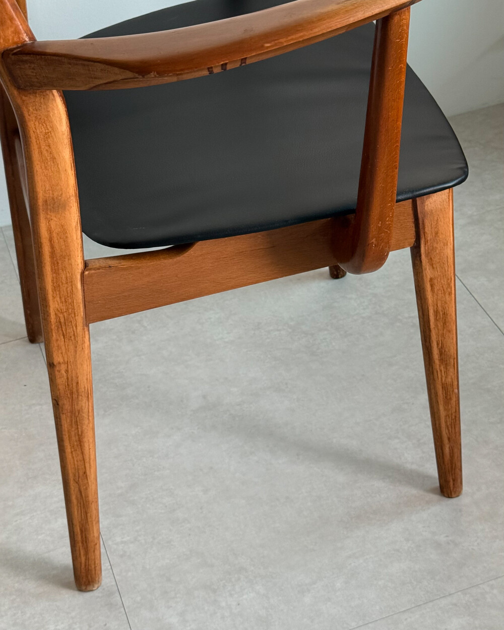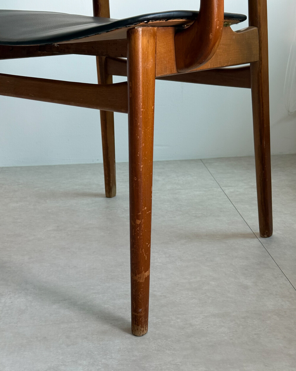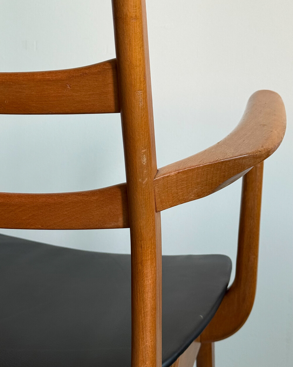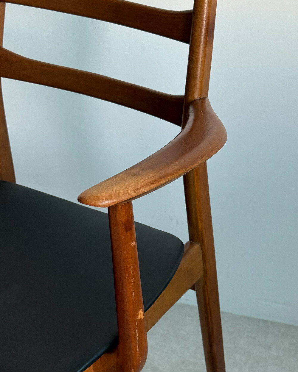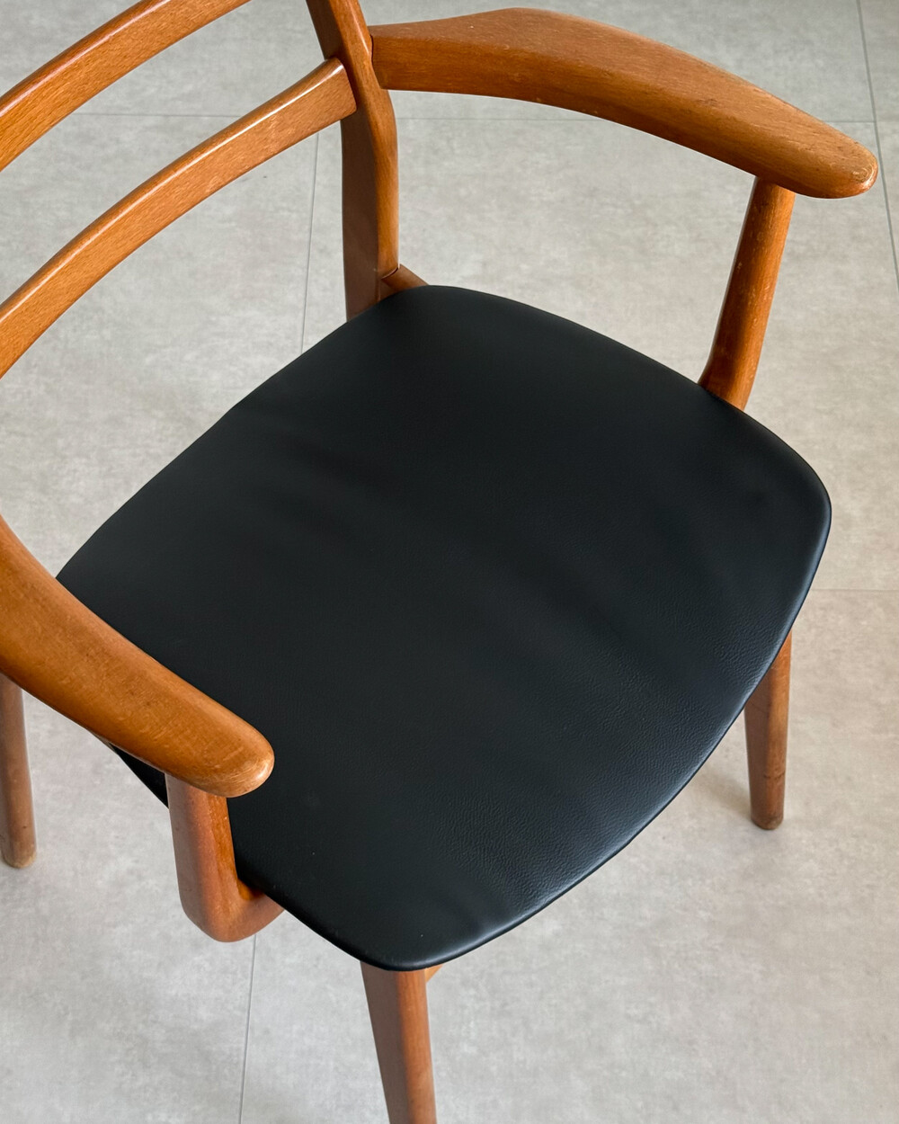 1960년대 독일 CASALA 사에서 제작된 빈티지 암체어입니다. CASALA는 1917년 설립된 전통있는 가구 브랜드로 당시 유럽 전역의 교회, 공공기관, 교육시설 등에 보급되었으며, 뛰어난 내구성과 간결한 구조미로 오늘날까지도 수집 가치가 높게 평가되고 있습니다. 세 줄의 라운드형 등받이와 곡선형 암레스트, 길게 뻗은 다리 라인 등 디테일이 매력적인 디자인입니다.