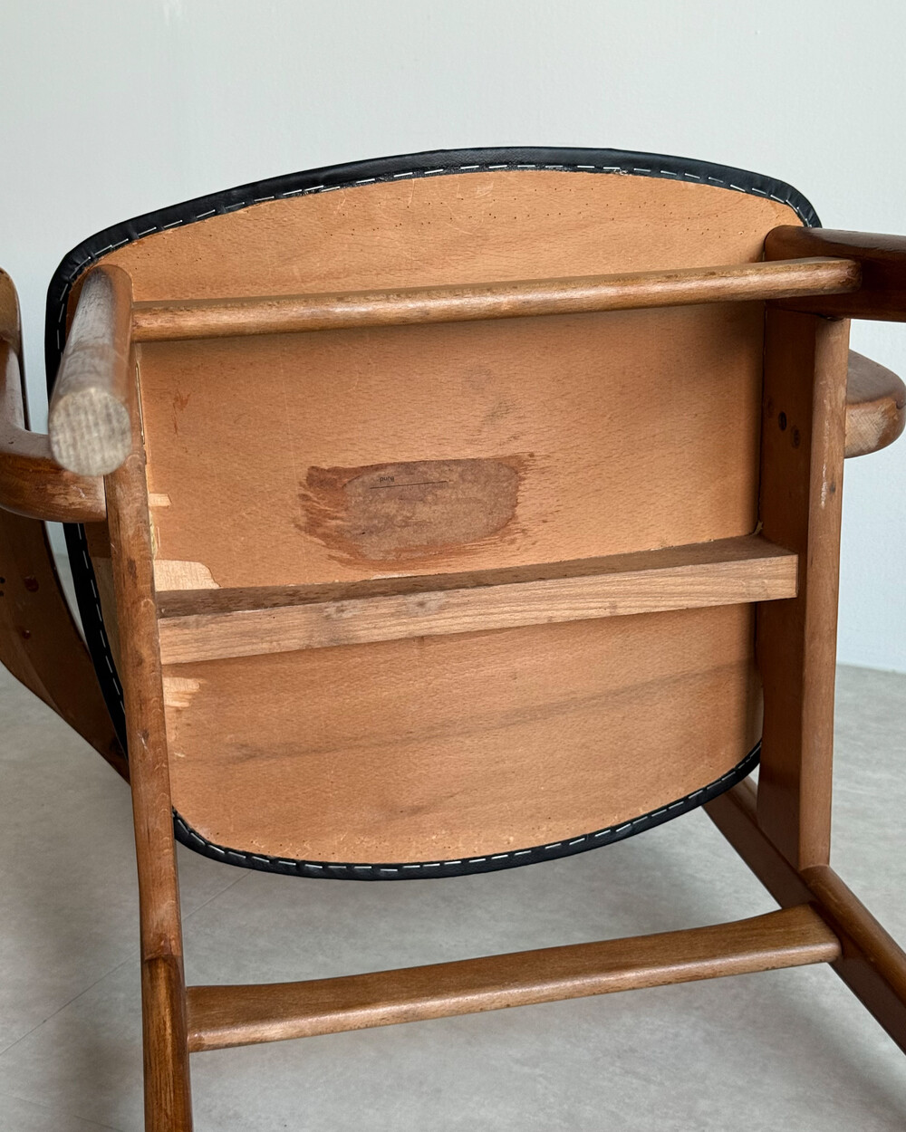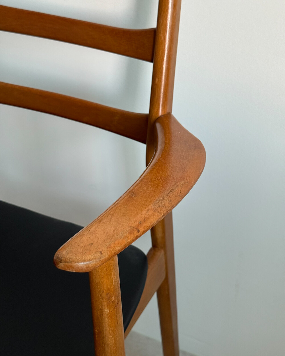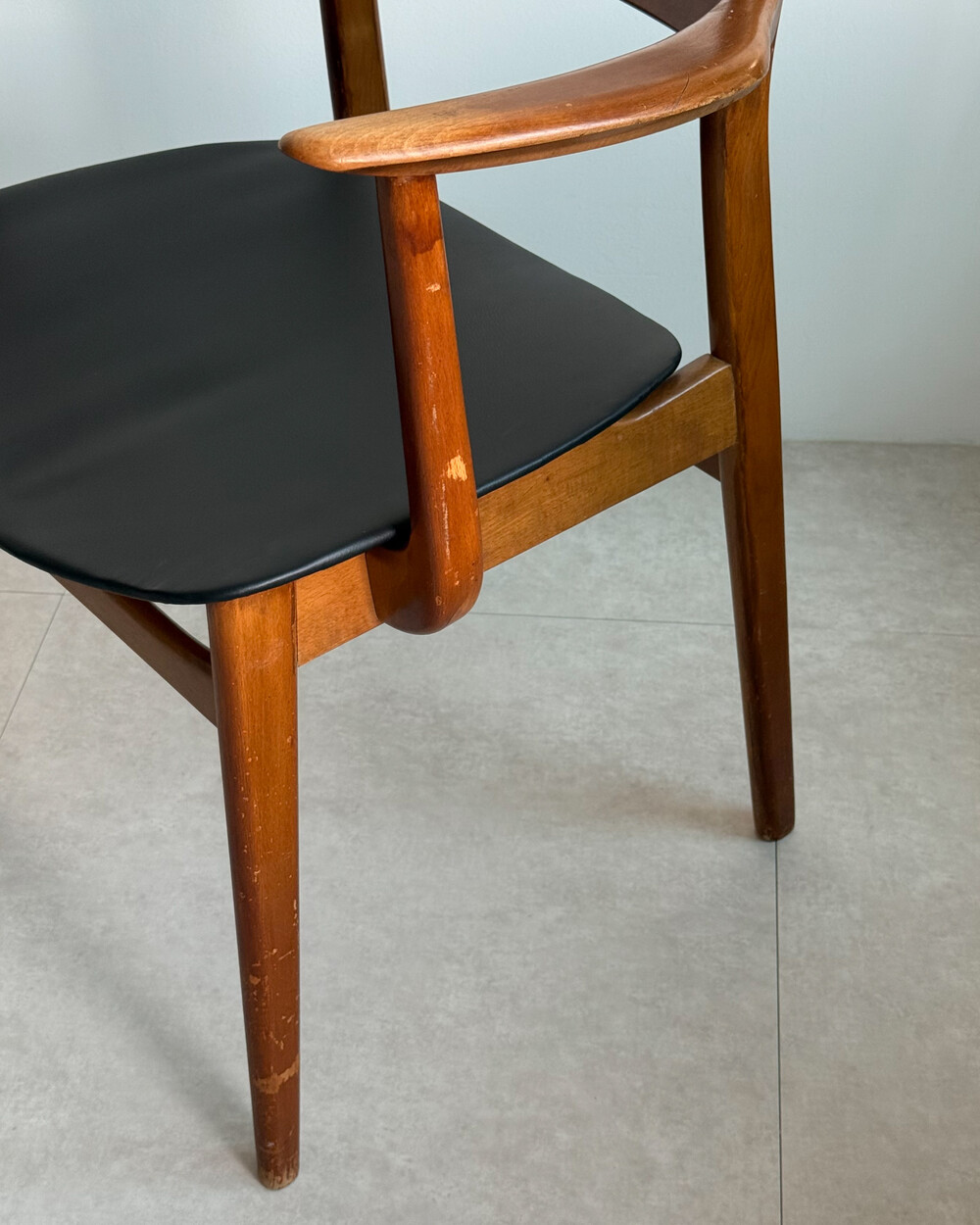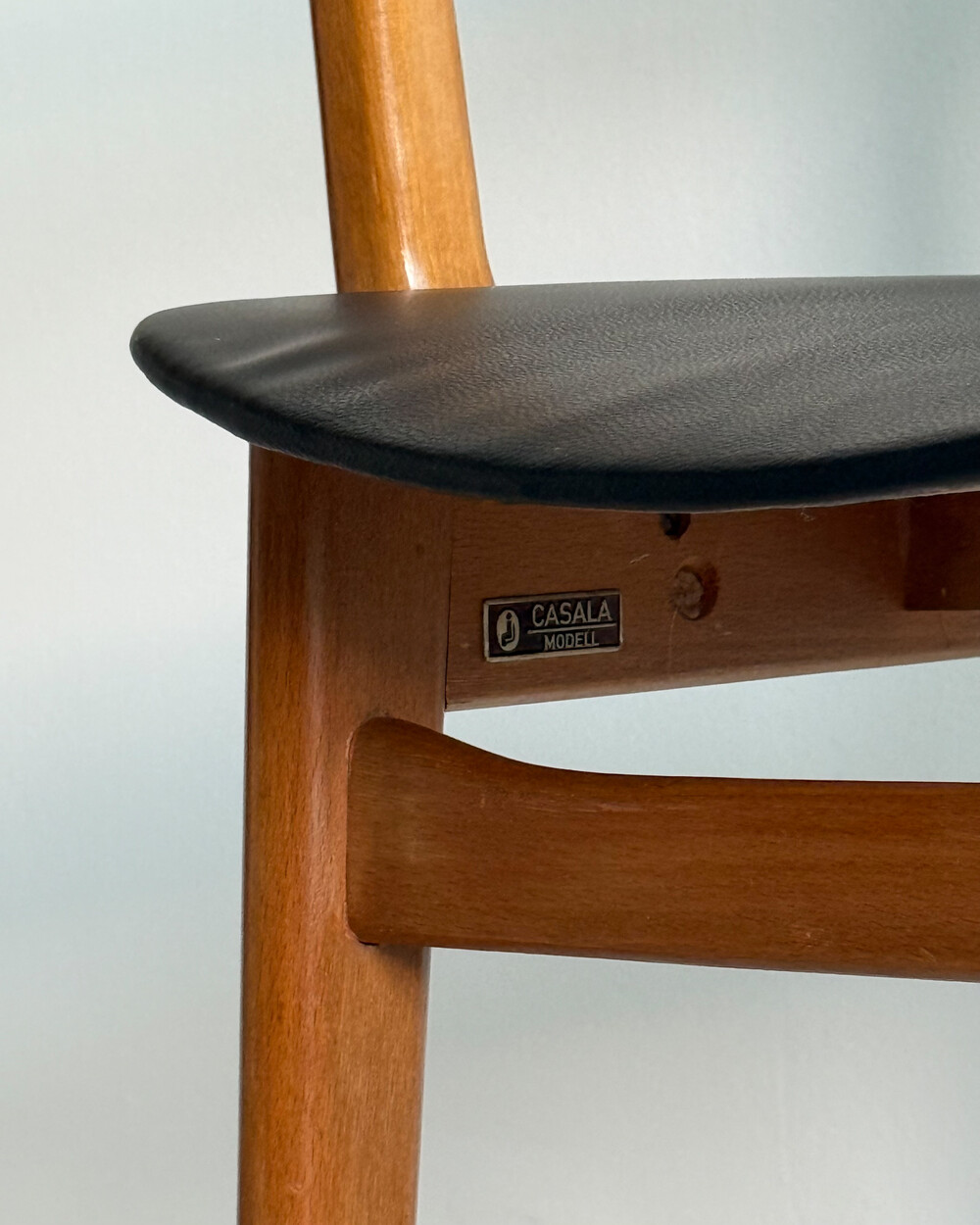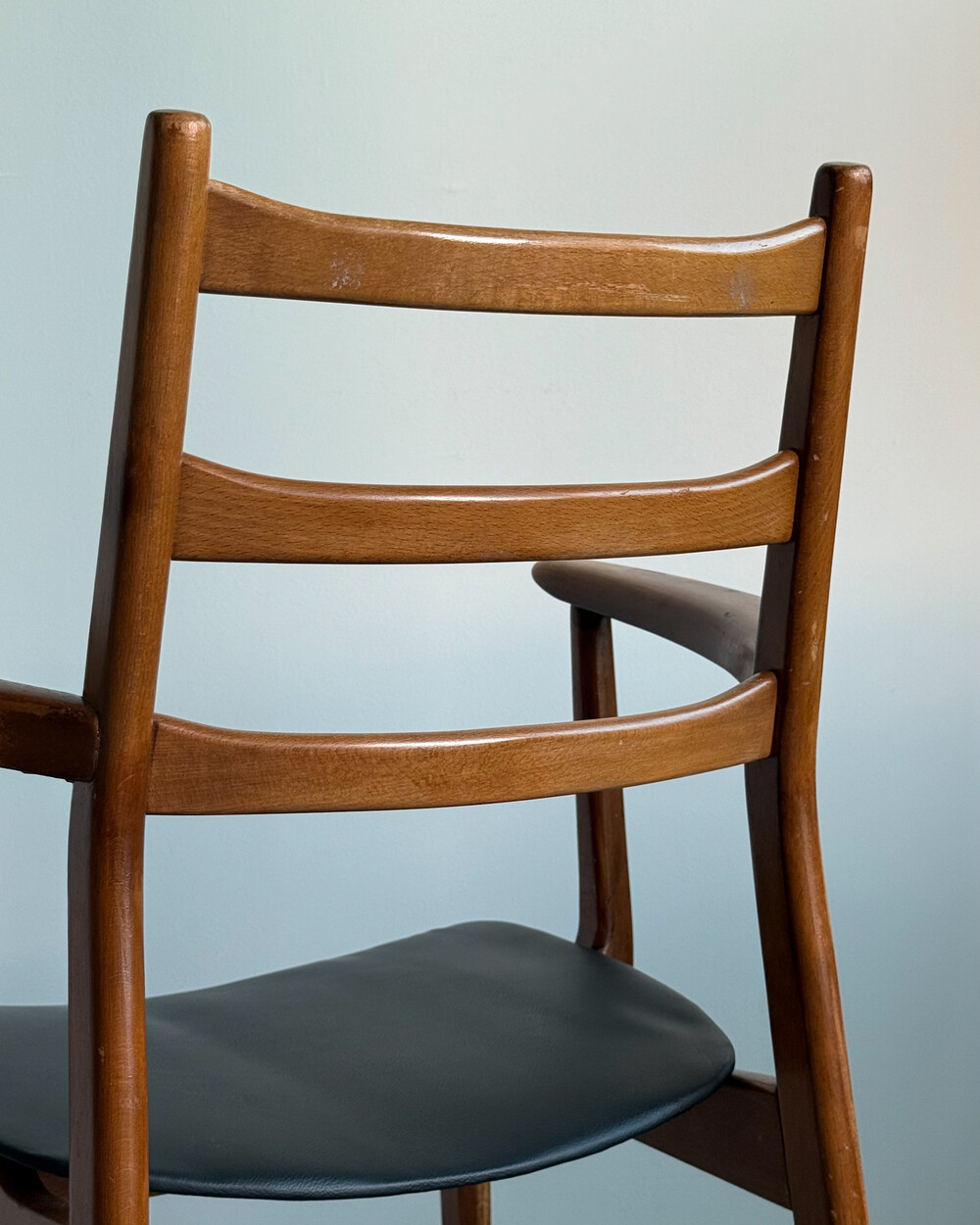 1960년대 독일 CASALA 사에서 제작된 빈티지 암체어입니다. CASALA는 1917년 설립된 전통있는 가구 브랜드로 당시 유럽 전역의 교회, 공공기관, 교육시설 등에 보급되었으며, 뛰어난 내구성과 간결한 구조미로 오늘날까지도 수집 가치가 높게 평가되고 있습니다. 세 줄의 라운드형 등받이와 곡선형 암레스트, 길게 뻗은 다리 라인 등 디테일이 매력적인 디자인입니다.