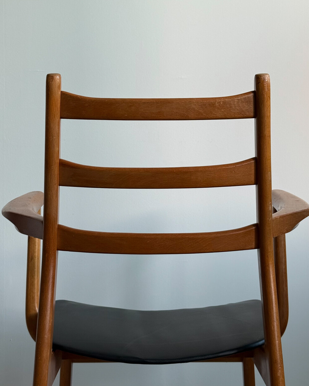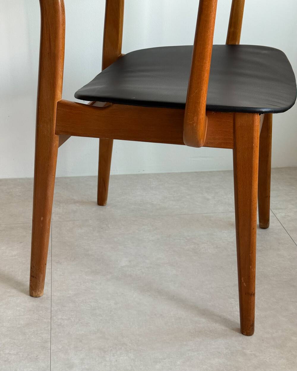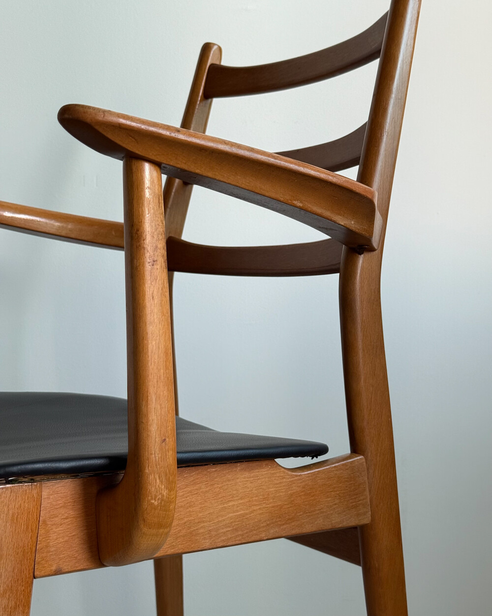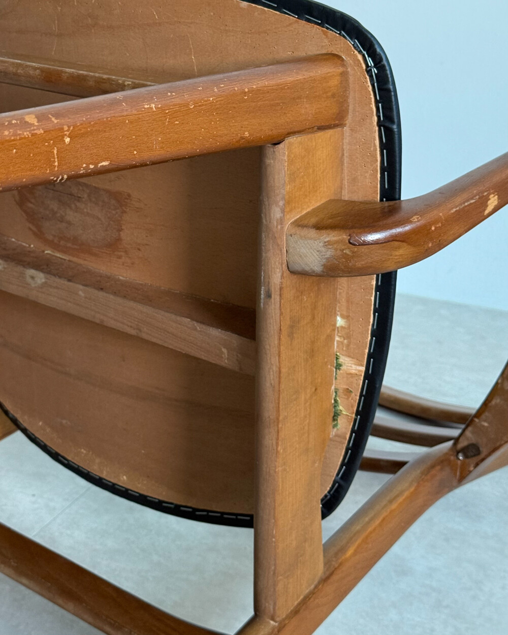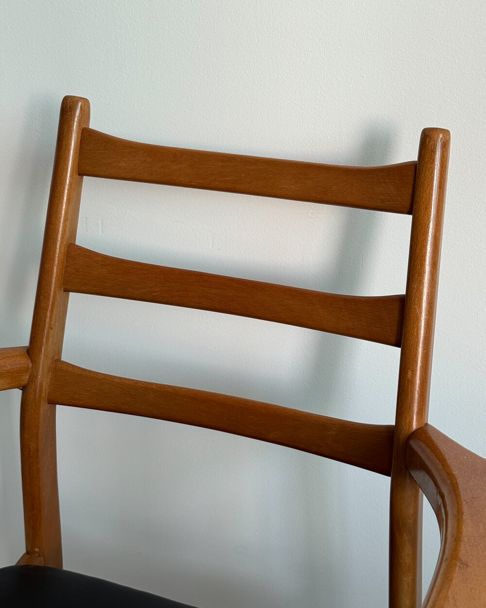 1960년대 독일 CASALA 사에서 제작된 빈티지 암체어입니다. CASALA는 1917년 설립된 전통있는 가구 브랜드로 당시 유럽 전역의 교회, 공공기관, 교육시설 등에 보급되었으며, 뛰어난 내구성과 간결한 구조미로 오늘날까지도 수집 가치가 높게 평가되고 있습니다. 세 줄의 라운드형 등받이와 곡선형 암레스트, 길게 뻗은 다리 라인 등 디테일이 매력적인 디자인입니다.