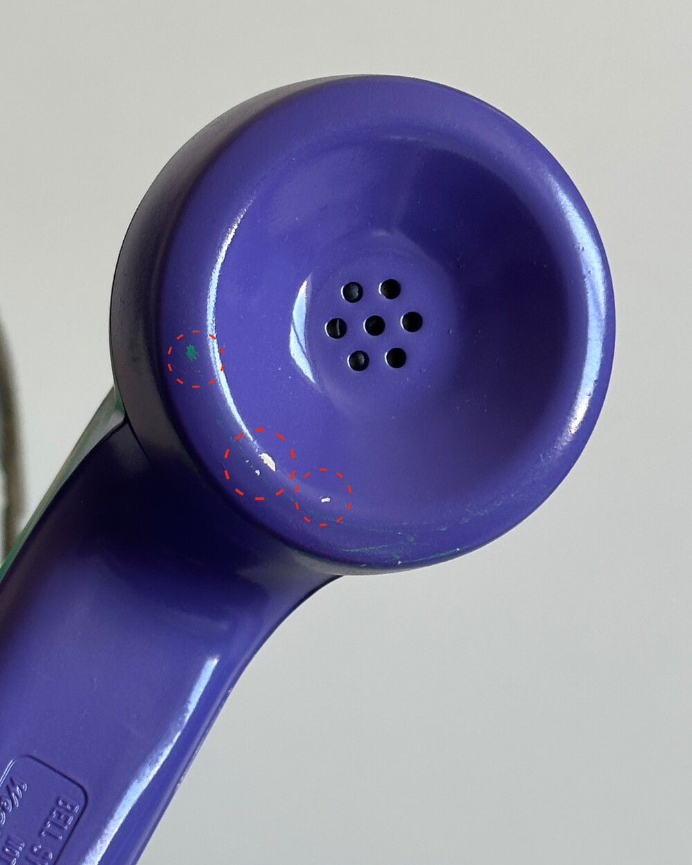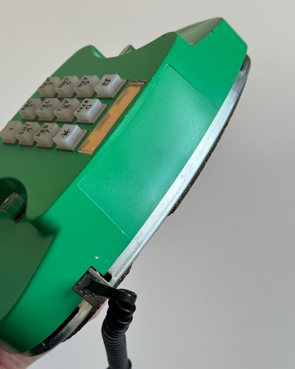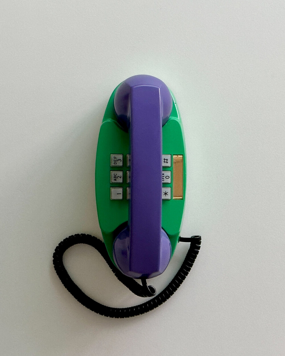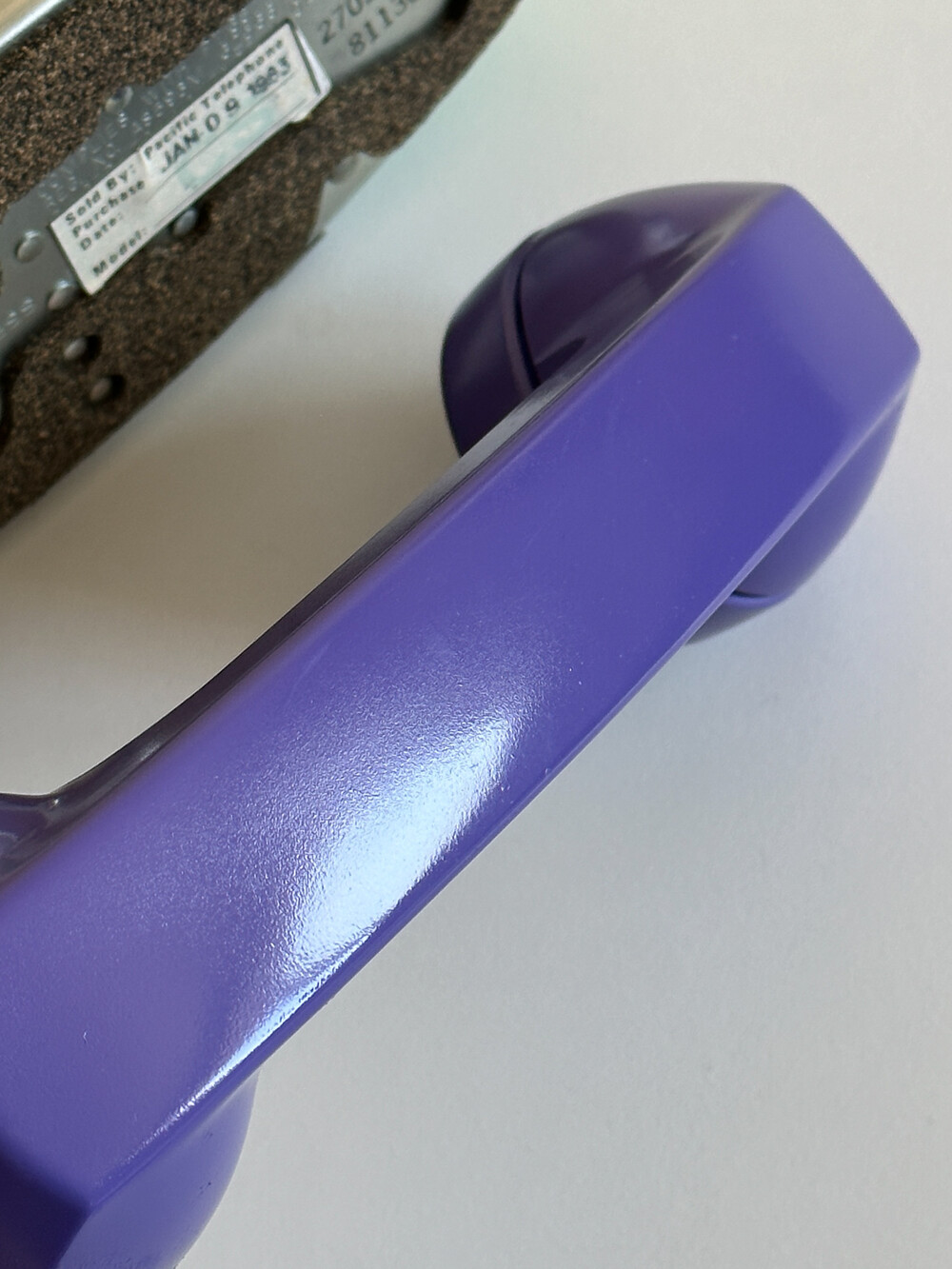 80년도 미국 WESTERN ELECTRIC에서 생산된 유선 전화기 Princess 2702 입니다. WESTERN ELECTRIC은 AT&T의 자회사로, 20세기 동안 미국 전역의 통신장비를 독점하여 보급했던 회사입니다. 높은 내구성과 품질로 오늘날까지 수집가들에게 좋은 평가를 받고 있습니다. 그린과 퍼플의 컬러 조화가 매력적인 디자인으로 인테리어 소품은 물론 실사용이 가능한 제품입니다.