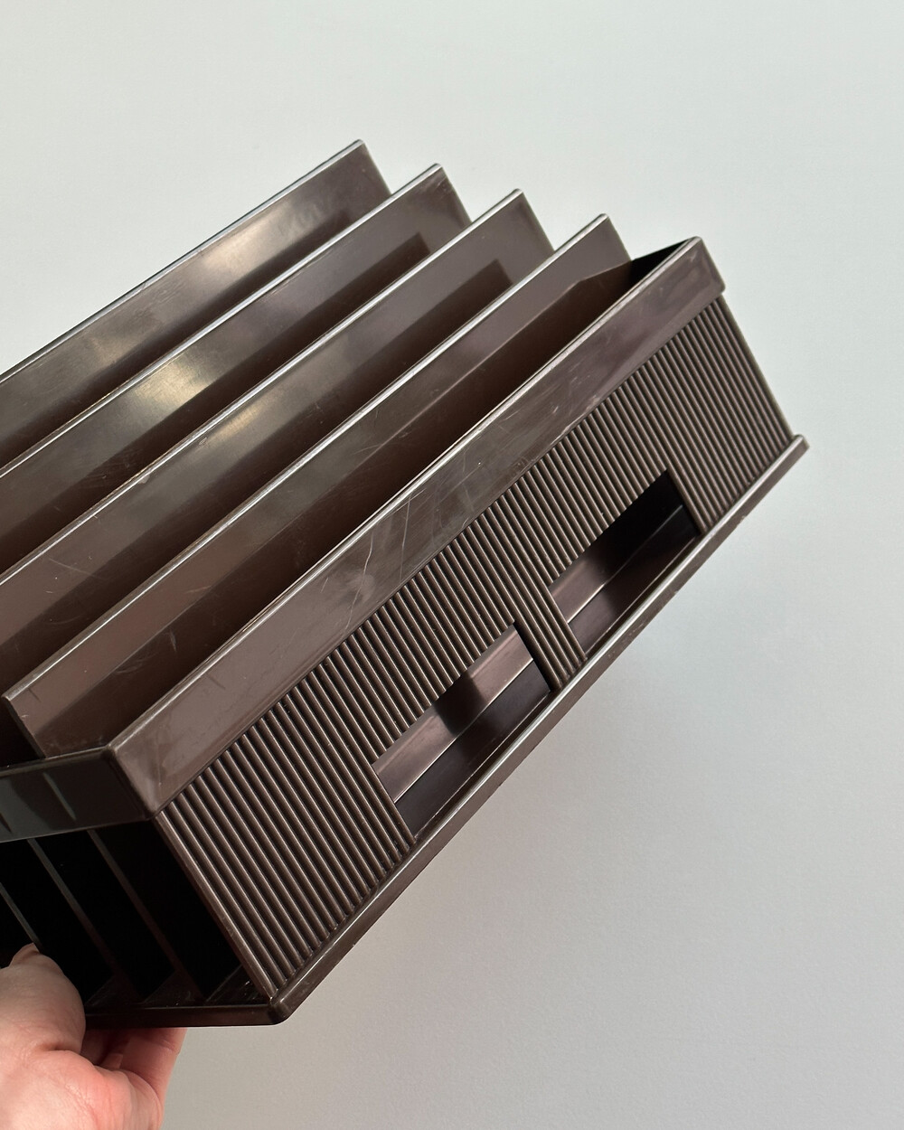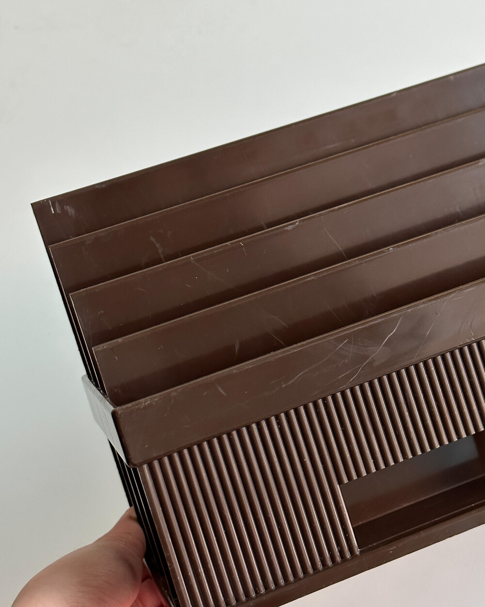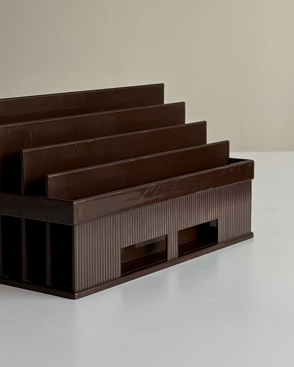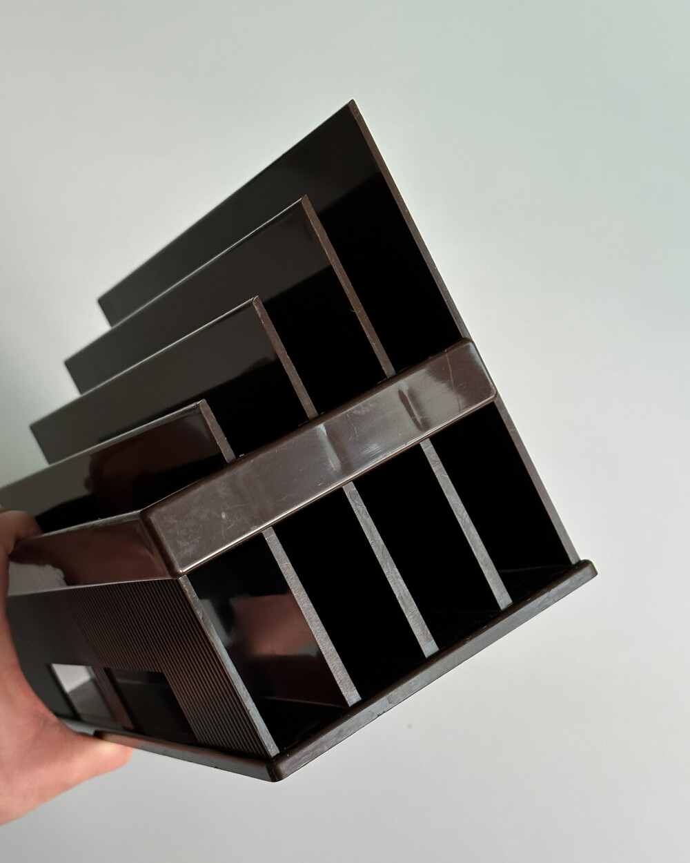 70년도 프랑스 LYNX의 빈티지 랙입니다. 4개의 섹션으로 나누어져 있어, 책, 매거진, 신문, 기타 서류 등을 카테고리별로 분류하여 보관할 수 있습니다.