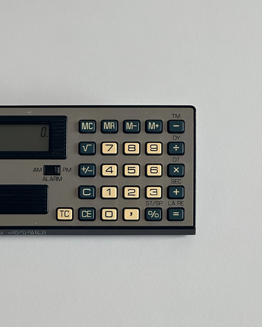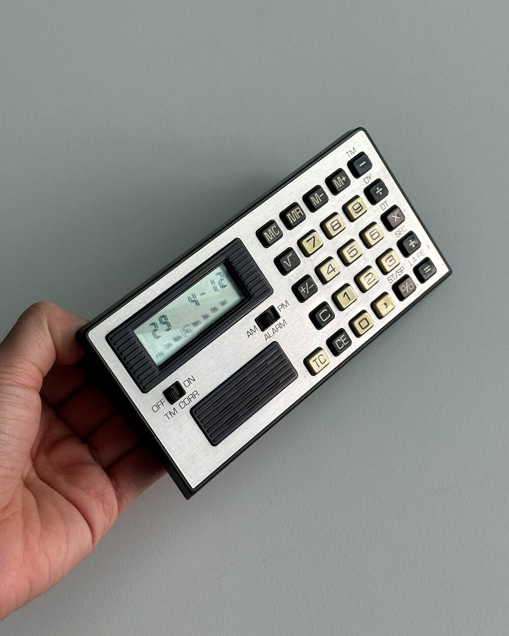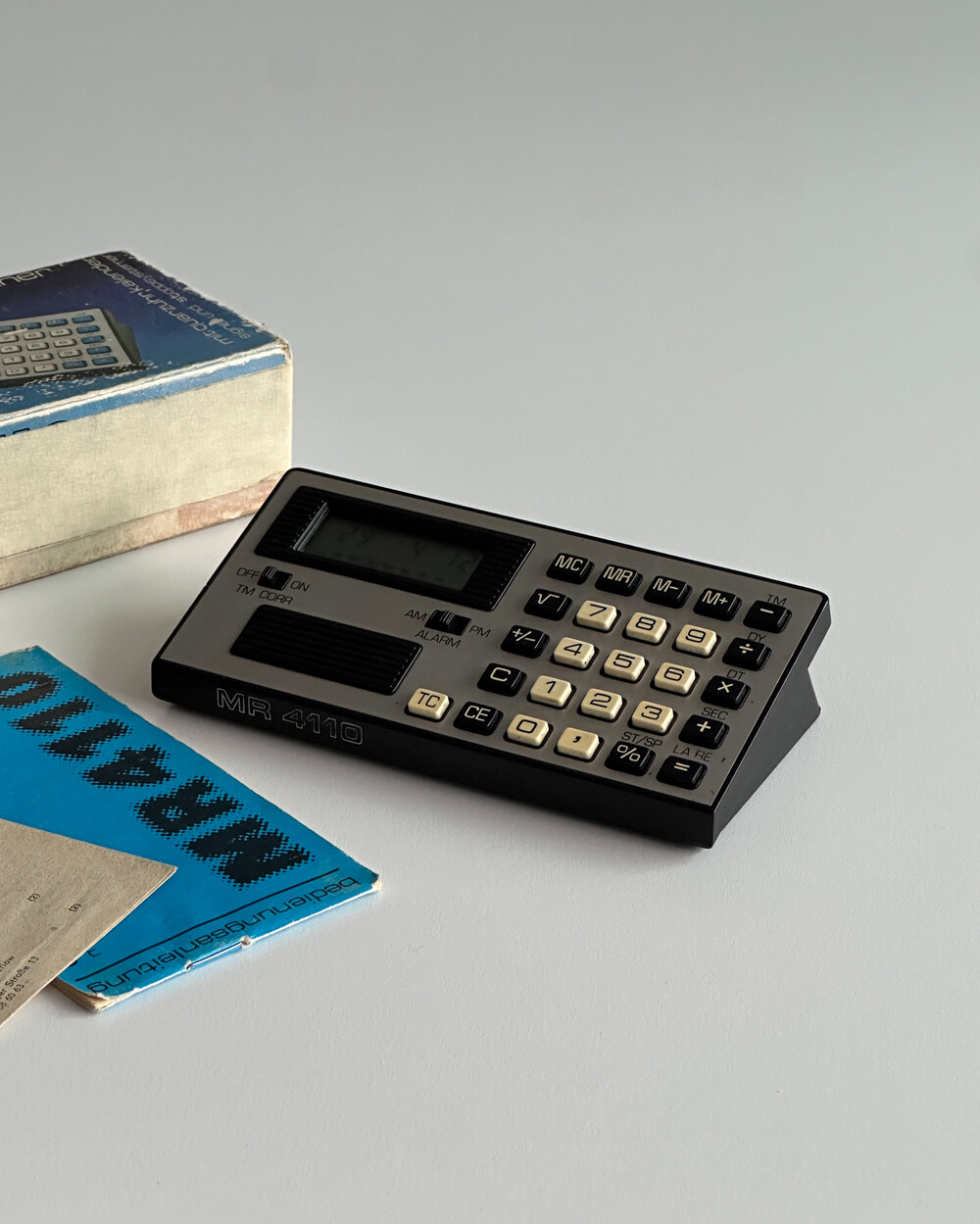 구동독(GDR)에서 80년도 생산되었던 빈티지 탁상용 계산기입니다. 기본적인 계산기 기능은 물론, 달력과 시계, 스톱워치 기능이 함께 있어 탁상 위에서 유용하게 사용할 수 있습니다.